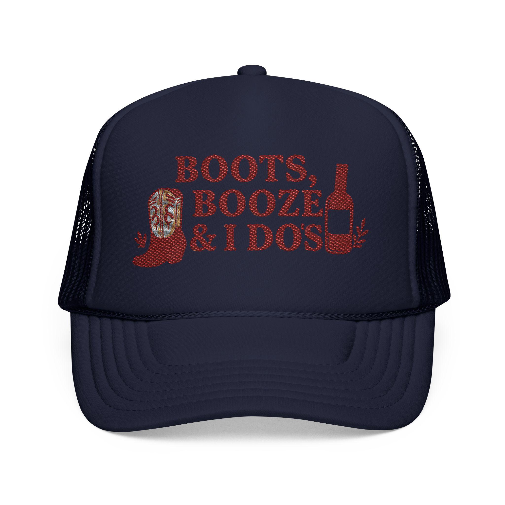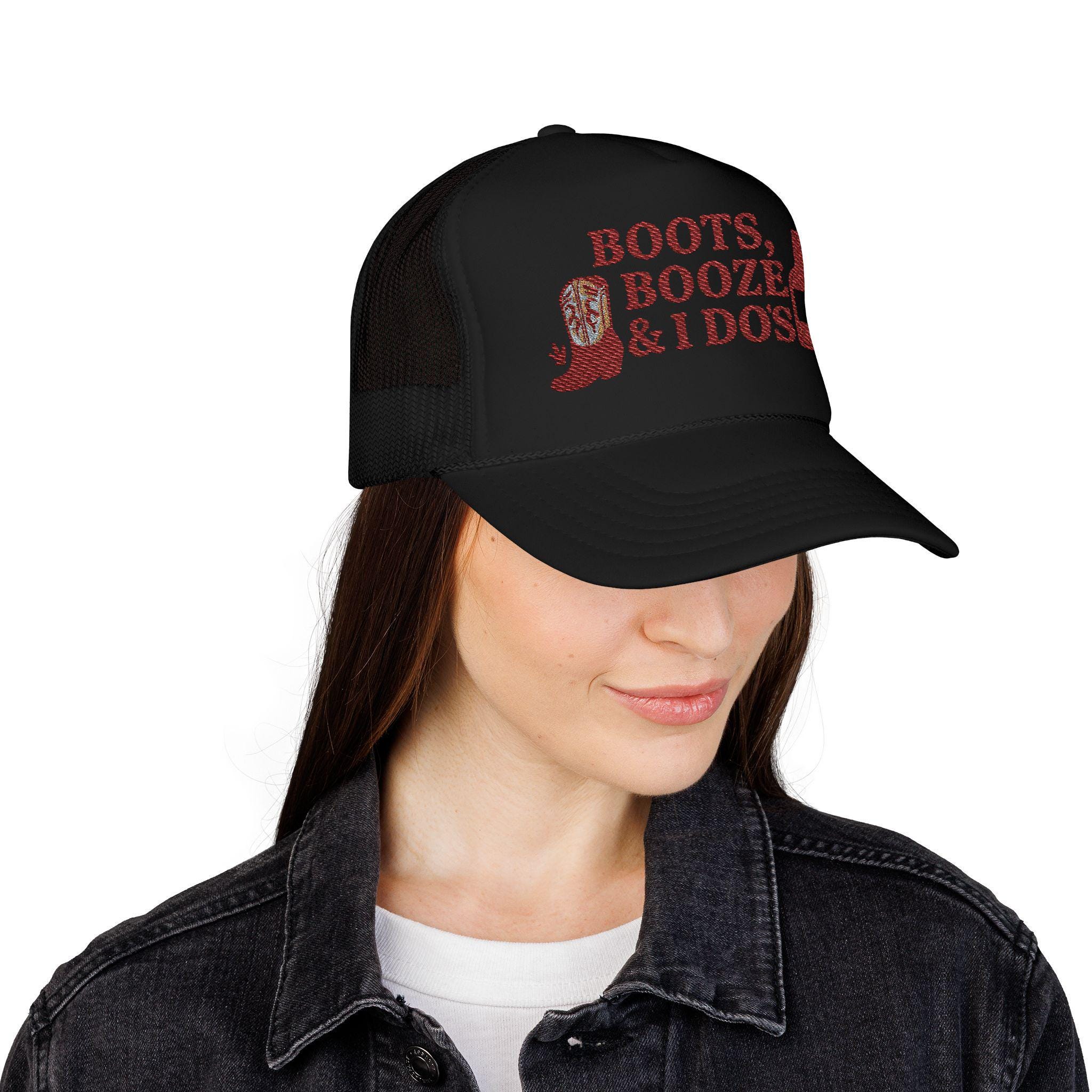 Boots Booze & I Do's Trucker Hat: Rustic Bachelorette Party Cowgirl Bride