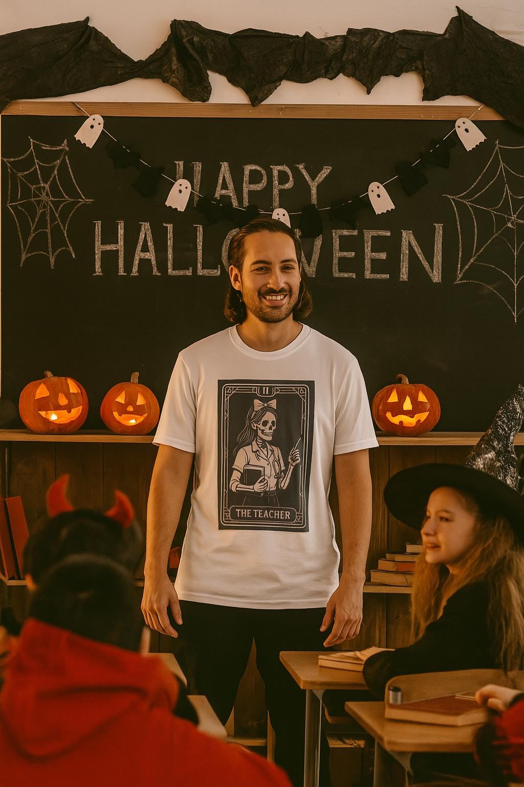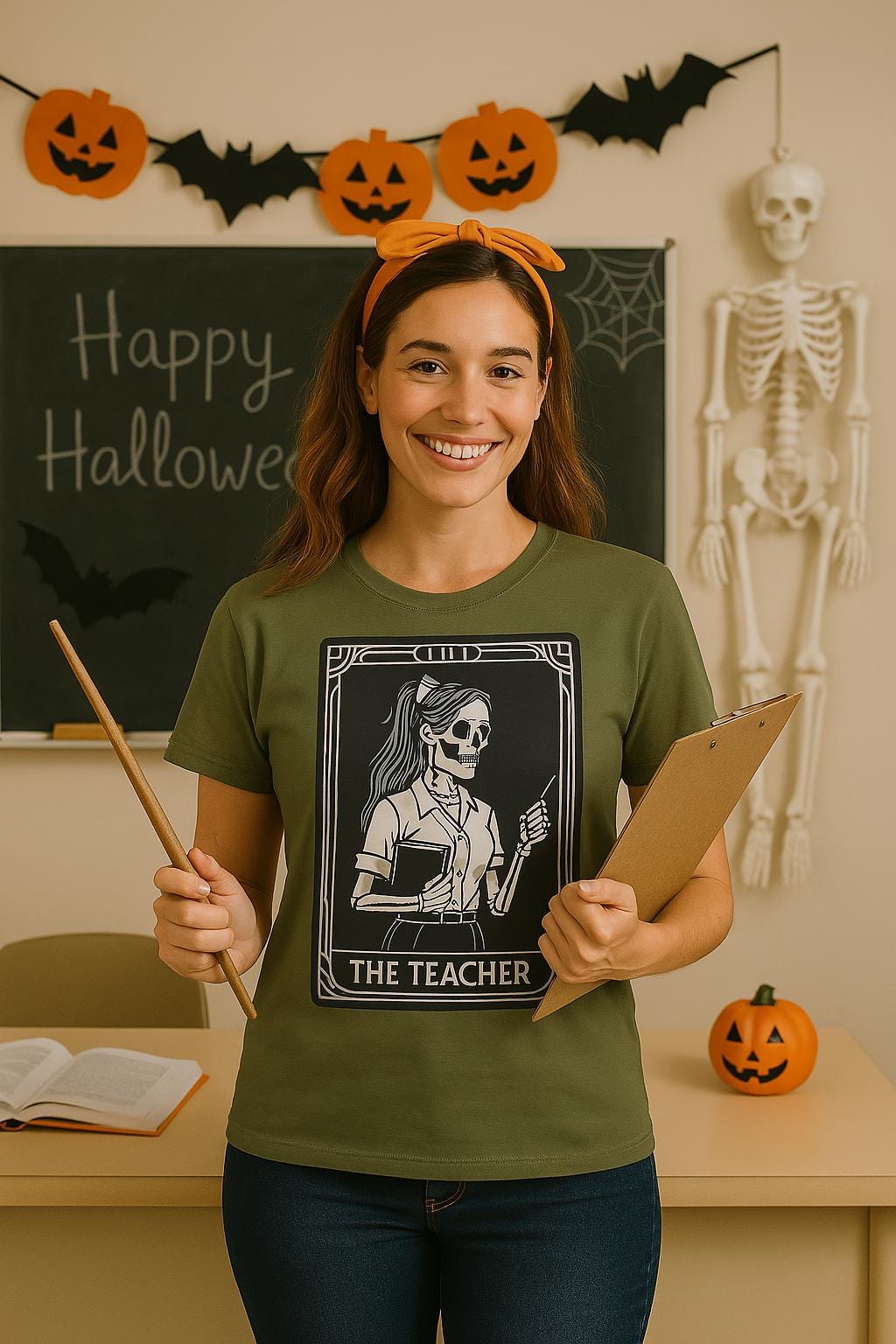 Gothic Teacher Tarot Card T-Shirt: Spooky Halloween Tee