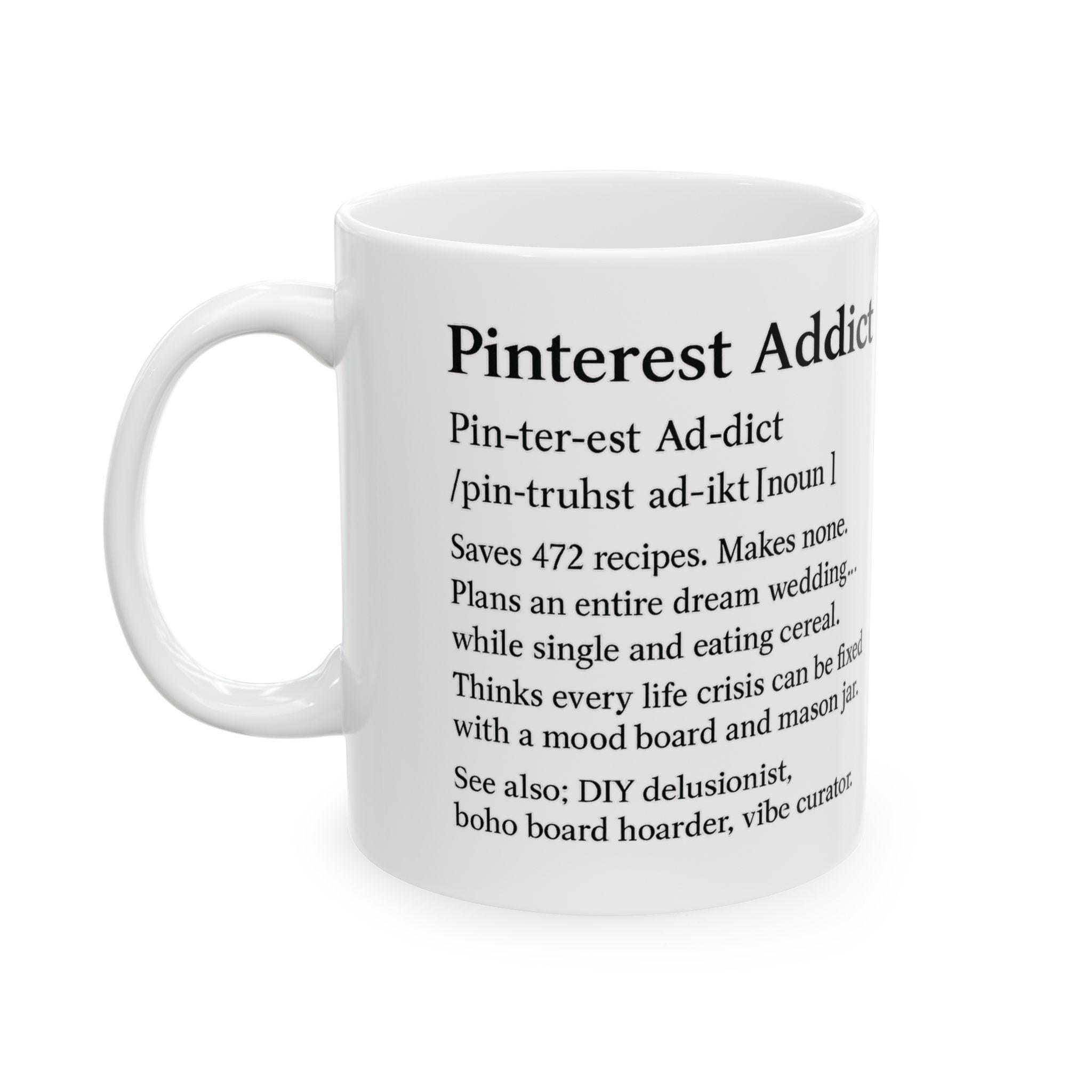 Pinterest Addict Mug, Funny Coffee Mug for Women, Personalized 11oz or 15oz Ceramic Gift, Snarky Best Friend Gift, DIY Vibe Curator Cup