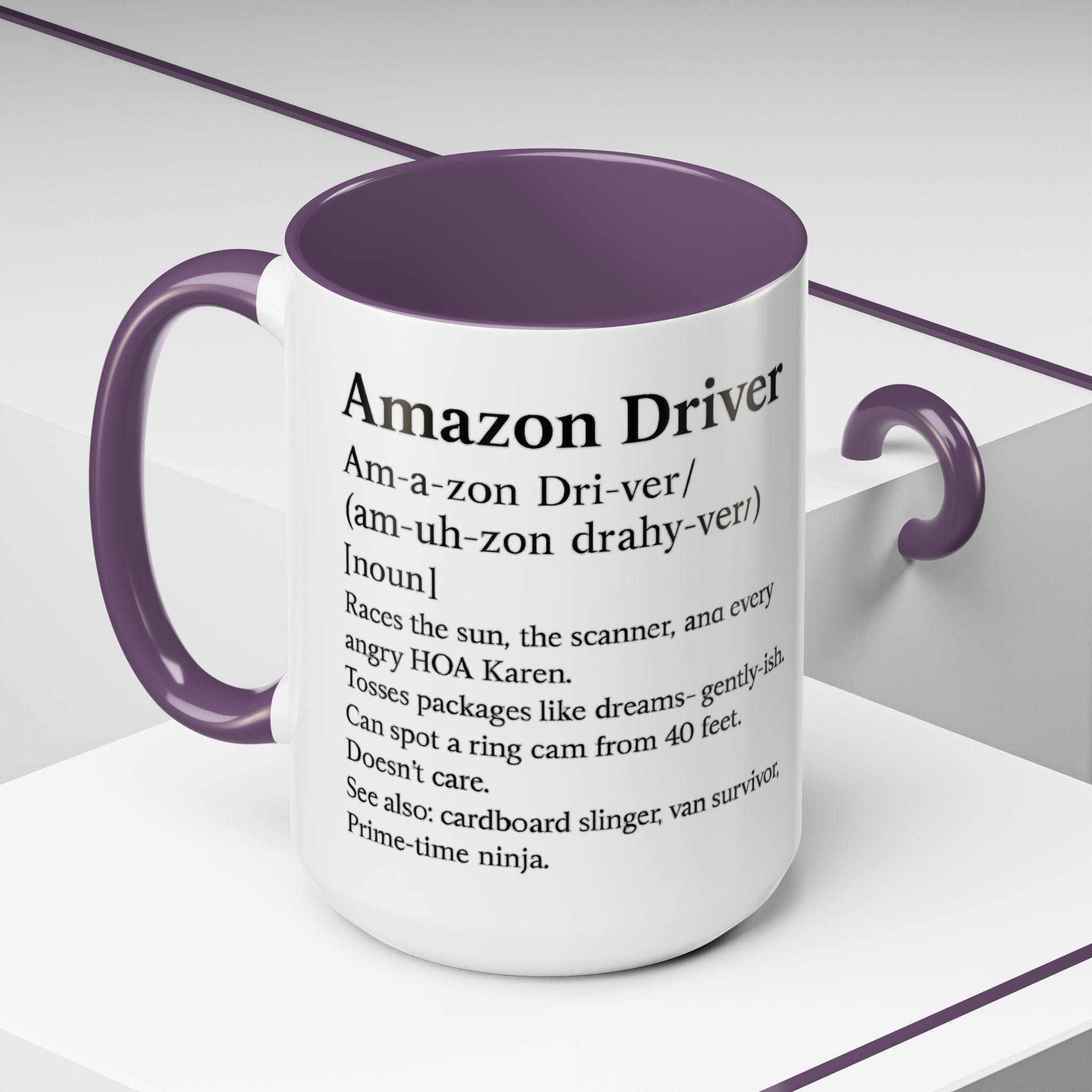 Celebrate the everyday hero who braves traffic, doorbell cameras, and porch pirates with this funny Amazon Driver Mug. Available in 11oz and 15oz sizes, this witty dictionary-style definition design is the perfect coffee companion for drivers who deliver smiles (and packages) daily.