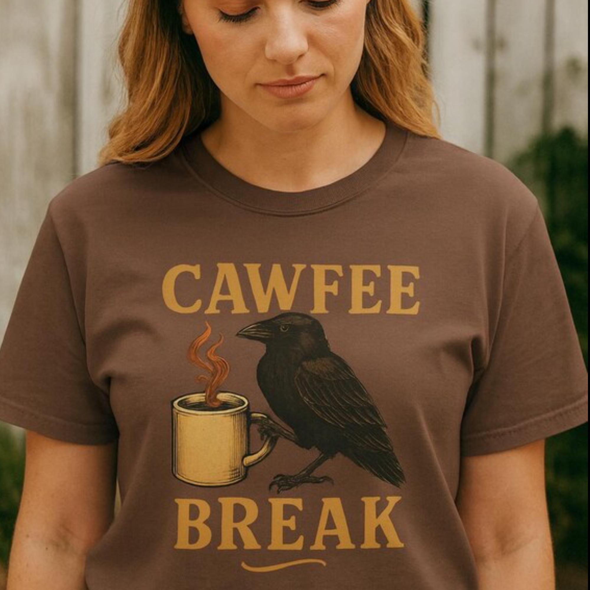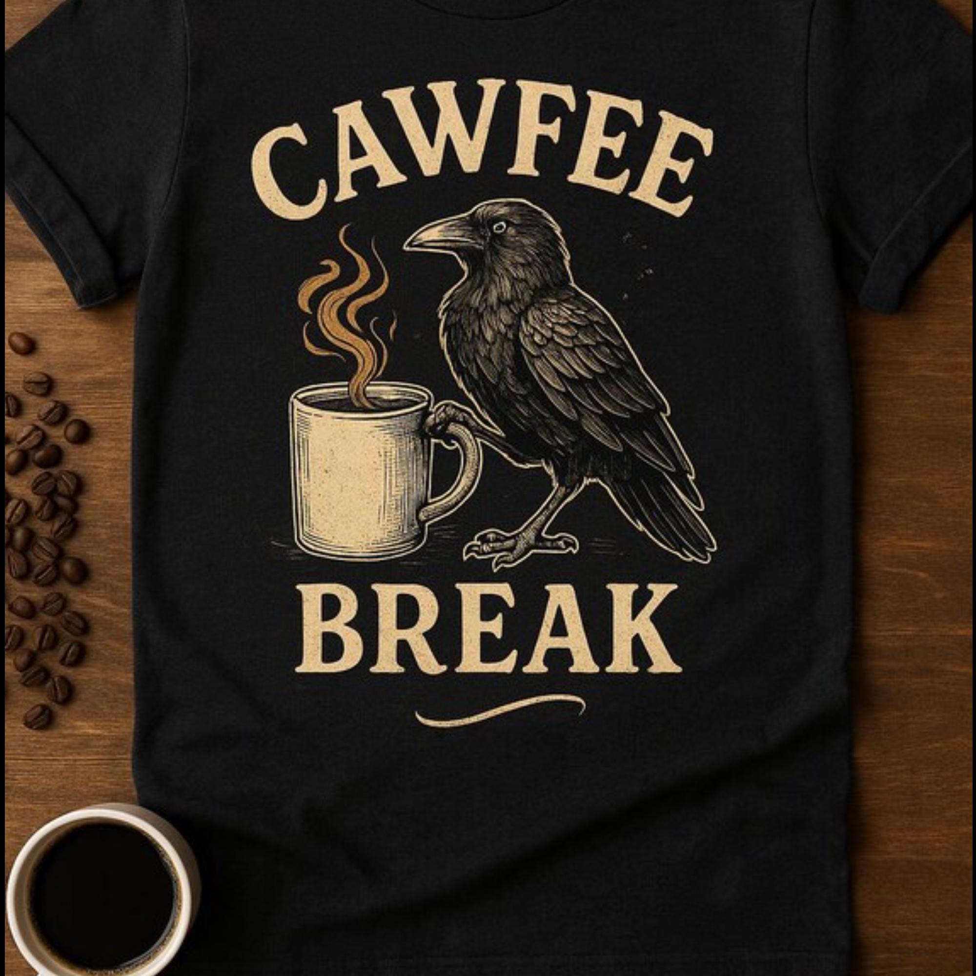 Start your day with a little sass and a lot of caffeine. Our “Cawfee Break” Caffeine Addict shirt pairs a feisty raven with your favorite morning ritual, creating a design that’s equal parts coffee shop cozy and gothic chic. Perfect for bird lovers, coffee addicts, and anyone who lives for a witty graphic tee.