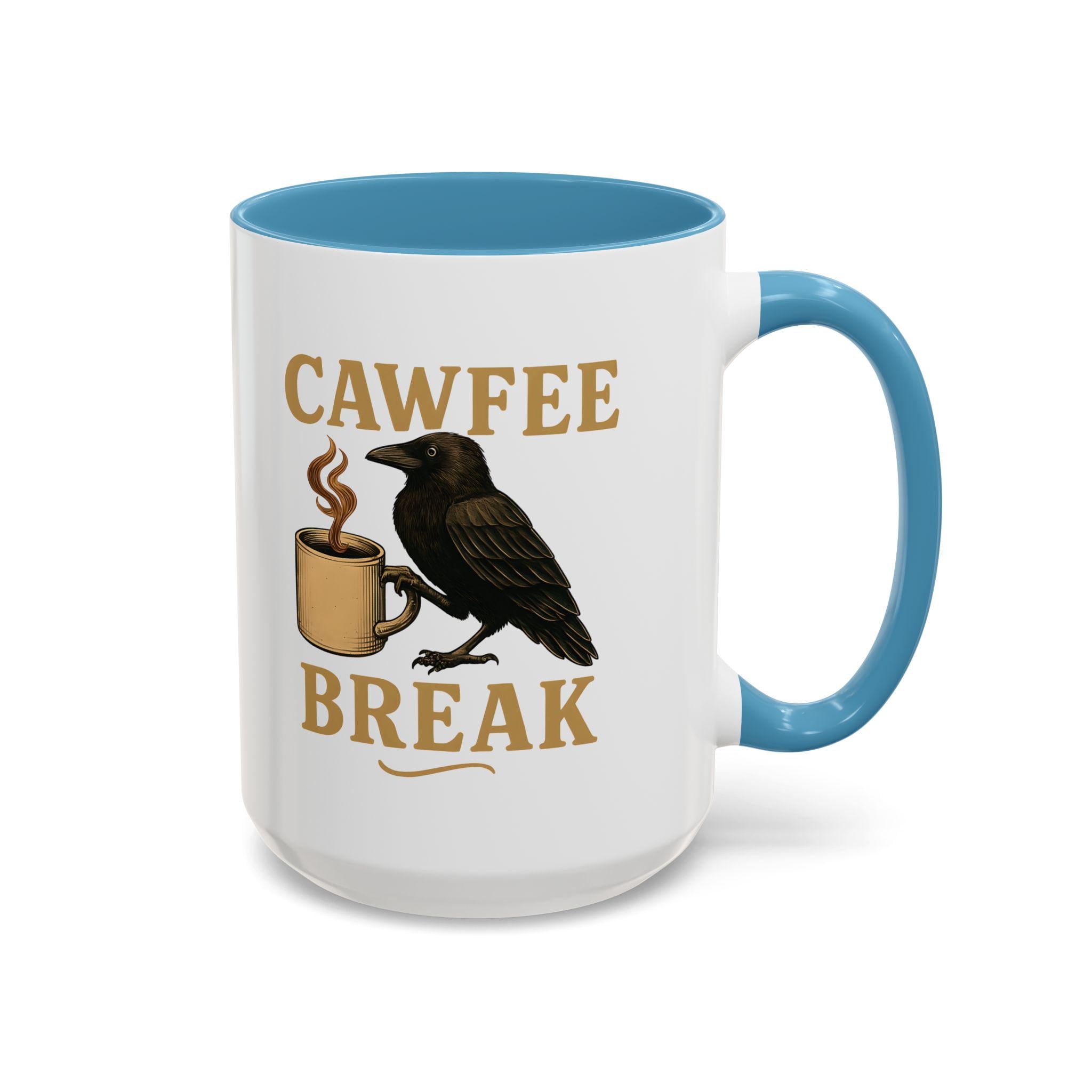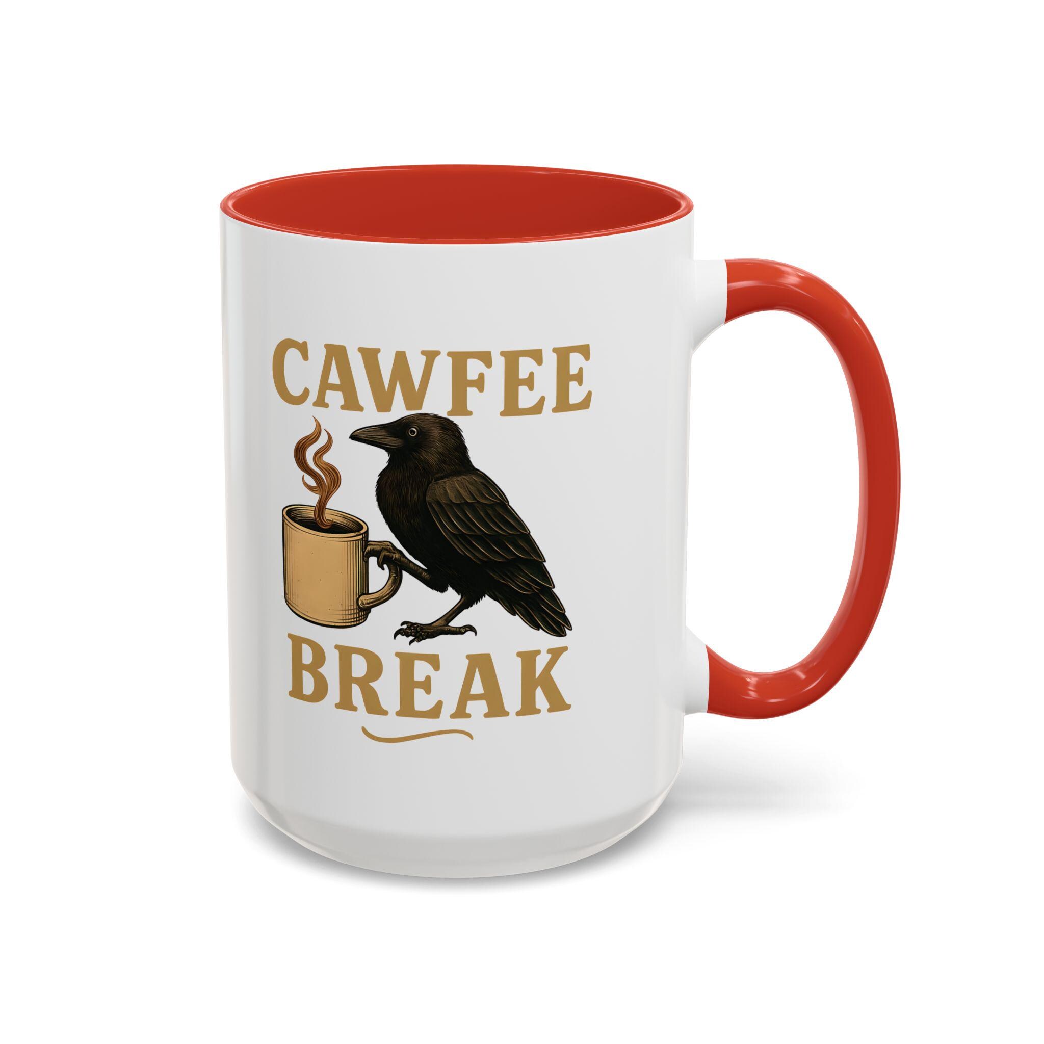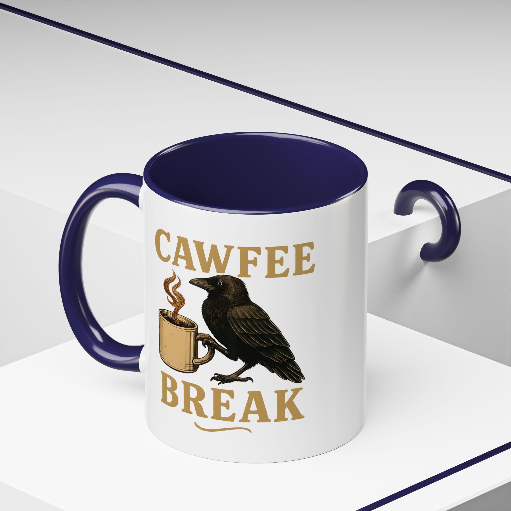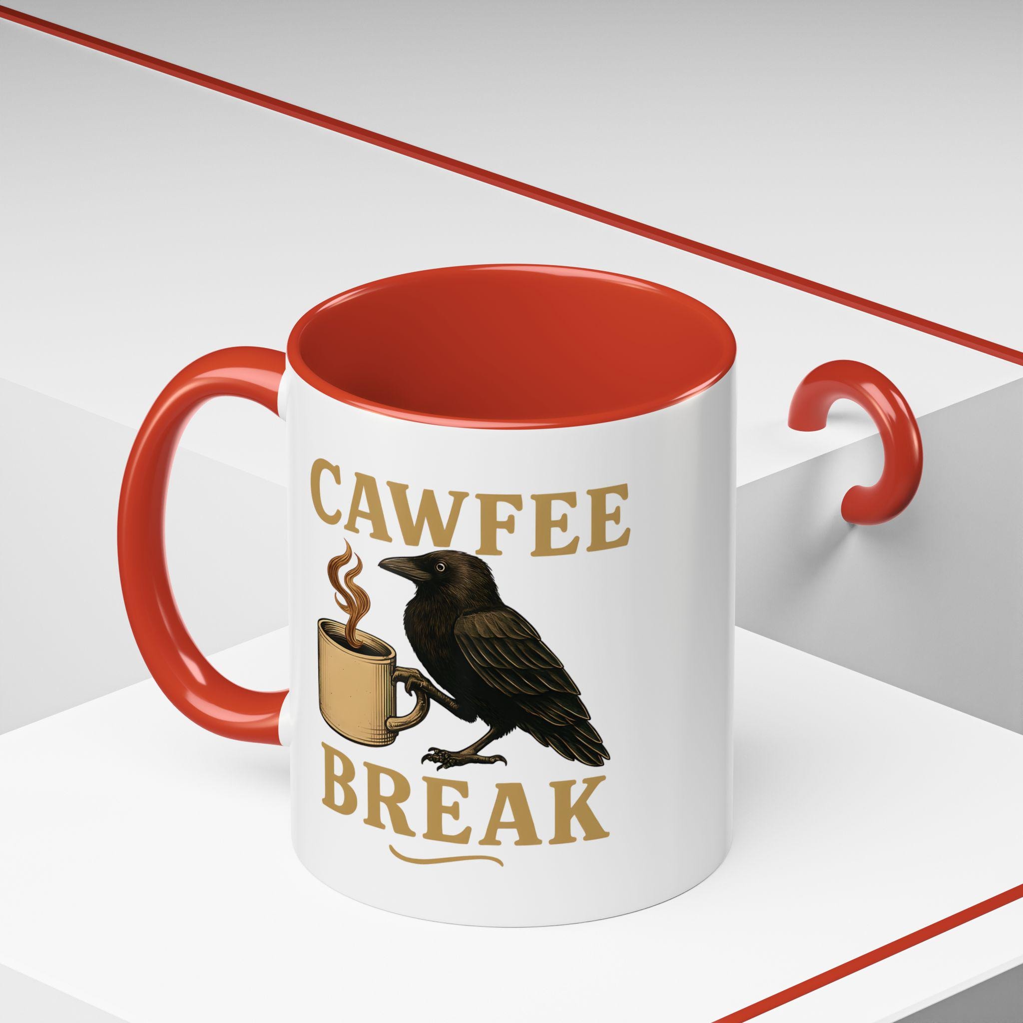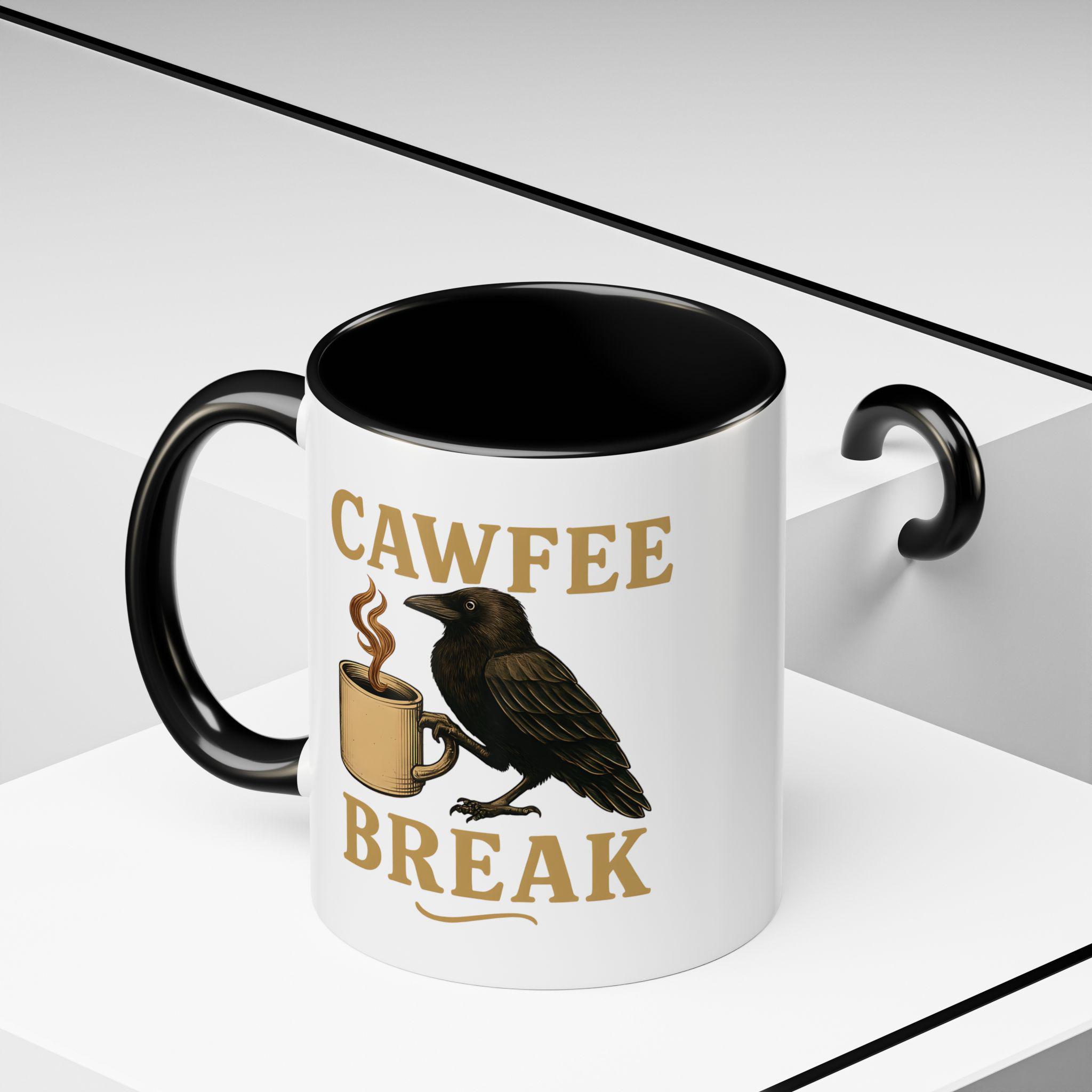 Add a dash of humor to your caffeine fix with this cheeky raven coffee mug. Featuring a bold “Cawfee Break” design with a detailed raven illustration and steaming coffee cup, this accent mug is perfect for crow lovers, coffee addicts, and anyone who appreciates a little dark humor with their morning brew.
