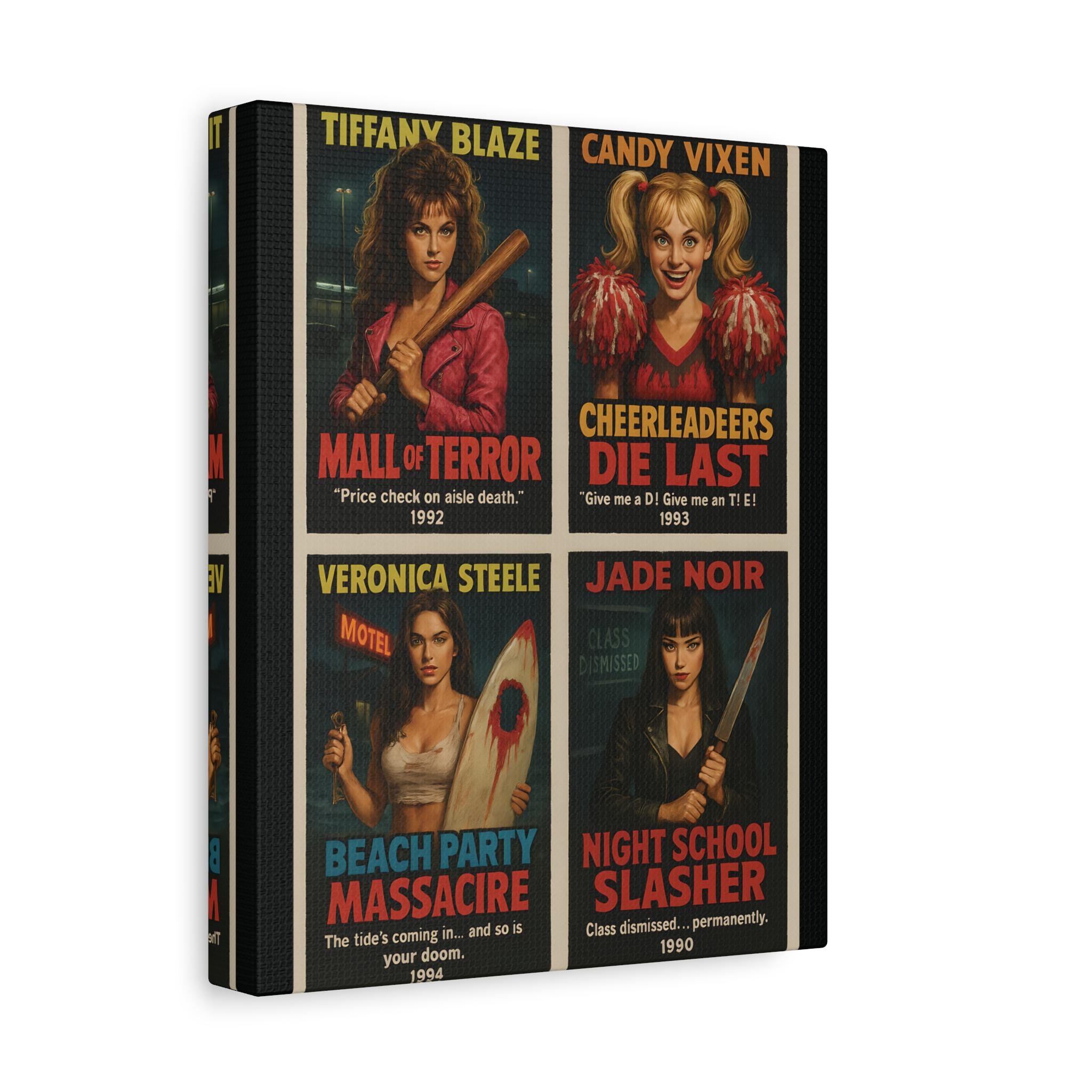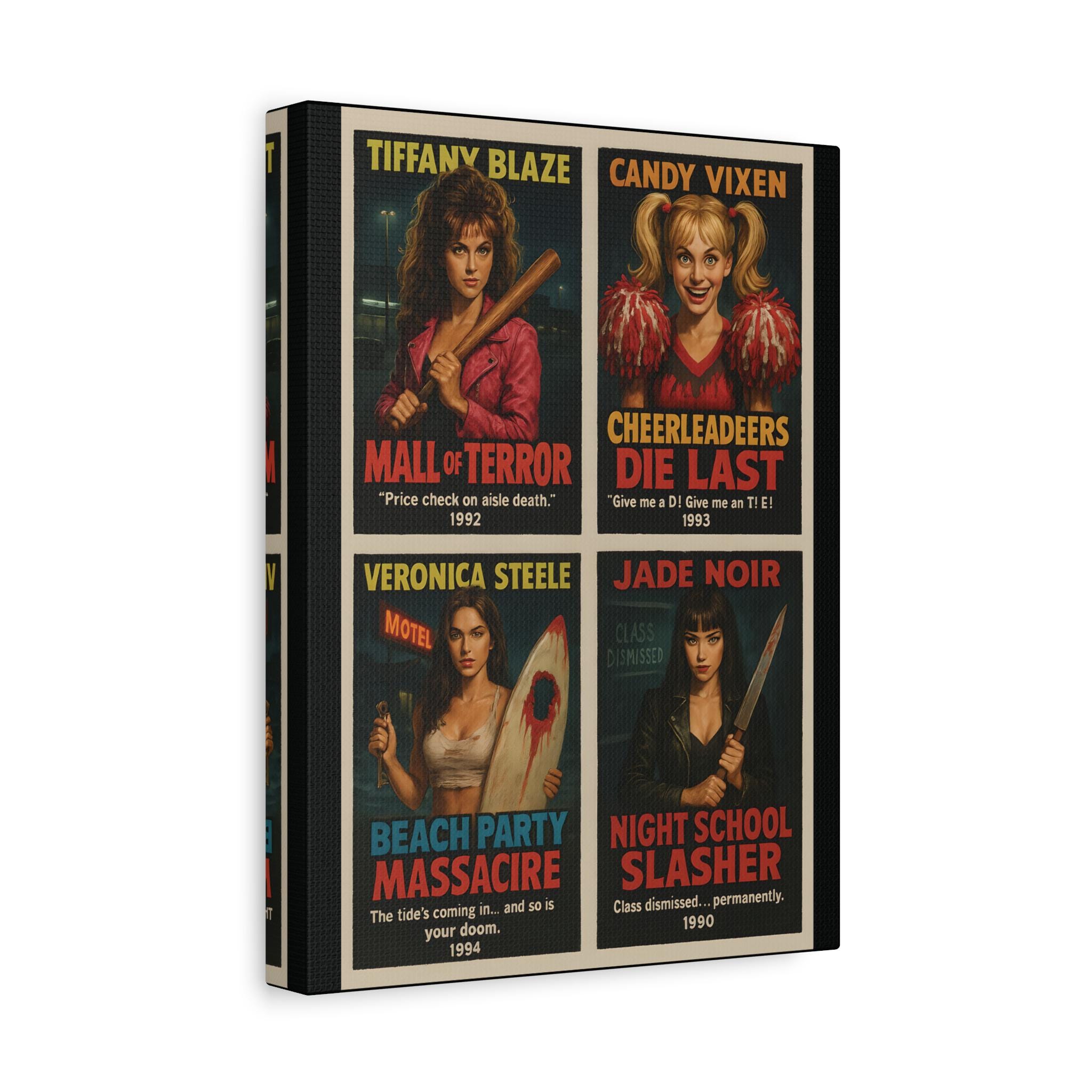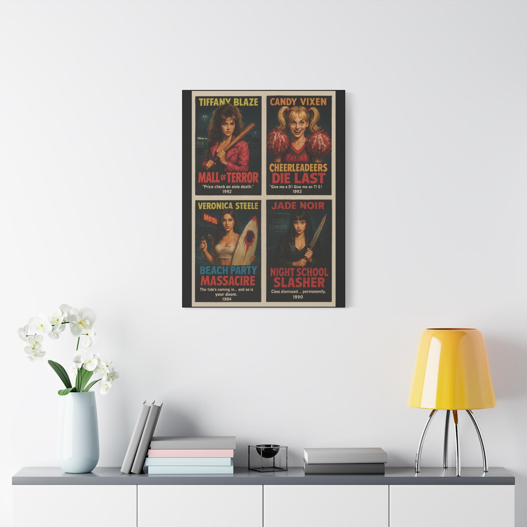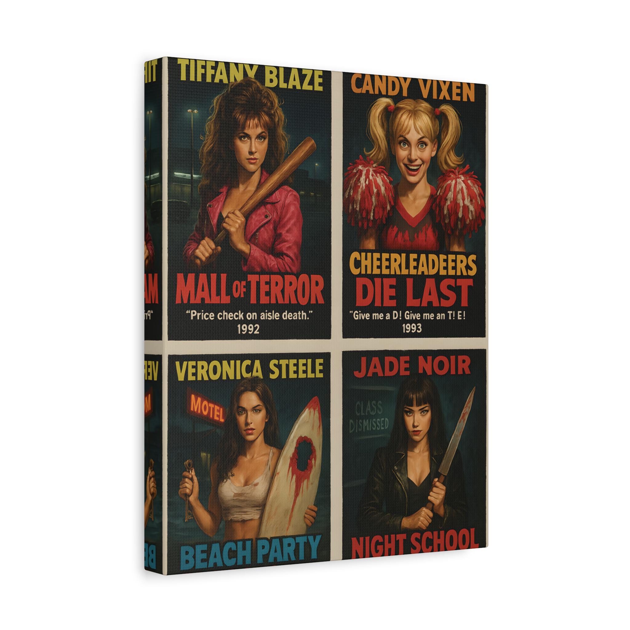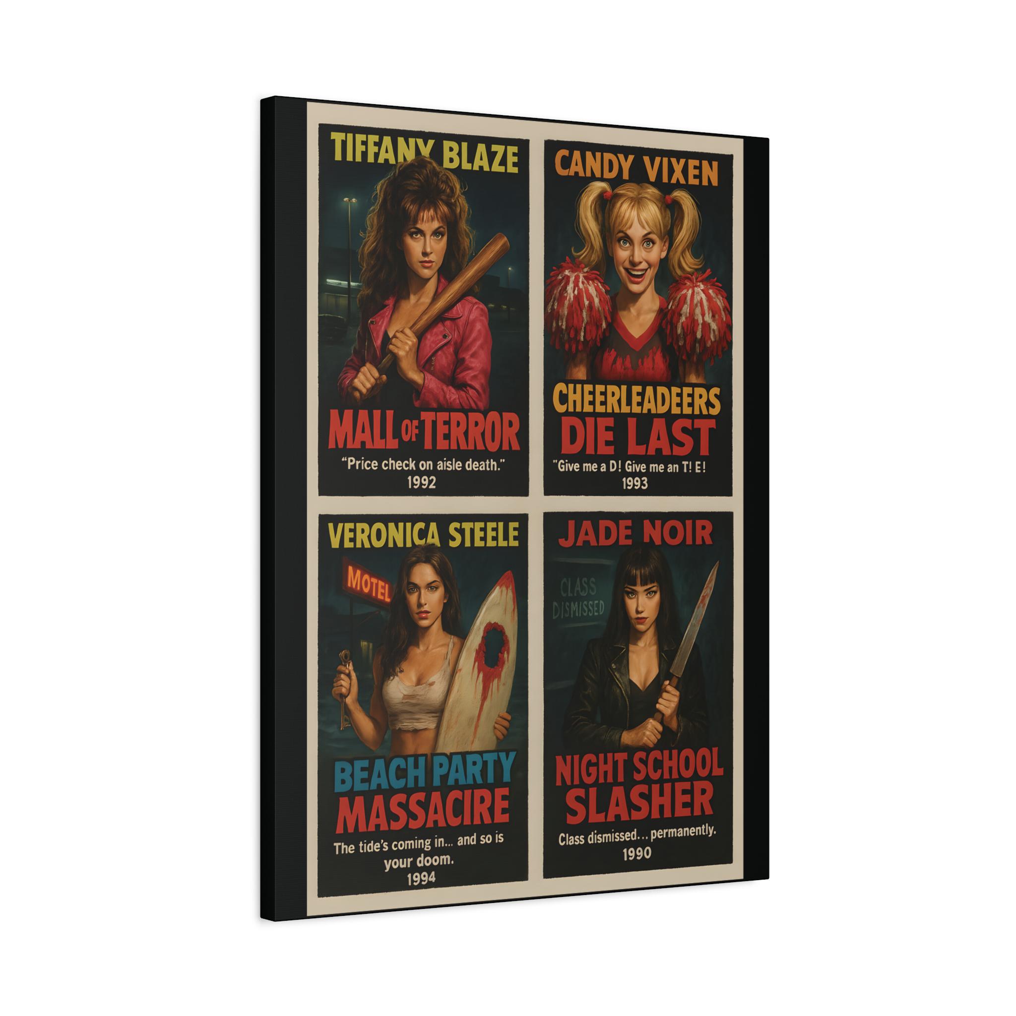 Retro Horror Movie Poster: 90s Slasher Queens Matte Canvas Wall Art