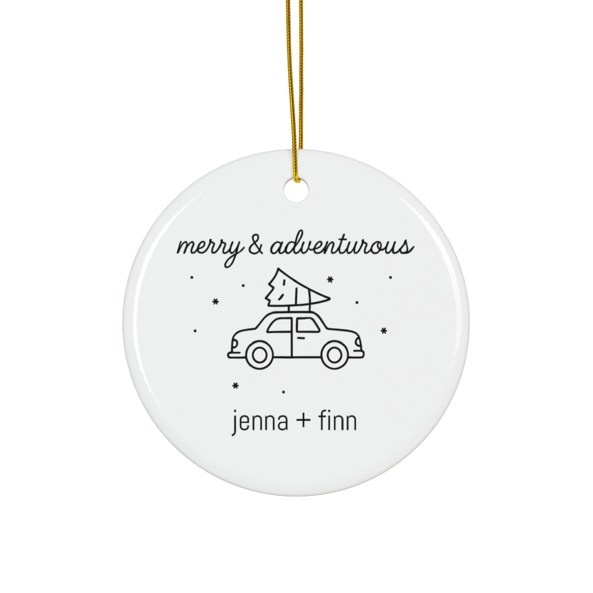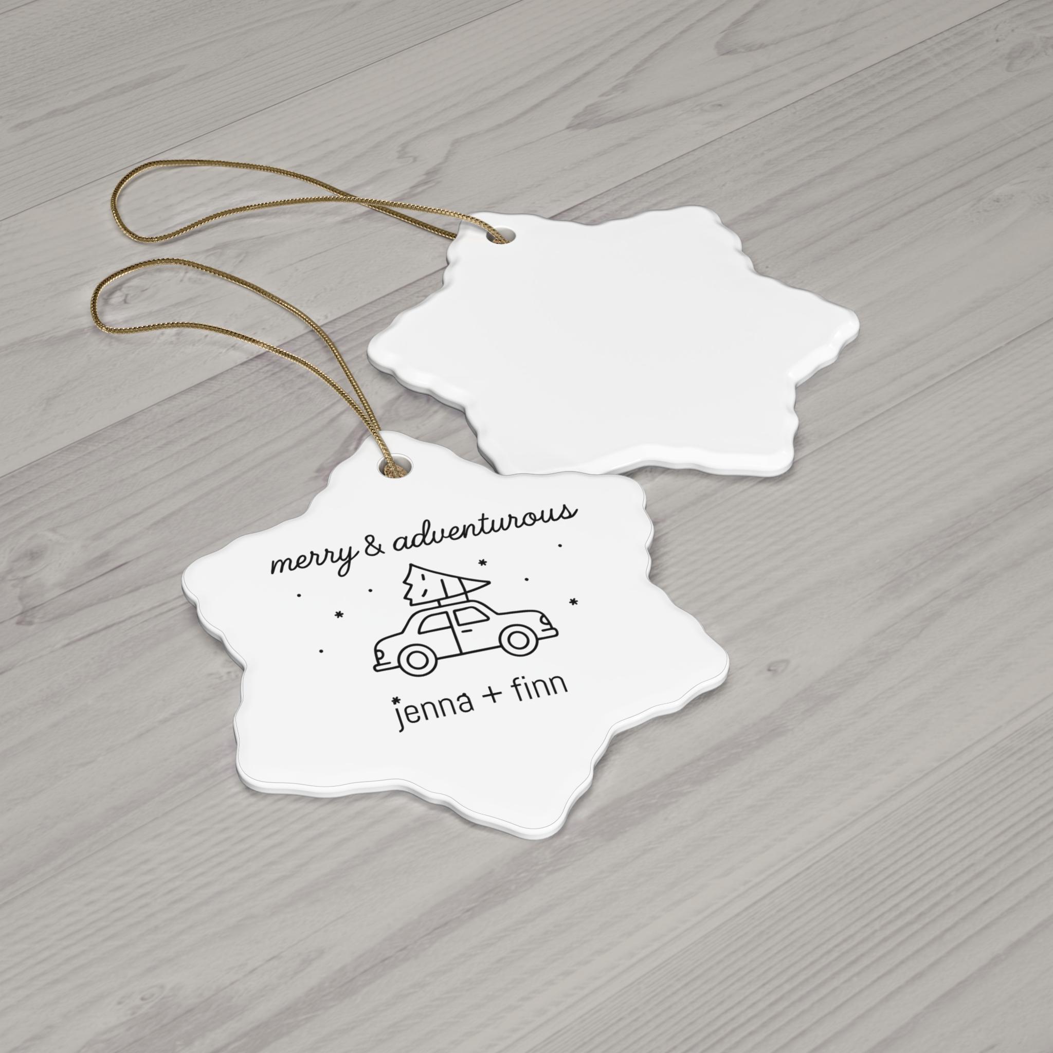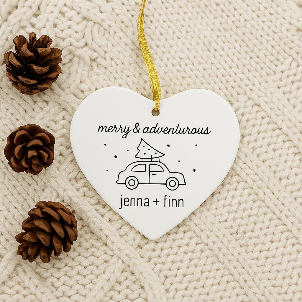Christmas Ornament: Celebrate your unique story with this personalized ceramic ornament, featuring a charming retro car and a festive tree on top. Whether it’s your first Christmas together or a yearly tradition, this ornament makes a timeless keepsake.