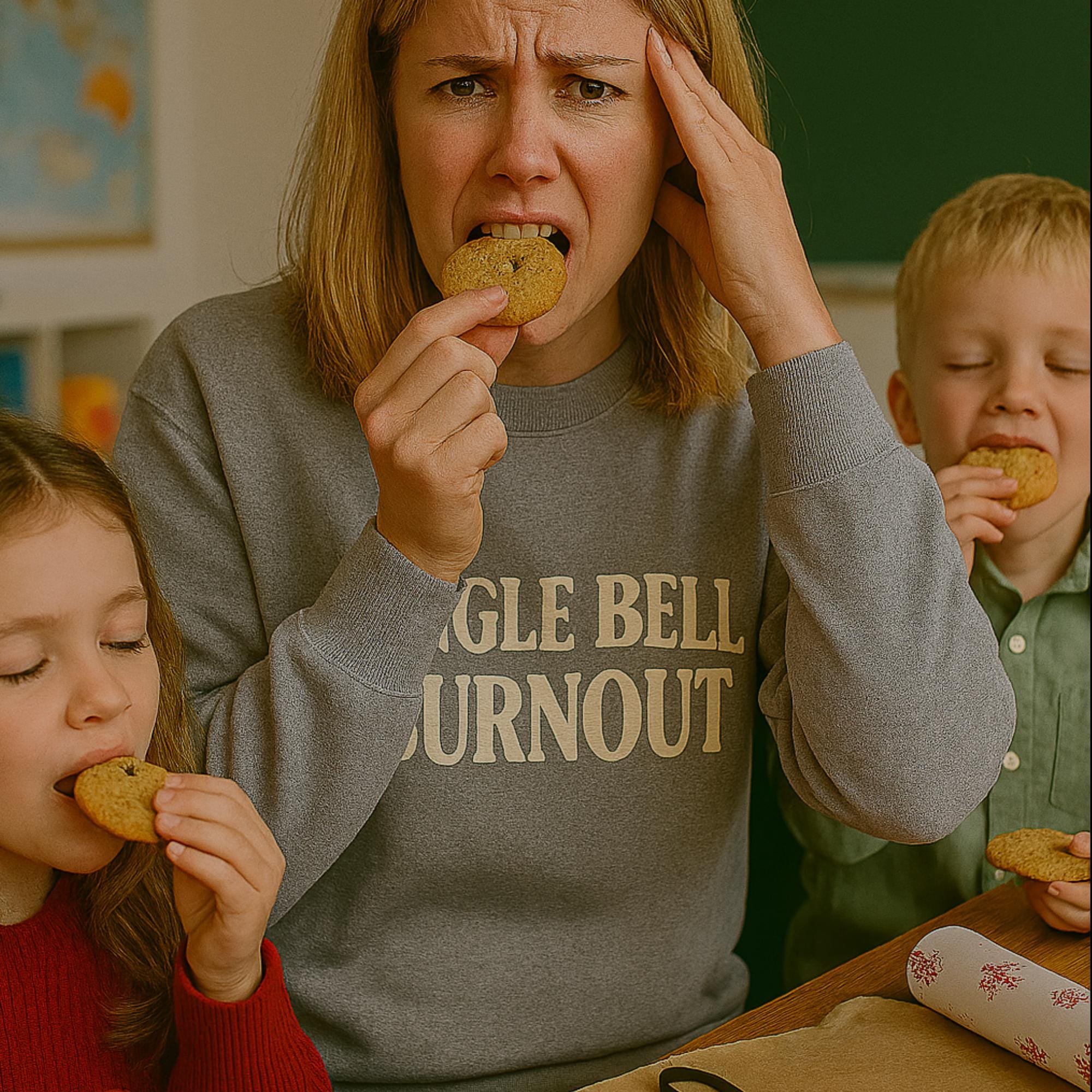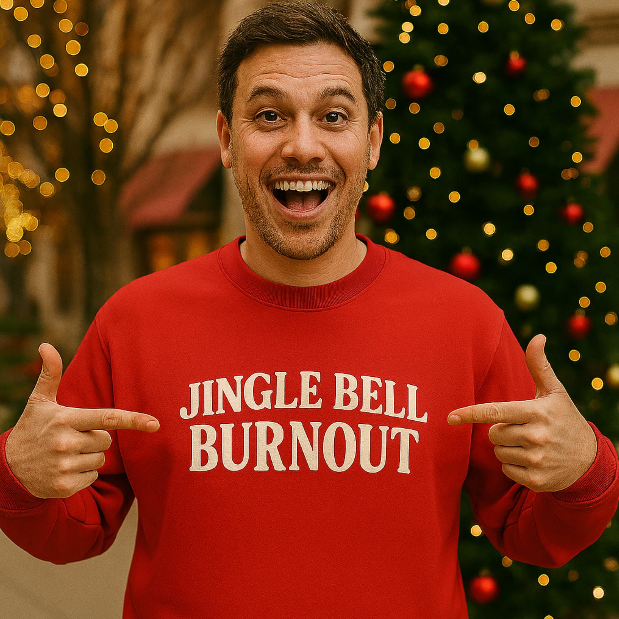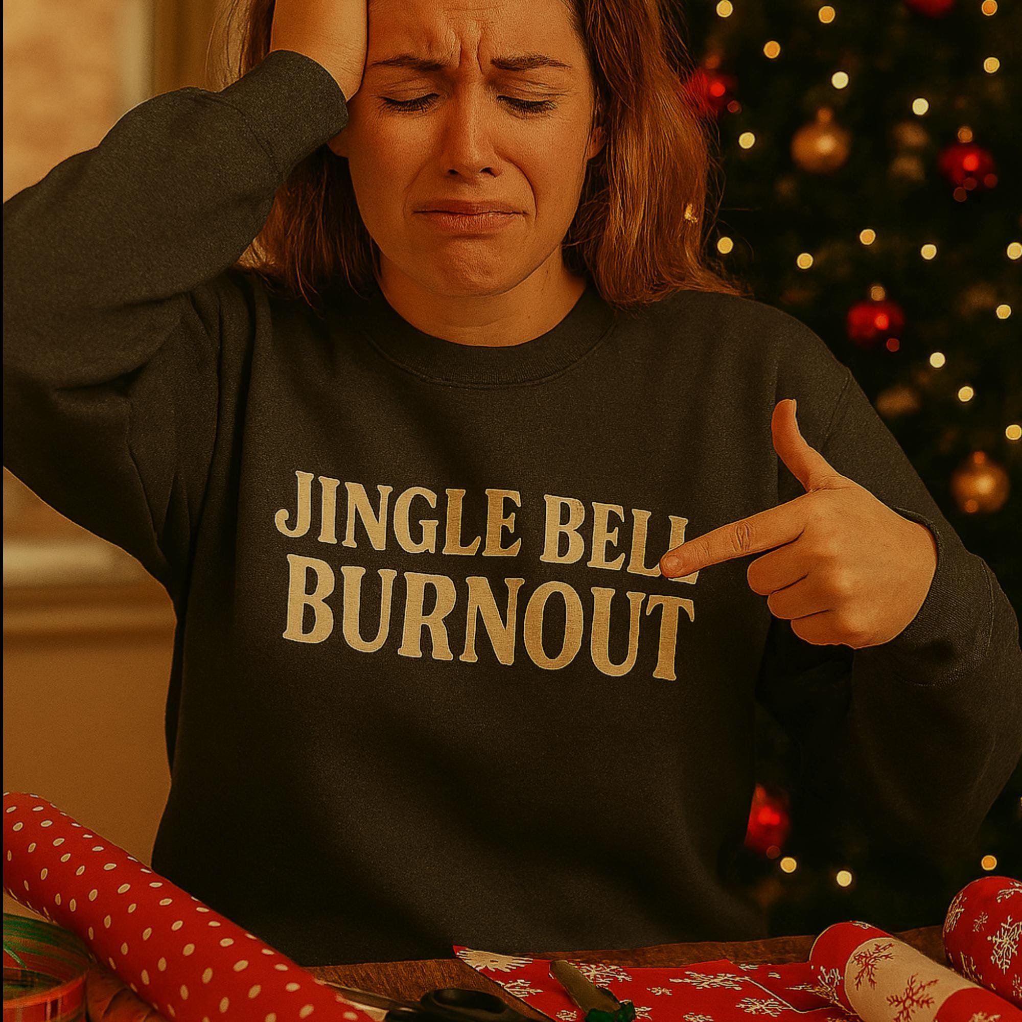 Vintage style block text: “Jingle Bell Burnout”