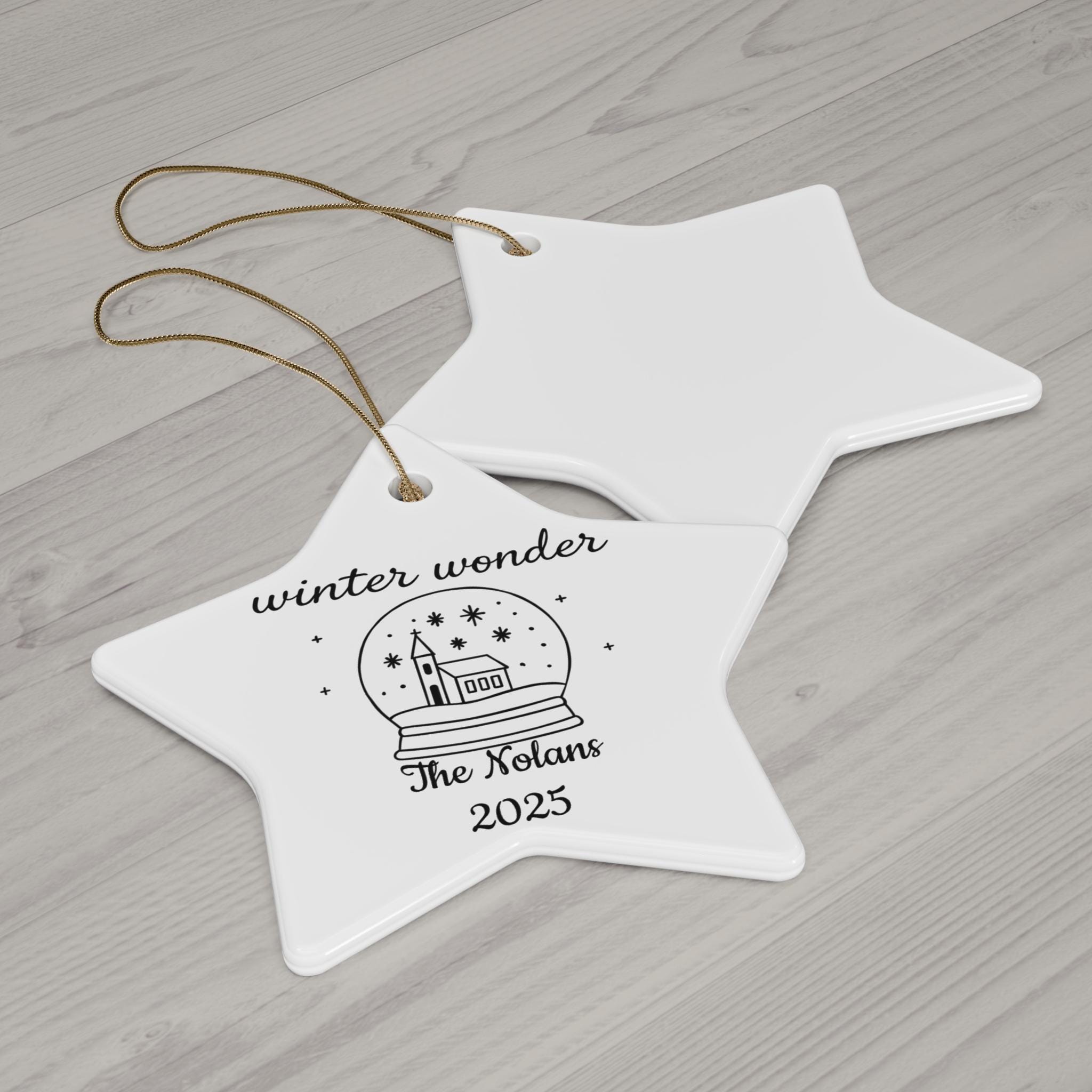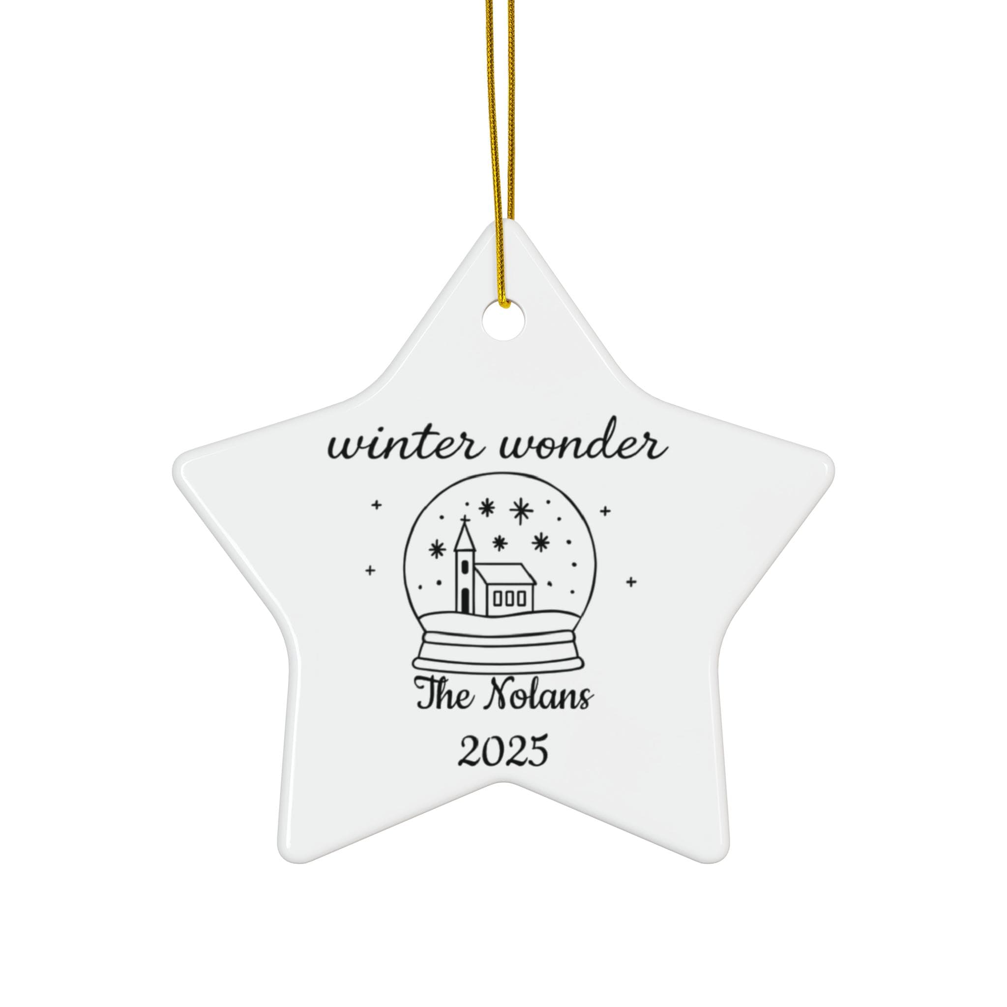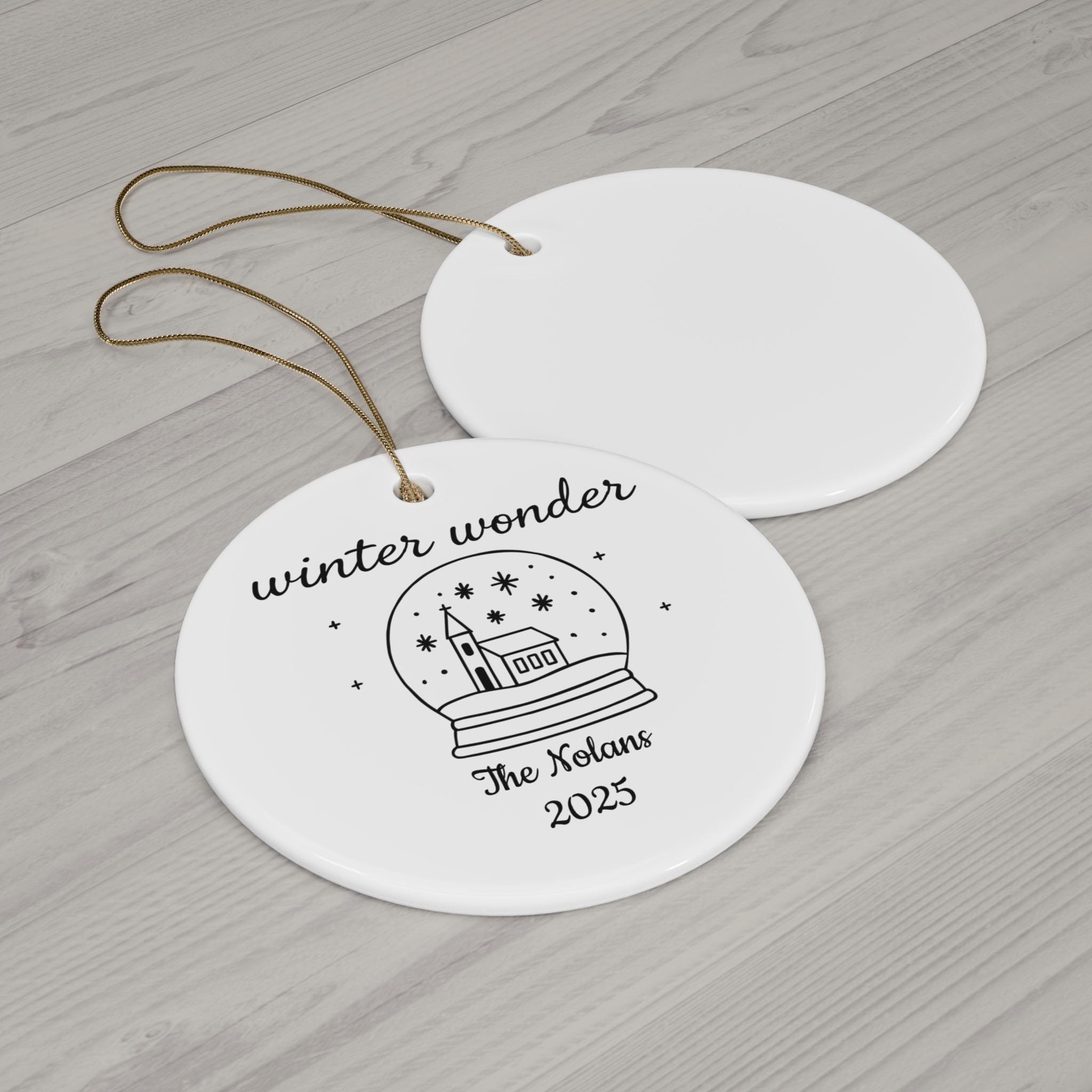 Personalized Winter Church Ornament: Custom Snow Globe Ceramic Keepsake