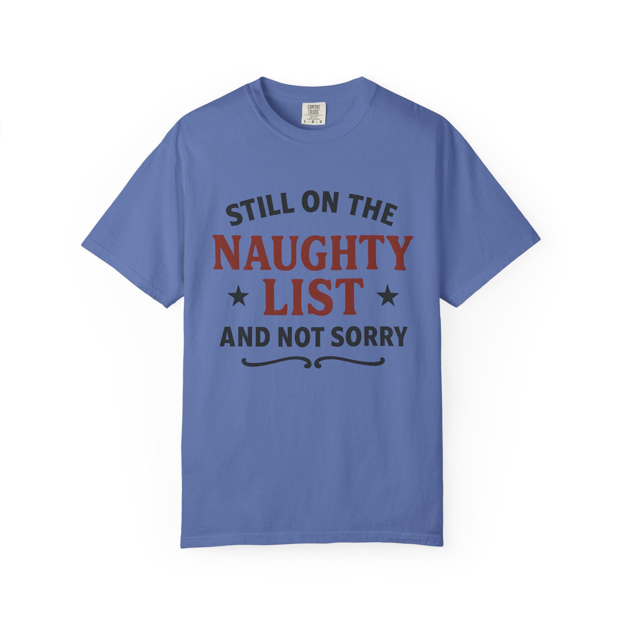 Funny Christmas Shirt – Still on the Naughty List and Not Sorry Tee – Comfort Colors Holiday Shirt – Sarcastic Xmas Gift for Her or Him