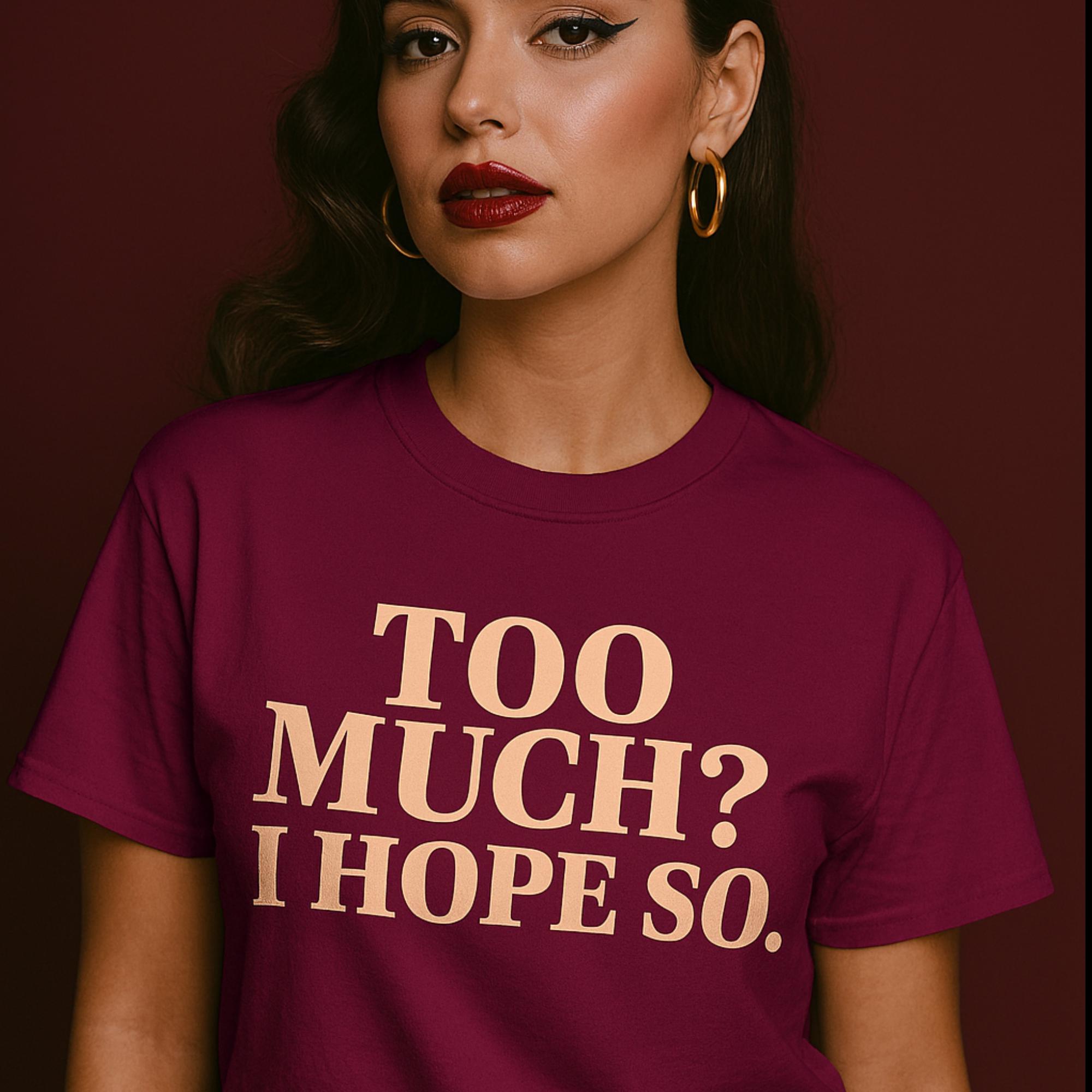 The Too Much? I Hope So.  This Comfort Colors Sassy Shirt is made for the bold, the extra, the loud laughers and sparkle-wearers who don’t dim their light to fit in.