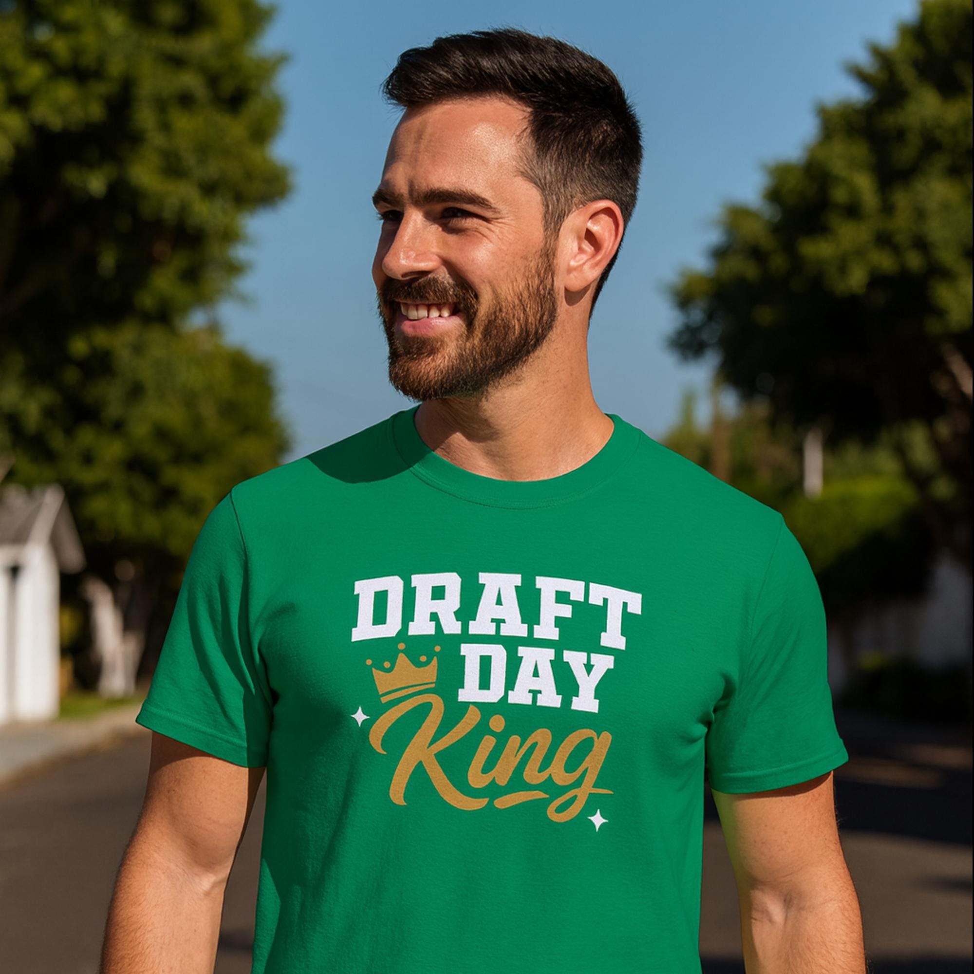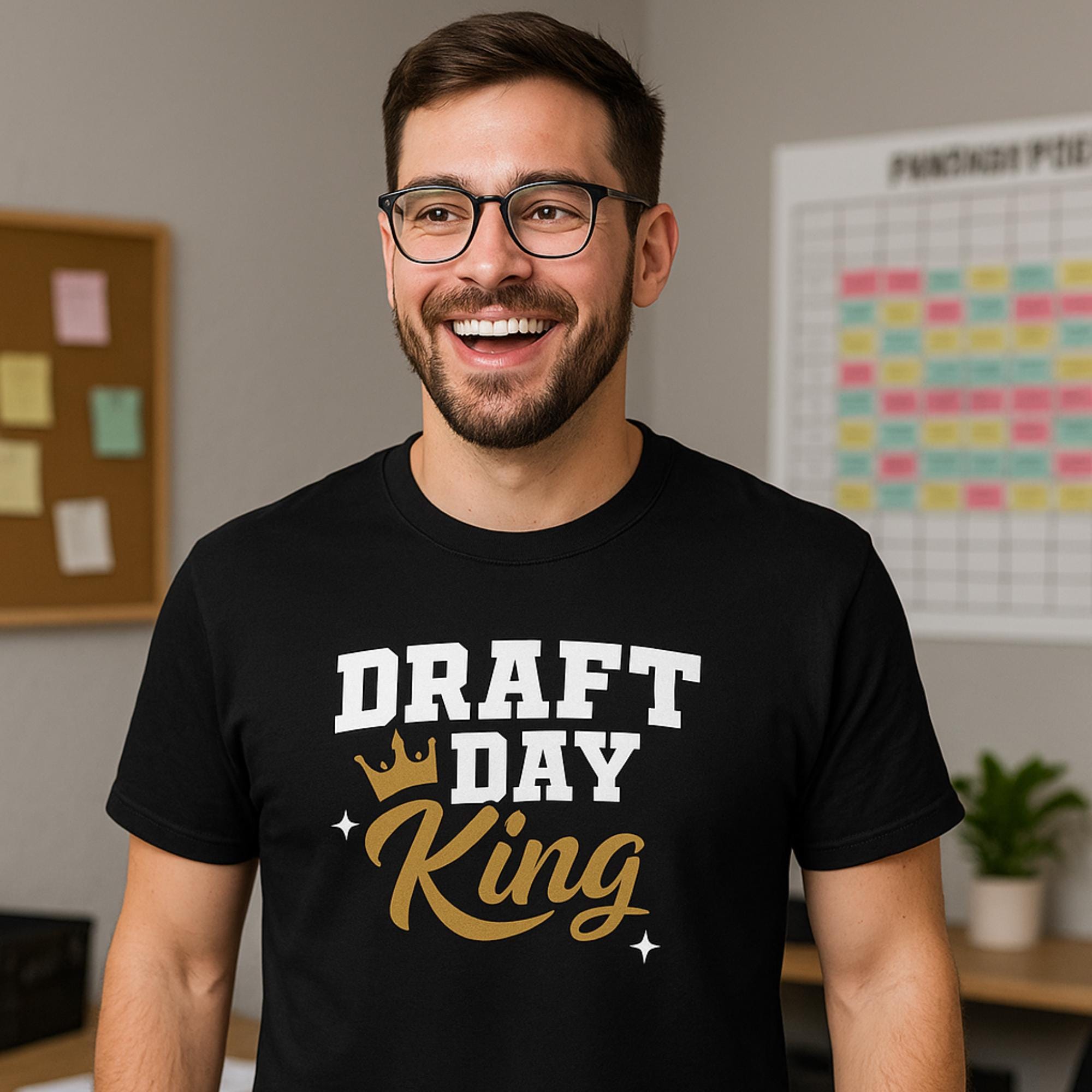Eye-catching “Draft Day King” design with crown + sparkle accents