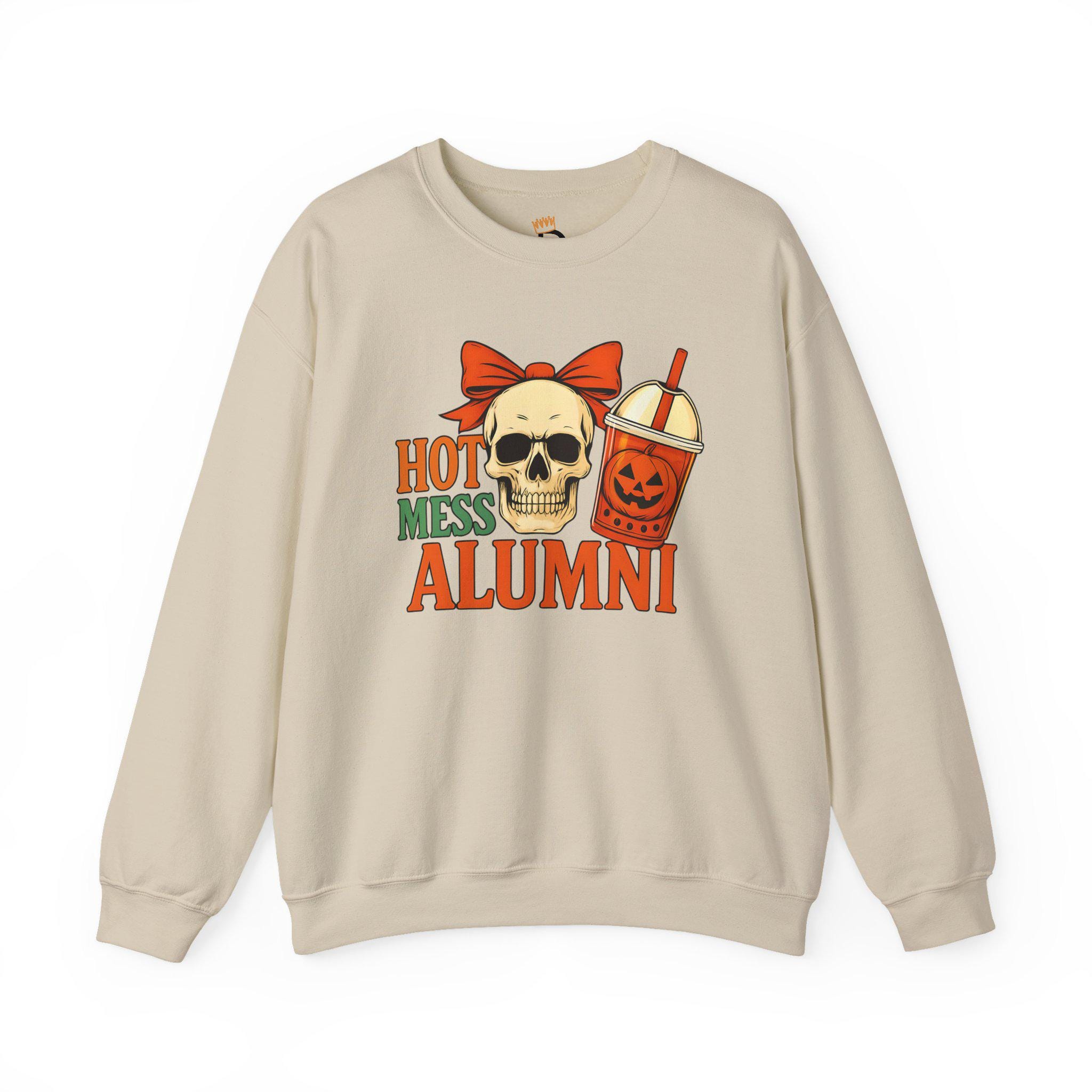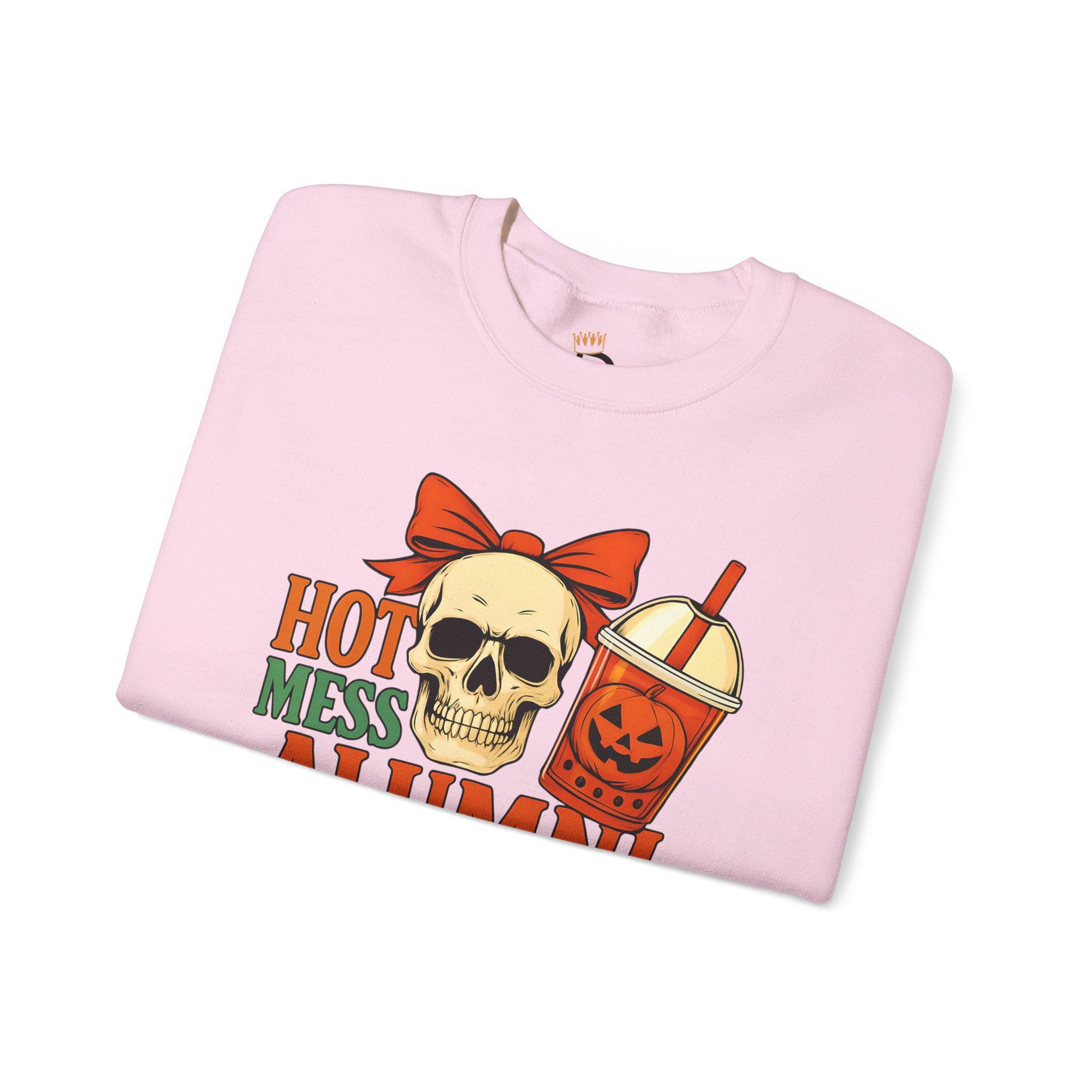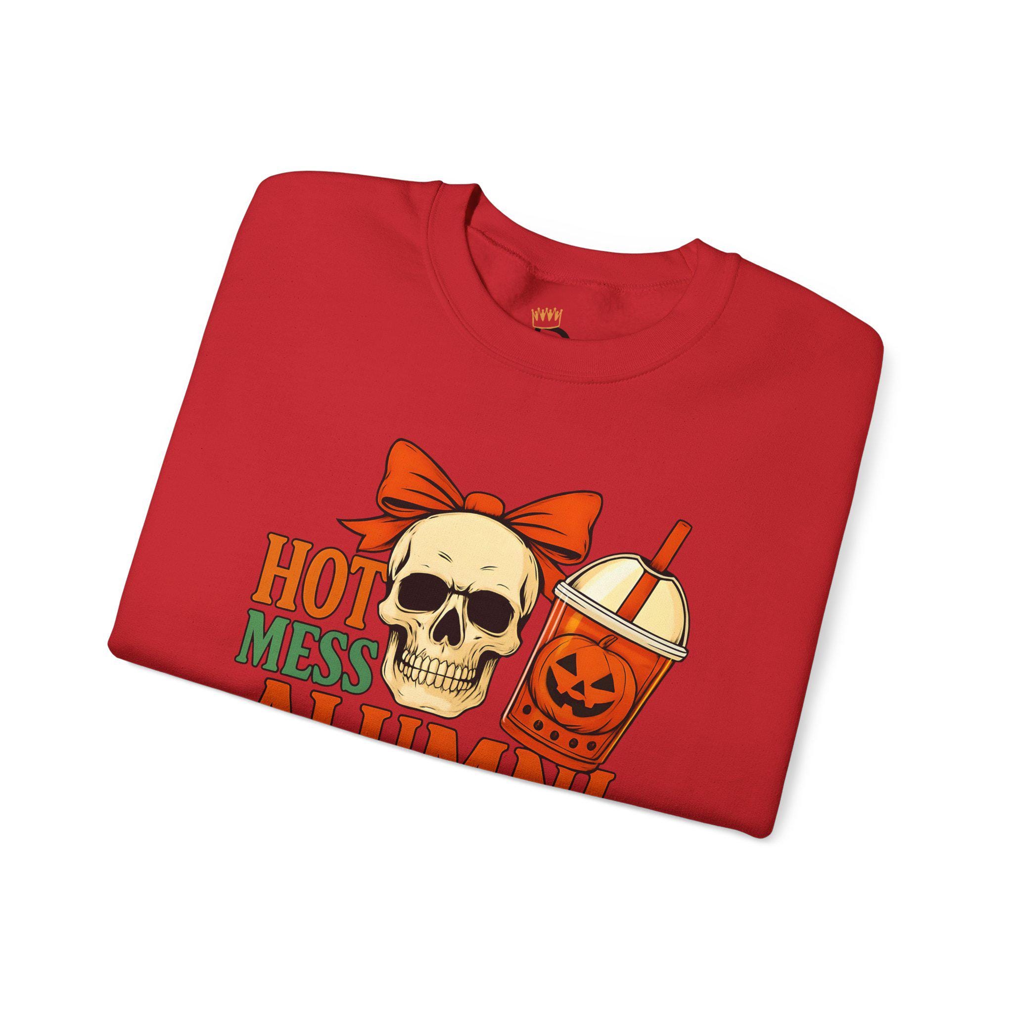 Hot Mess Alumni Sweatshirt: Spooky Skull Pumpkin Spice Crewneck