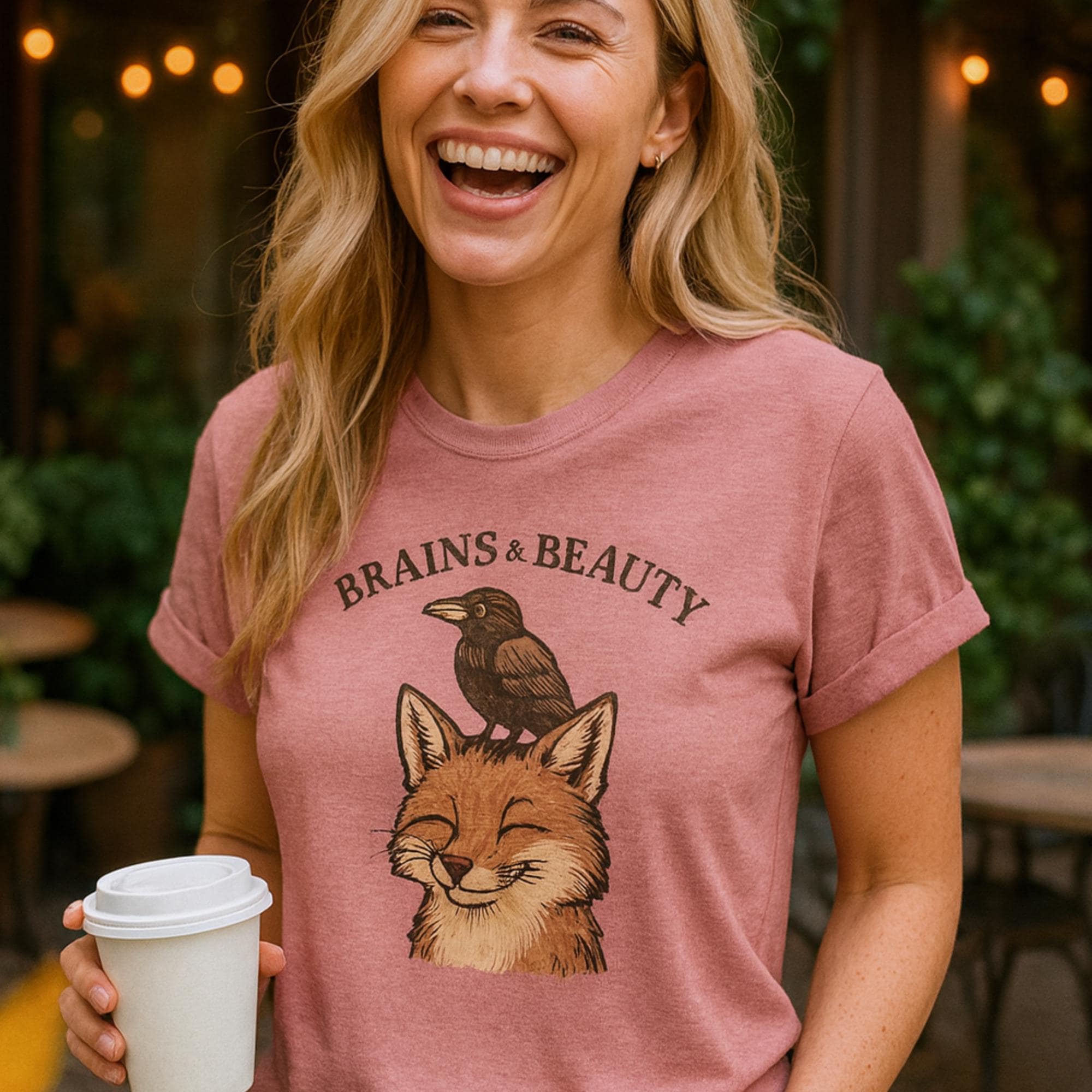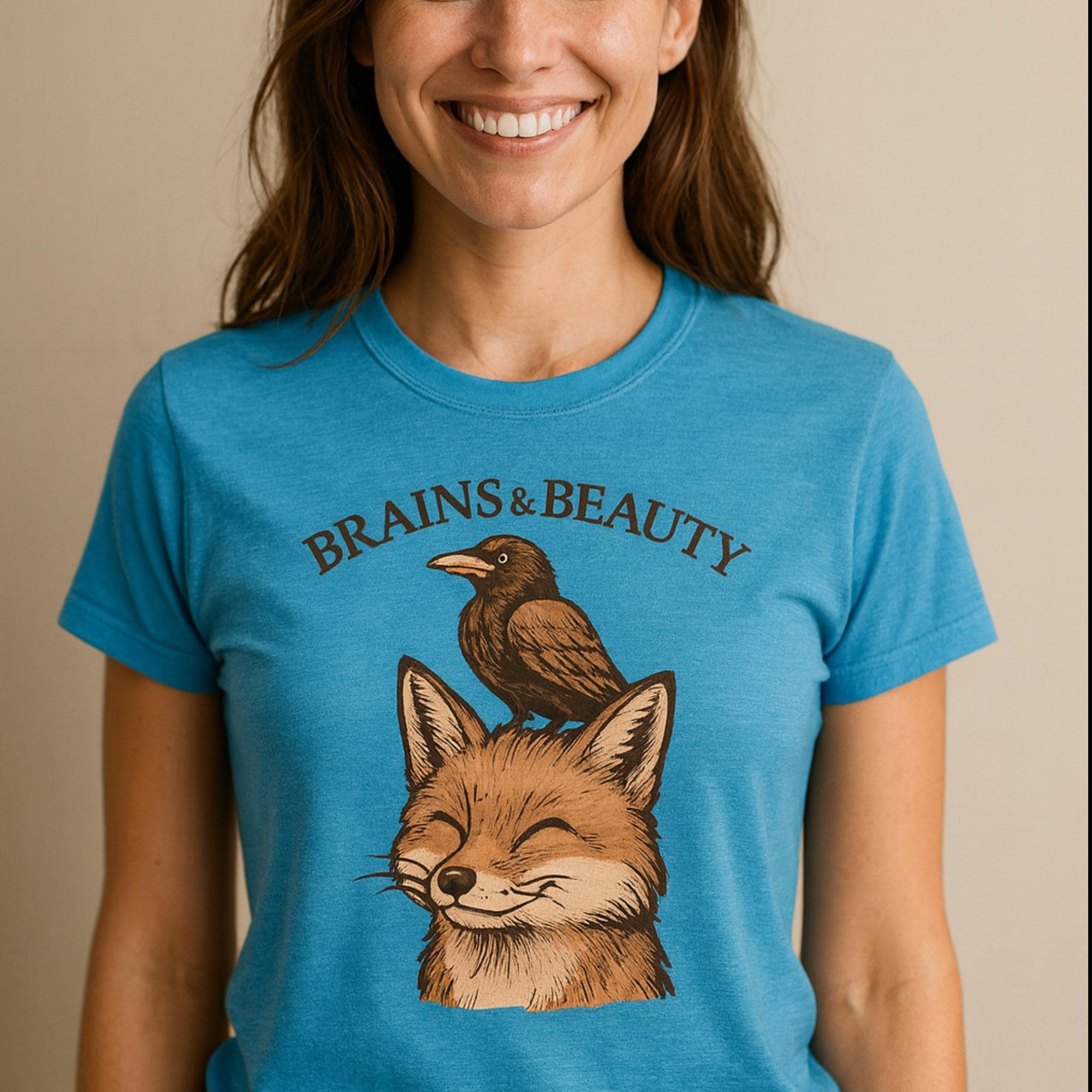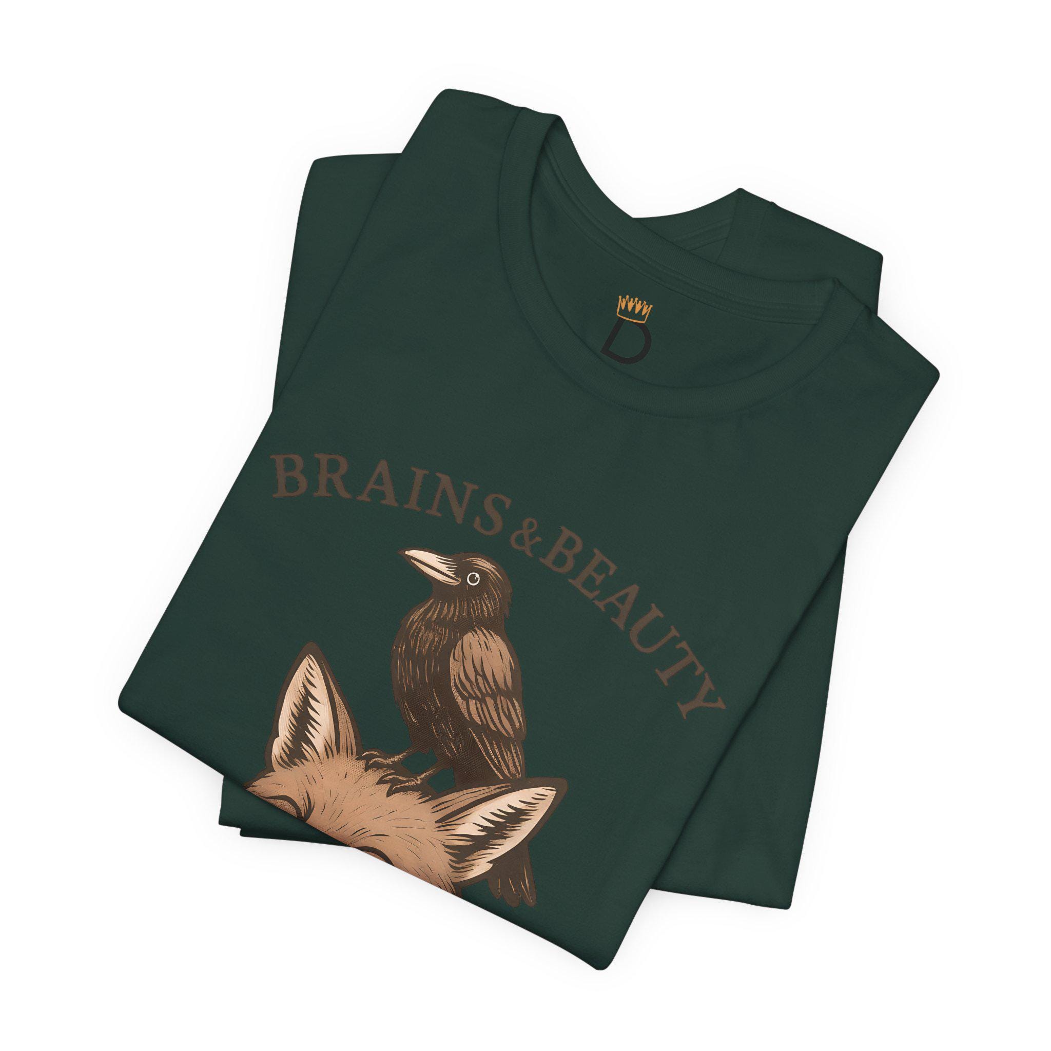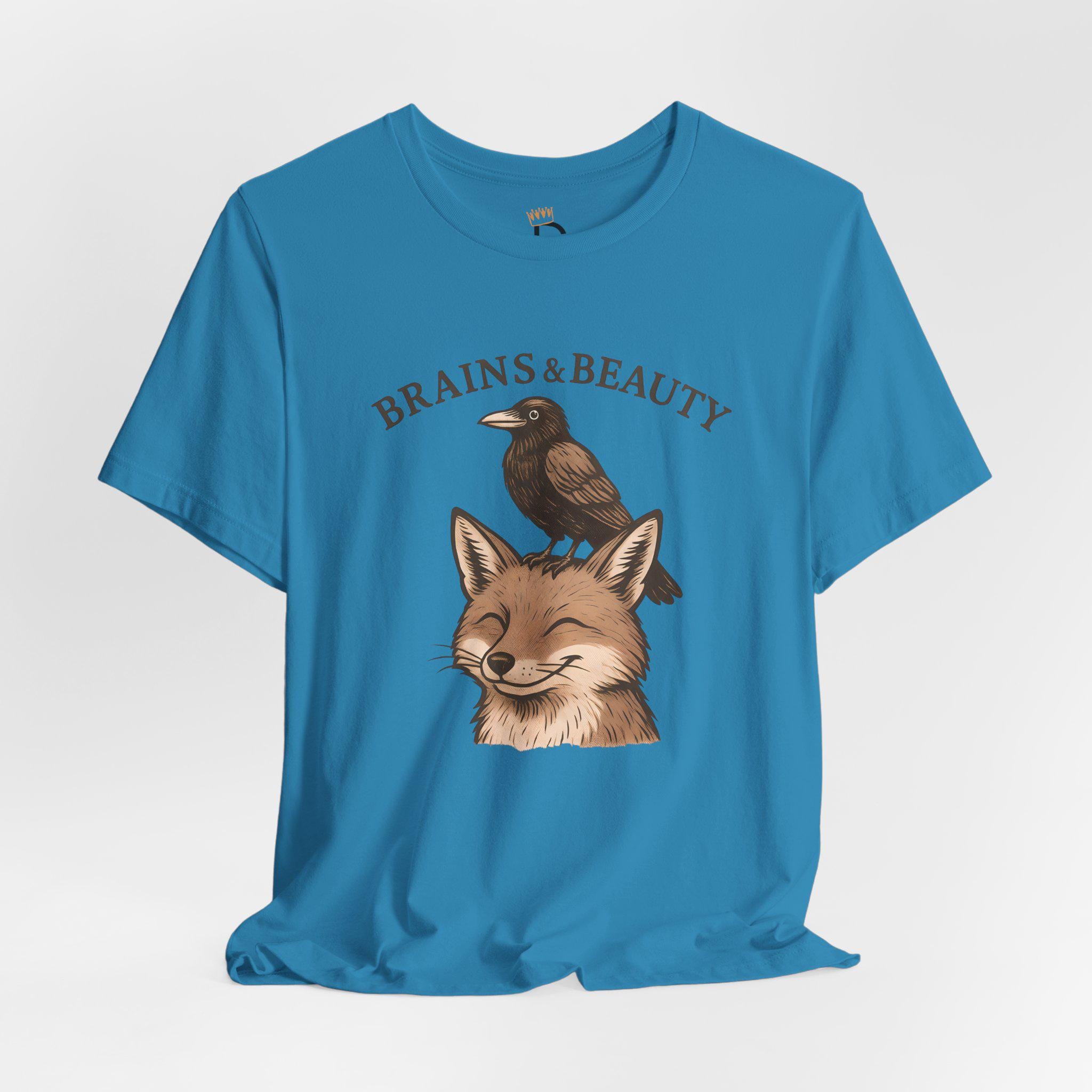 Smart meets stunning. Our “Brains & Beauty” Fox Tee Shirt, pairs a clever crow with a foxy grin for a whimsical, vintage-style illustration that celebrates unlikely friendships and balanced vibes. Perfect for nature lovers, cottagecore cuties, and best-friend gifts.