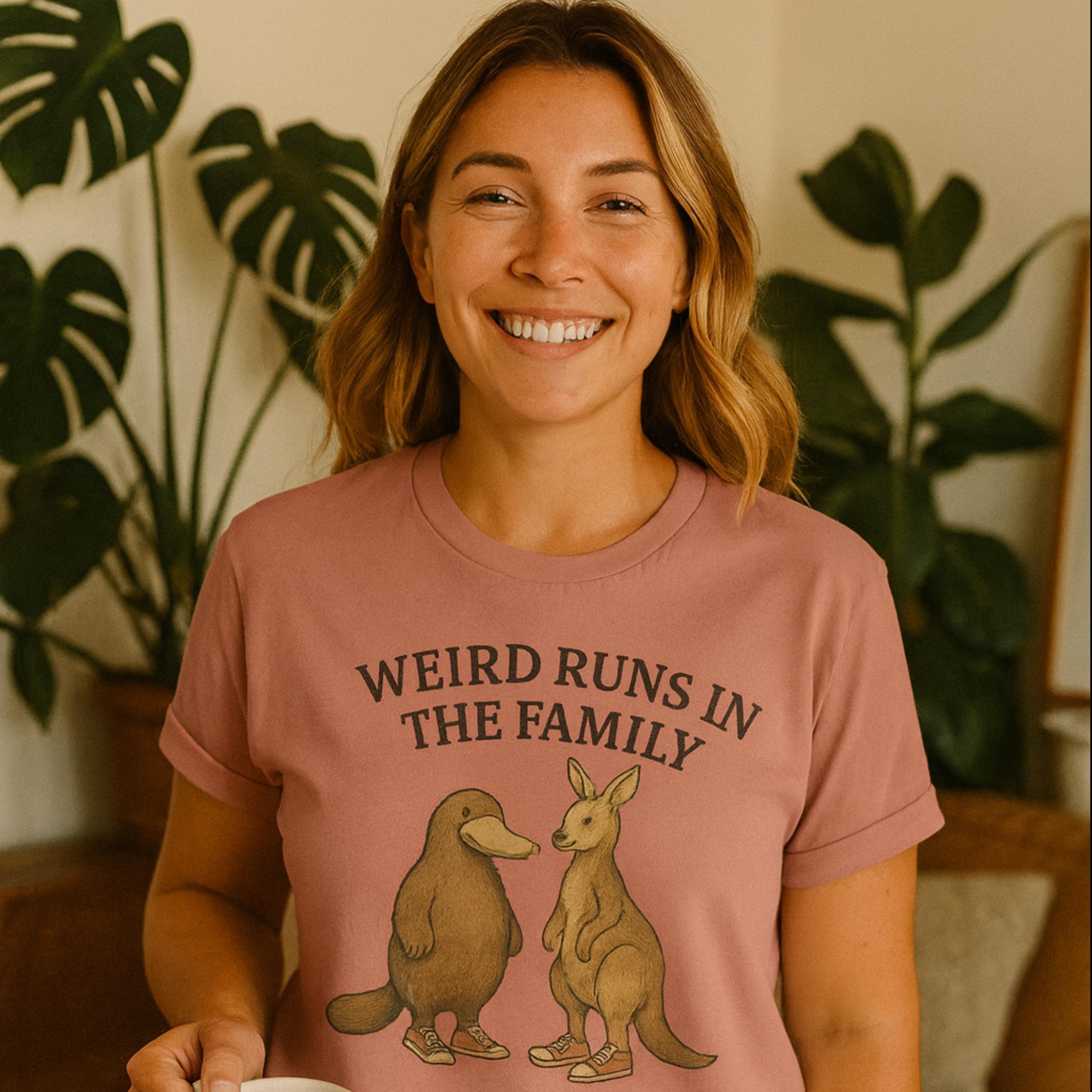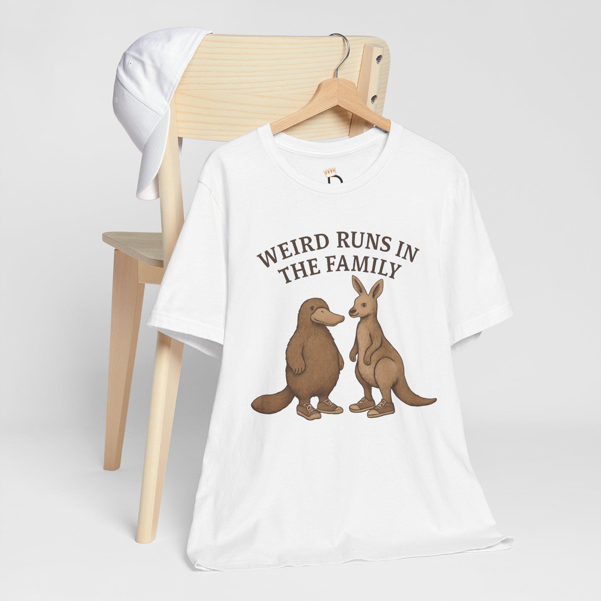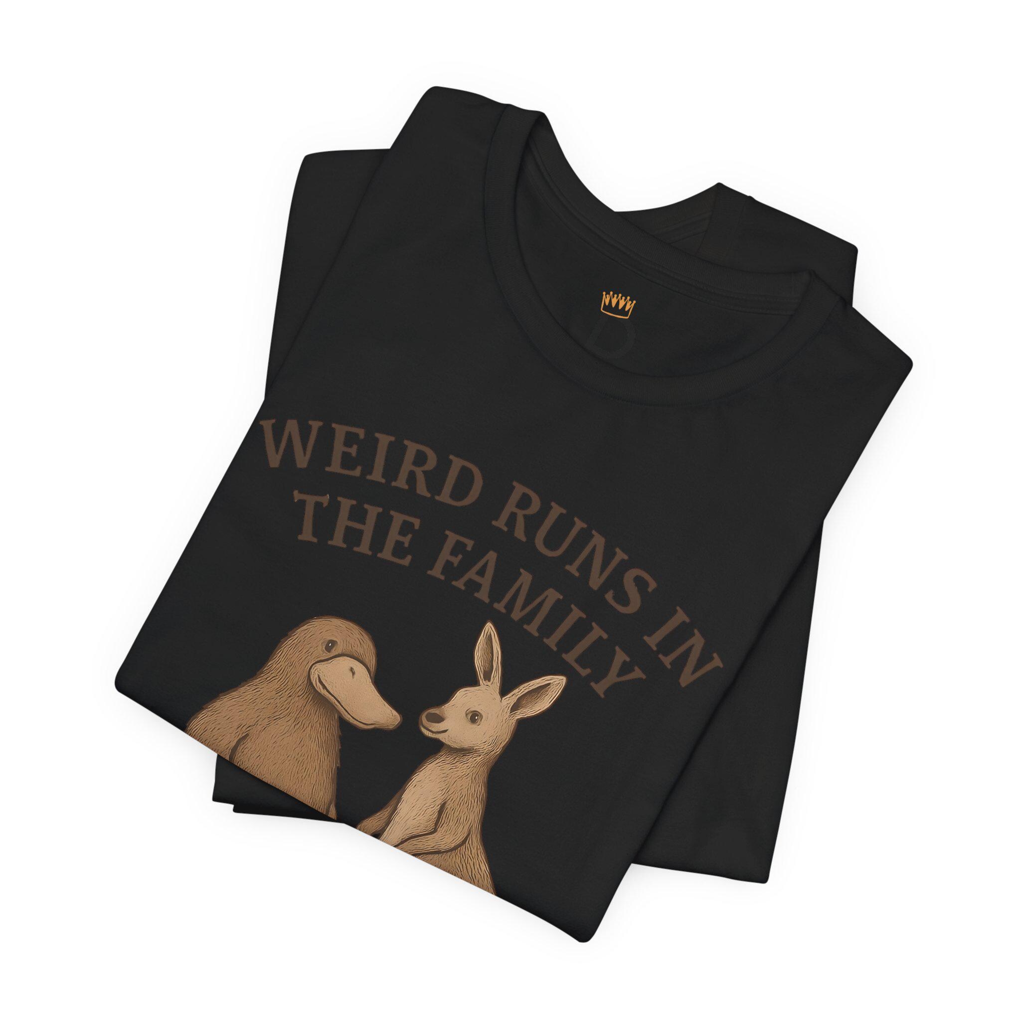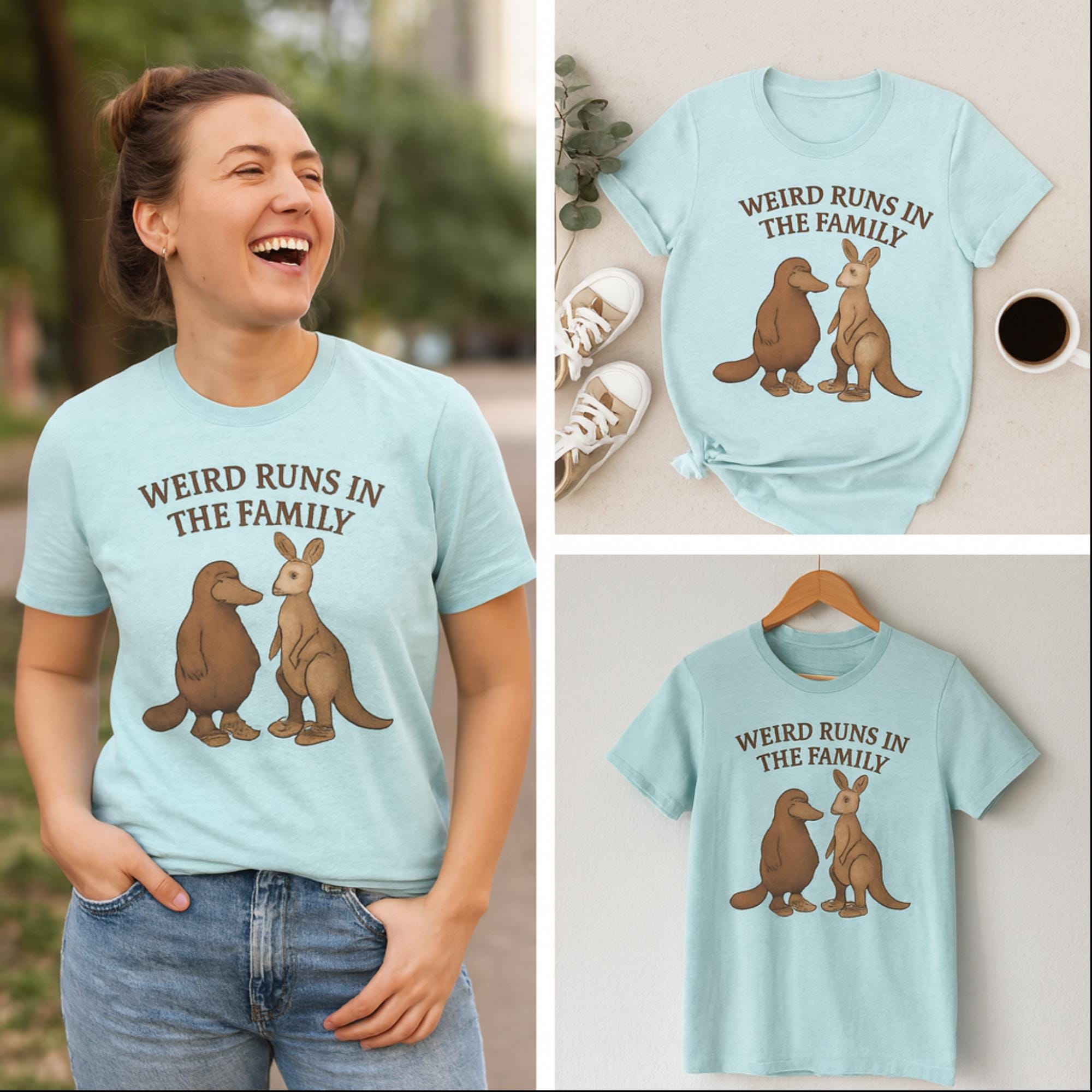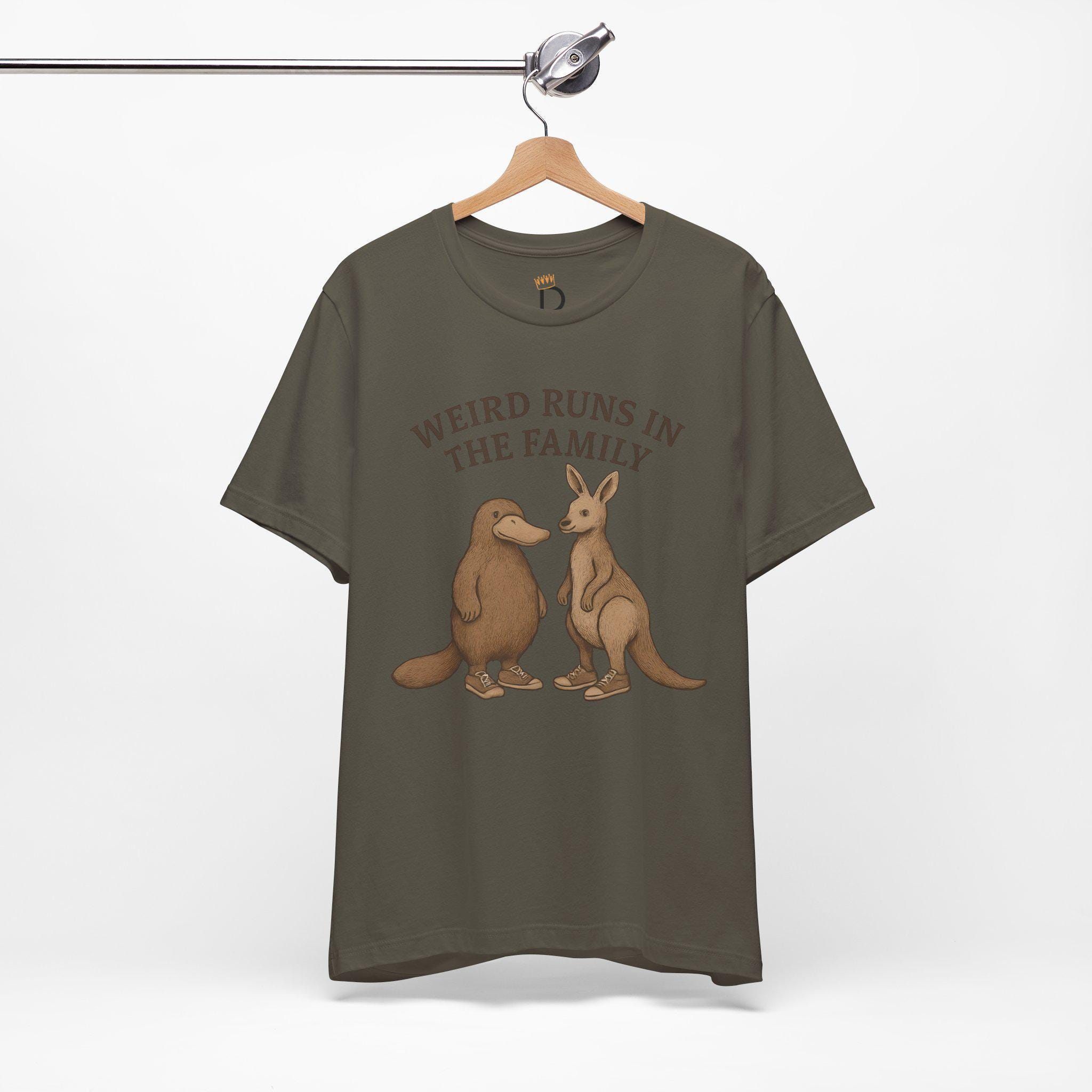 Funny Platypus & Kangaroo Graphic Tee: Weird Runs in the Family