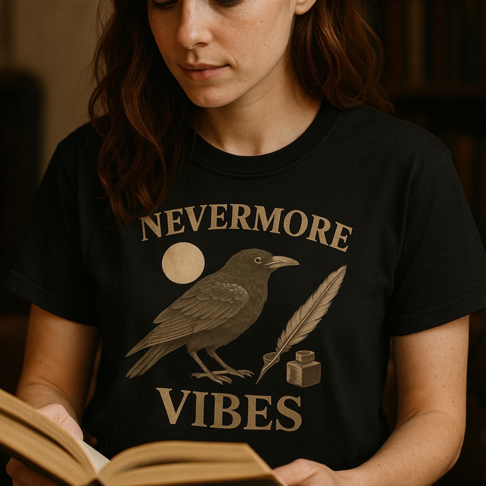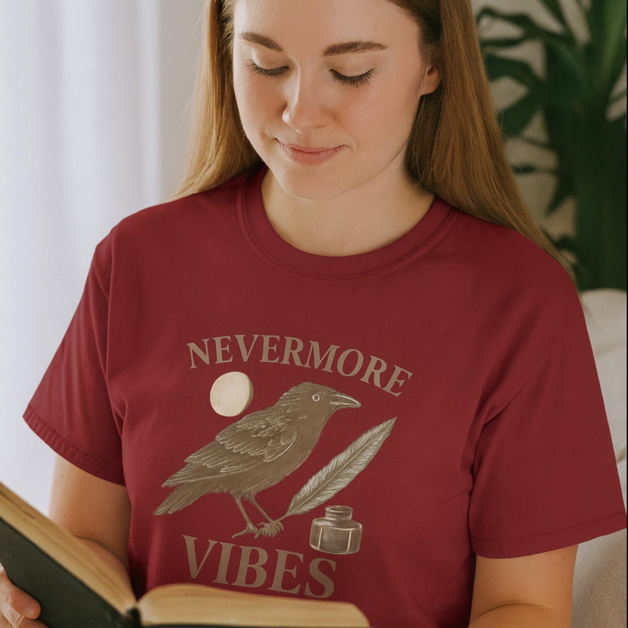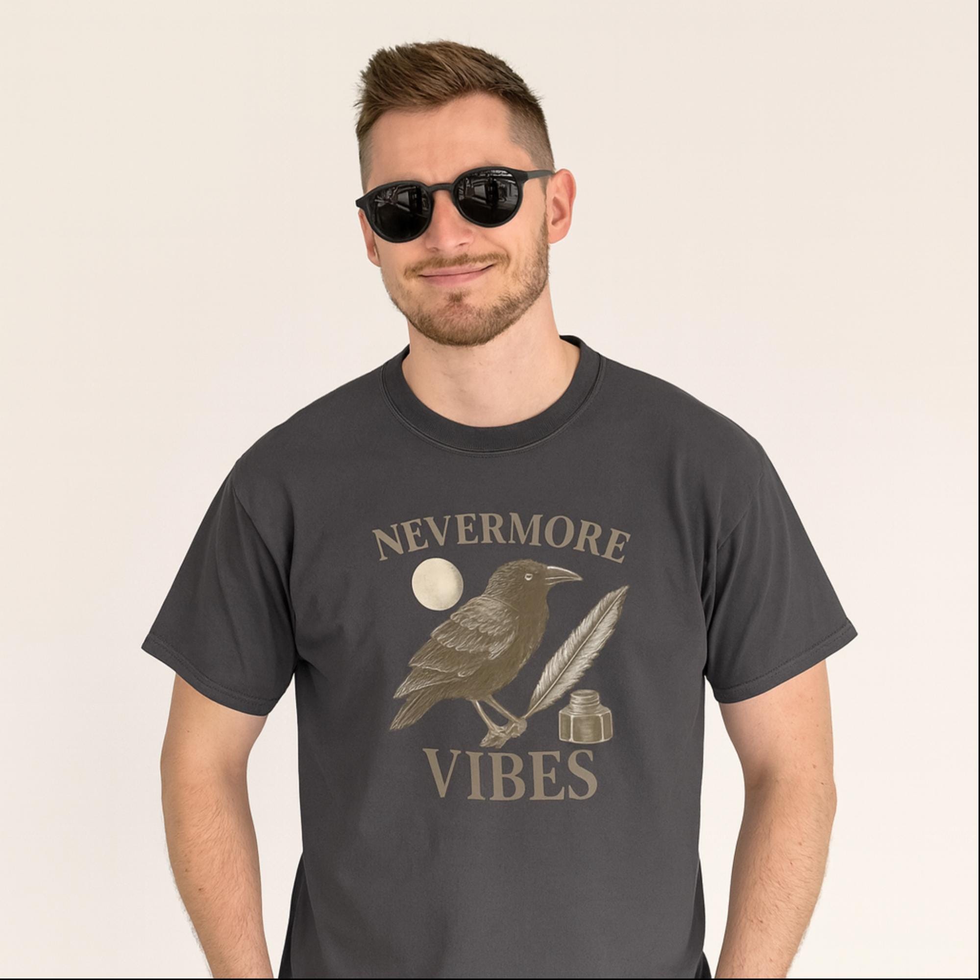 📖 Channel your inner Edgar Allen Poe with the “Nevermore Vibes” Comfort Colors 1717 Tee!