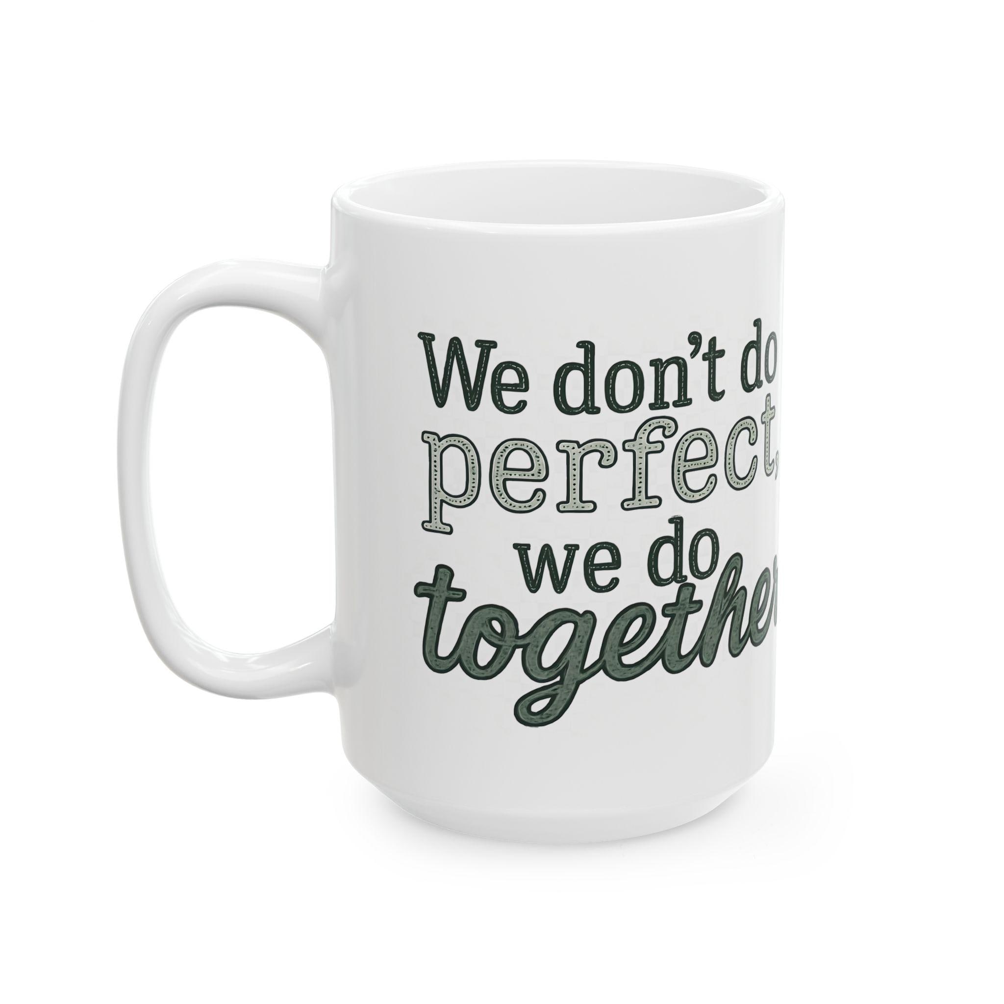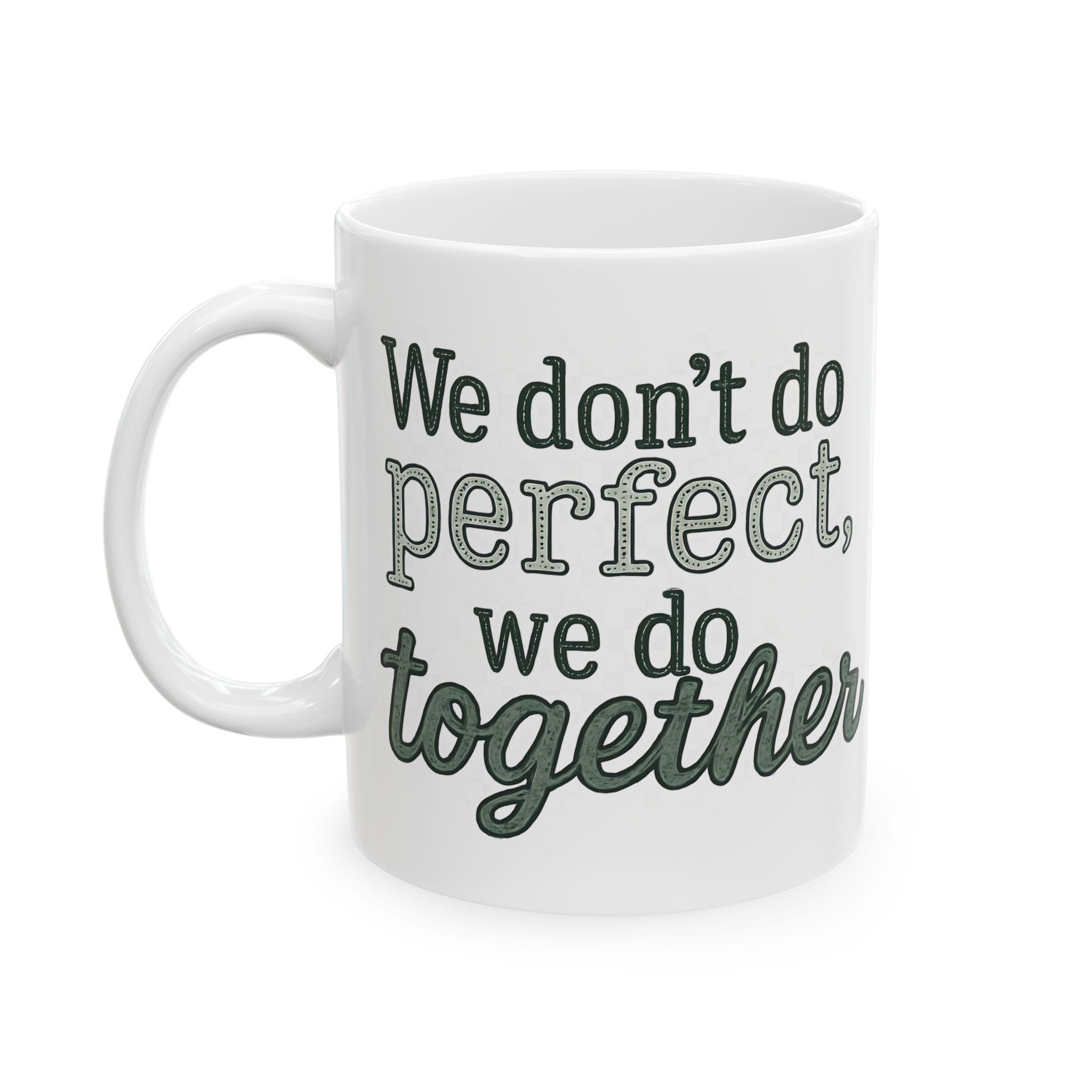 This ceramic mug is perfect for those who value togetherness over perfection. With a glossy finish and vibrant colors, this mug is both practical and visually appealing. Whether you're enjoying your morning coffee or sharing a cup of tea with loved ones, this mug is a great addition to your daily routine. Ideal for family gatherings, holiday celebrations, or cozy evenings at home.