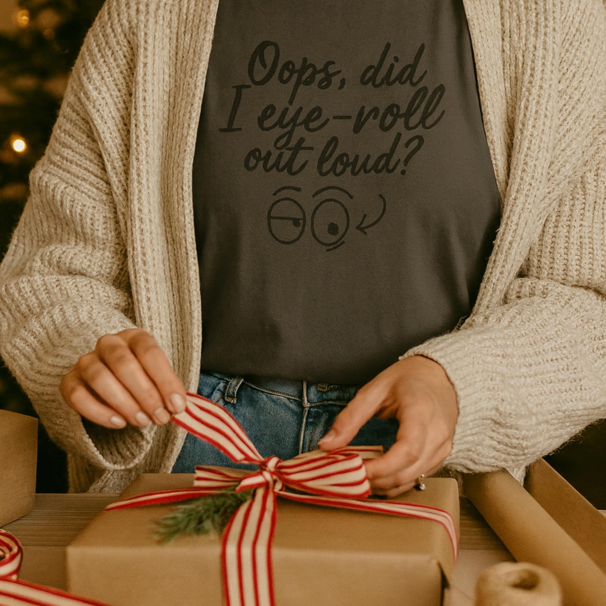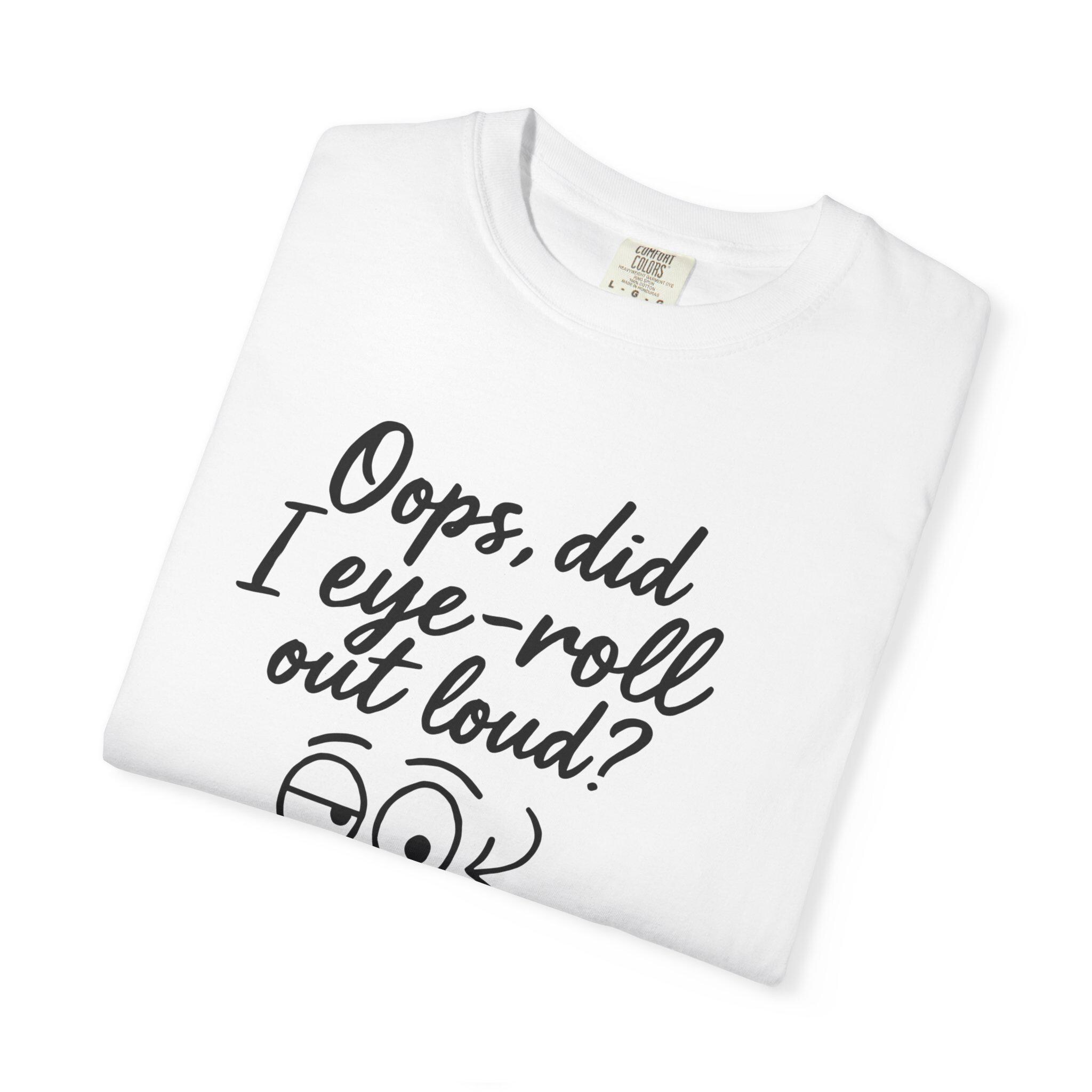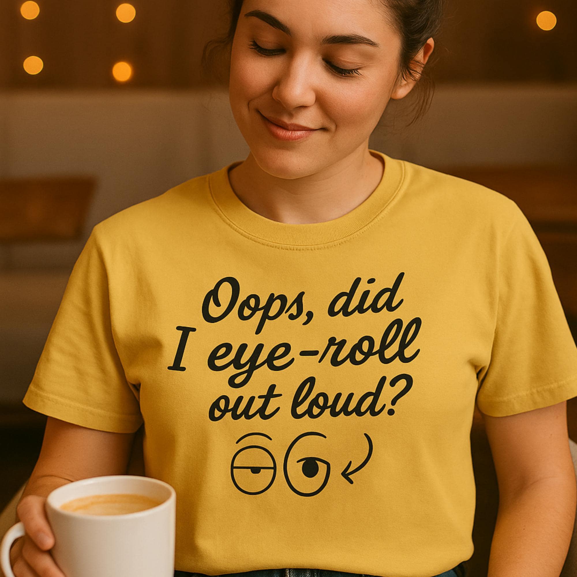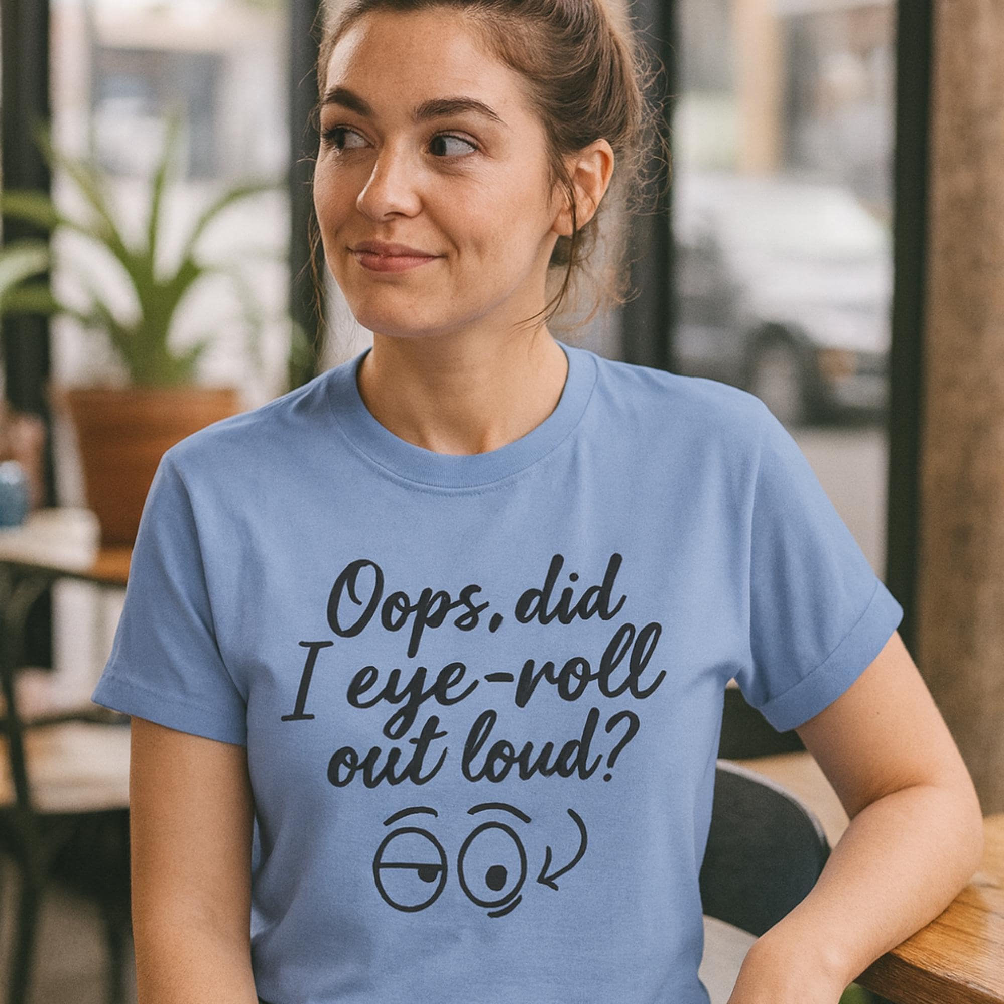 Ever been caught mid-eye-roll? Now you can own it. 😏 Our “Oops, Did I Eye-Roll Out Loud?” Comfort Colors T-shirt is the perfect mix of sass, sarcasm, and comfort. Made for anyone who speaks fluent side-eye, this shirt is your go-to for work Zoom calls, coffee shop hangs, or when Aunt Carol starts that story again at the holidays.