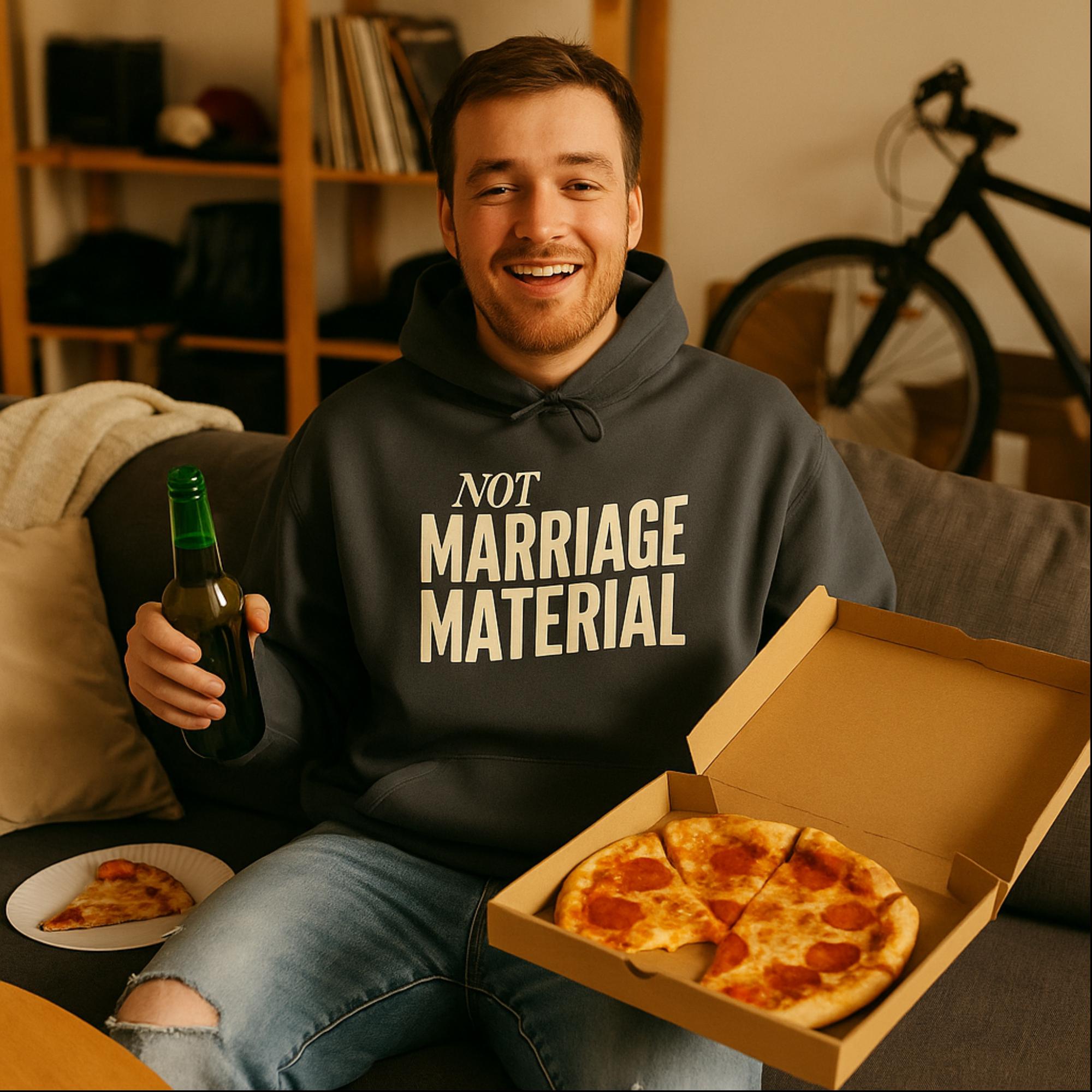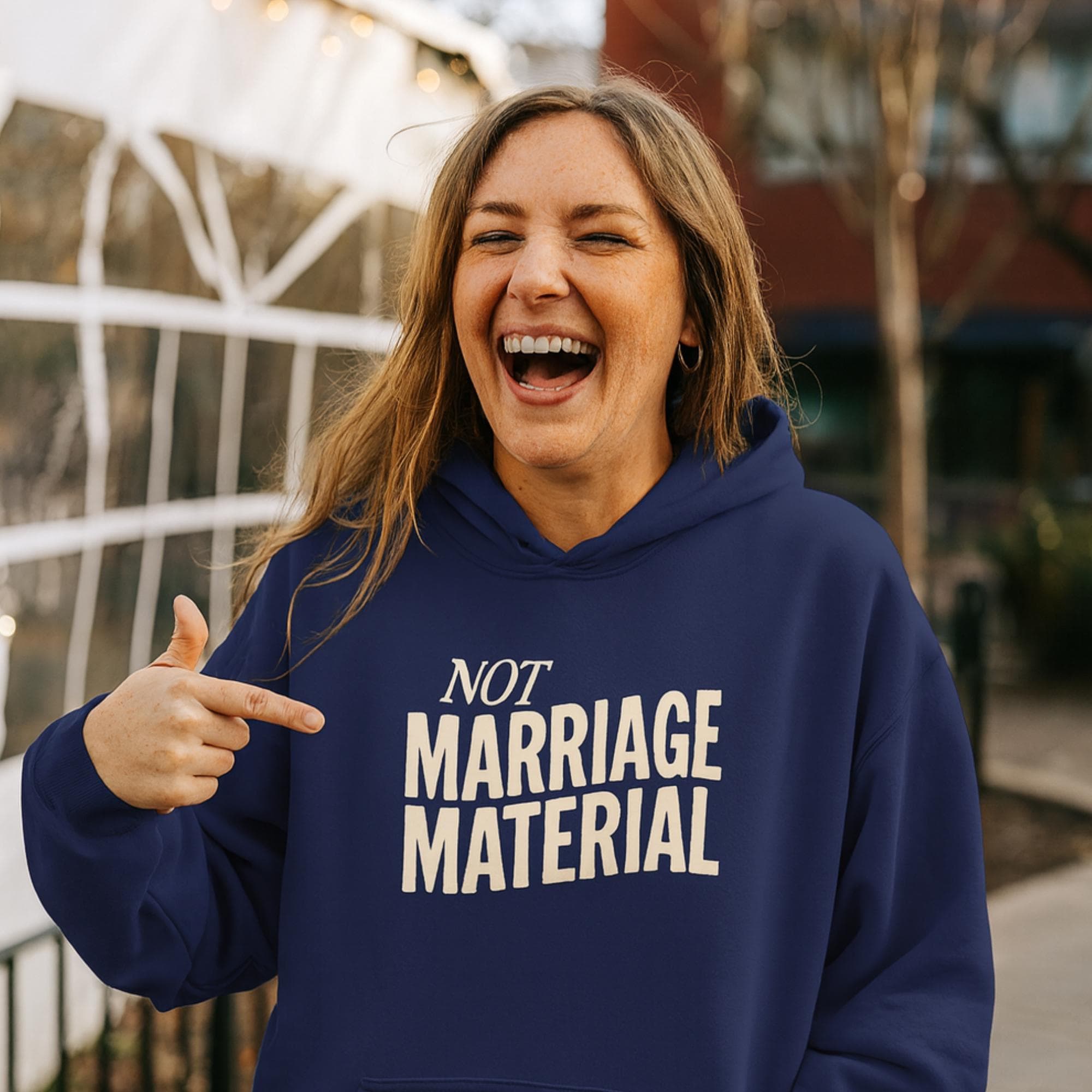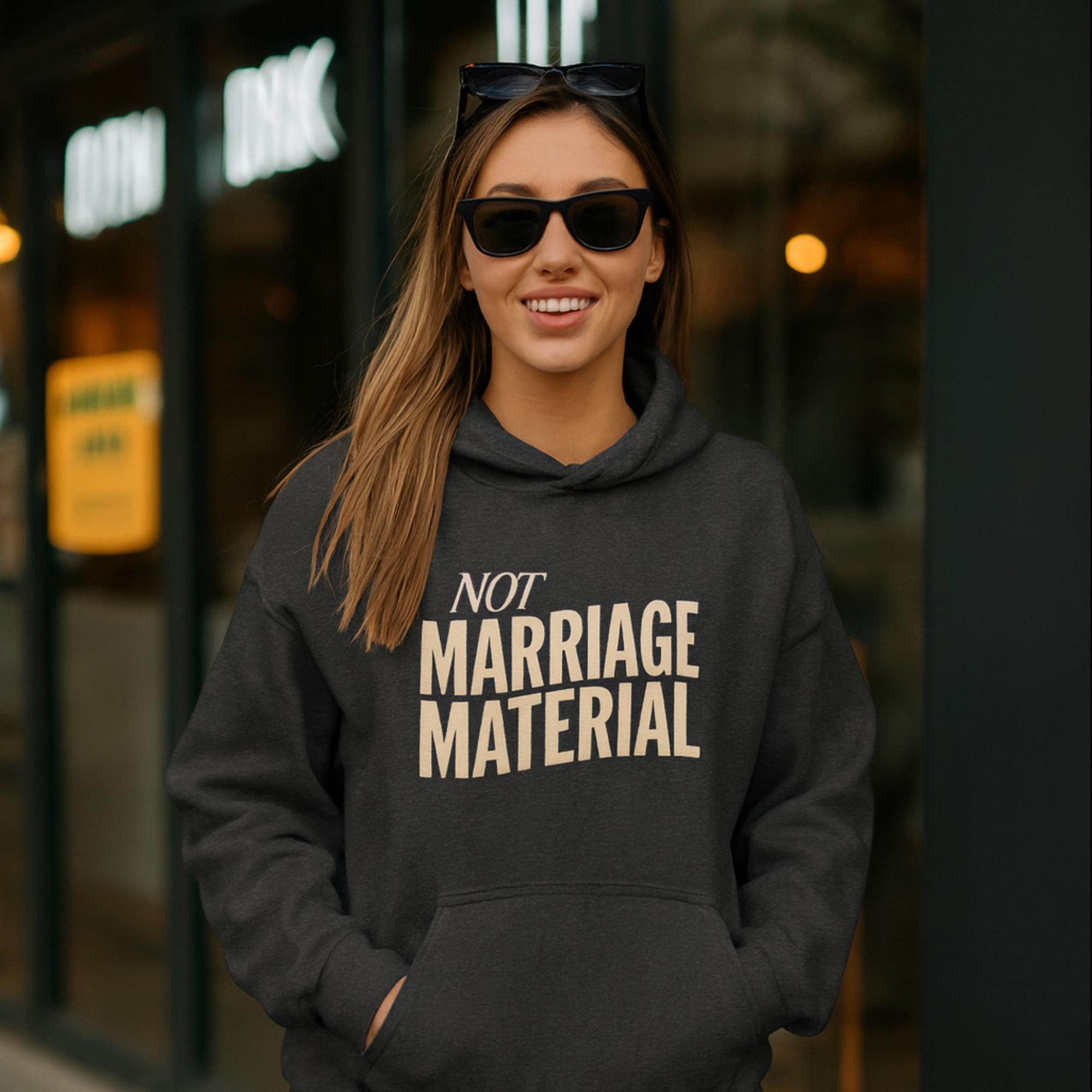 Make your sarcasm cozy with this funny friend gift. The Not Marriage Material Hoodie is a cheeky statement piece for anyone who embraces their independence with a sense of humor, making it an excellent Gift for Funny Friends. Printed on the classic Gildan 18500 hoodie, it’s soft, warm, and ready for lounging, brunching, or just letting the world know exactly where you stand.