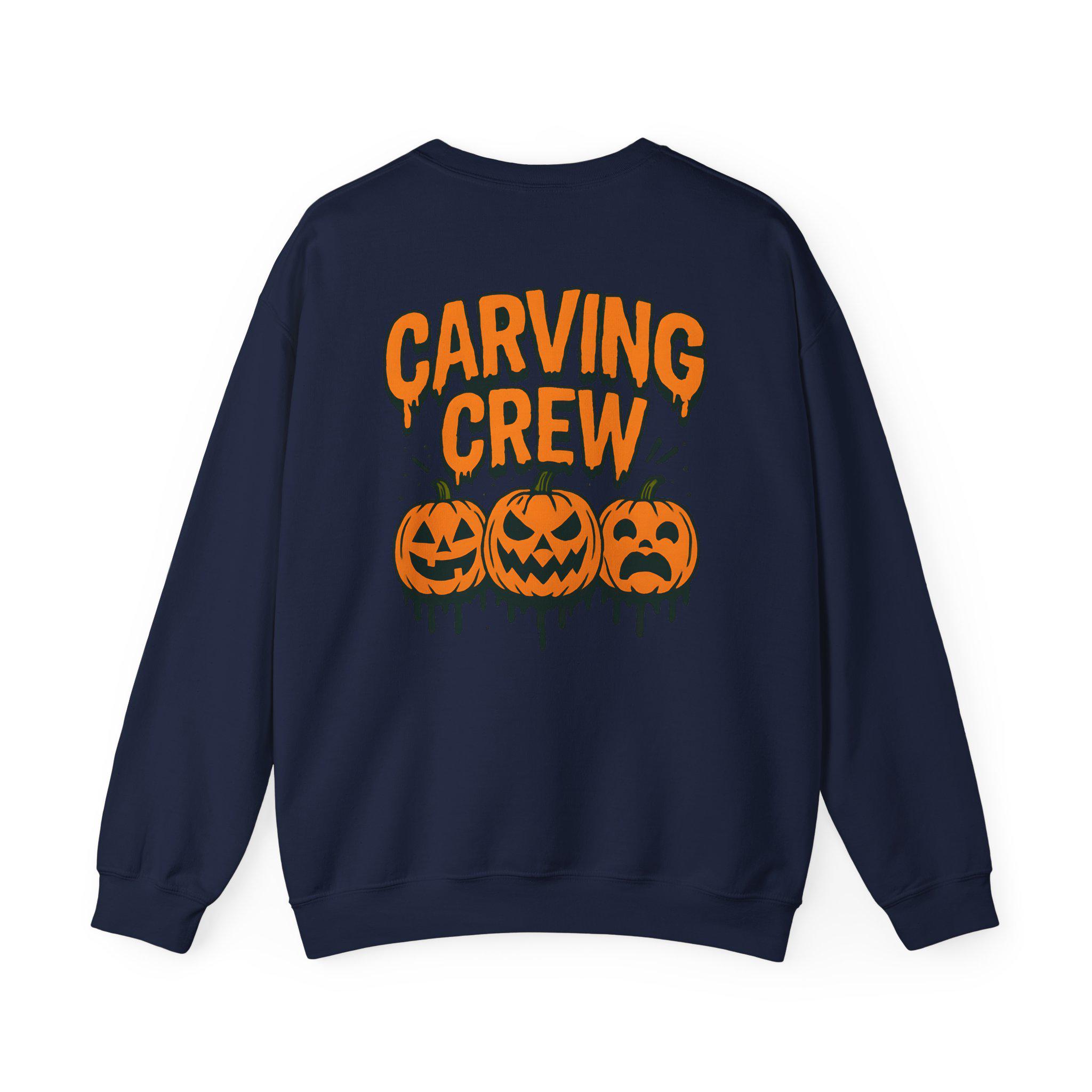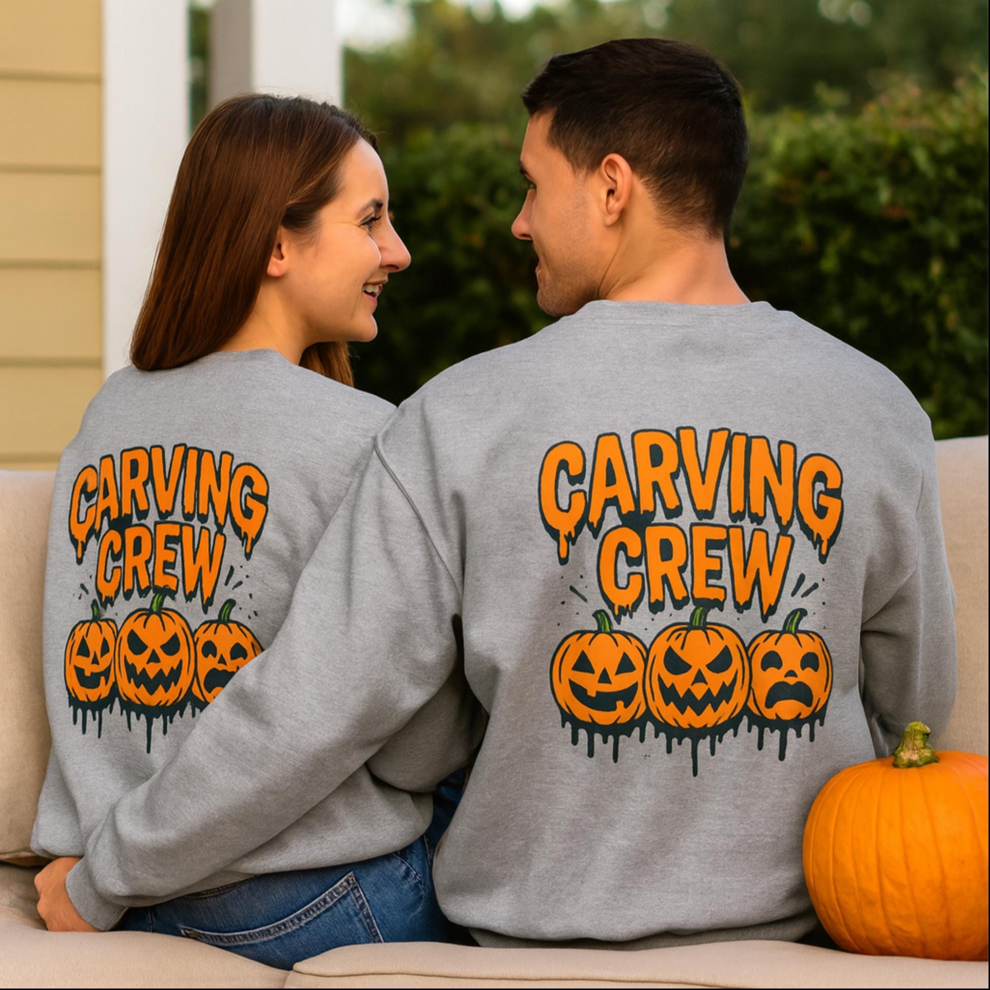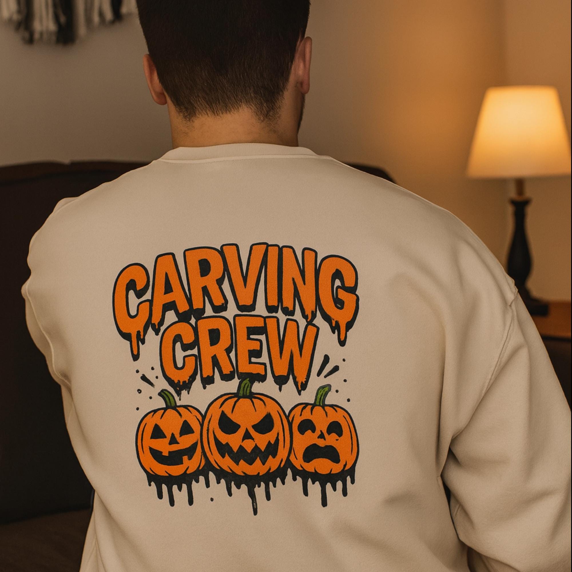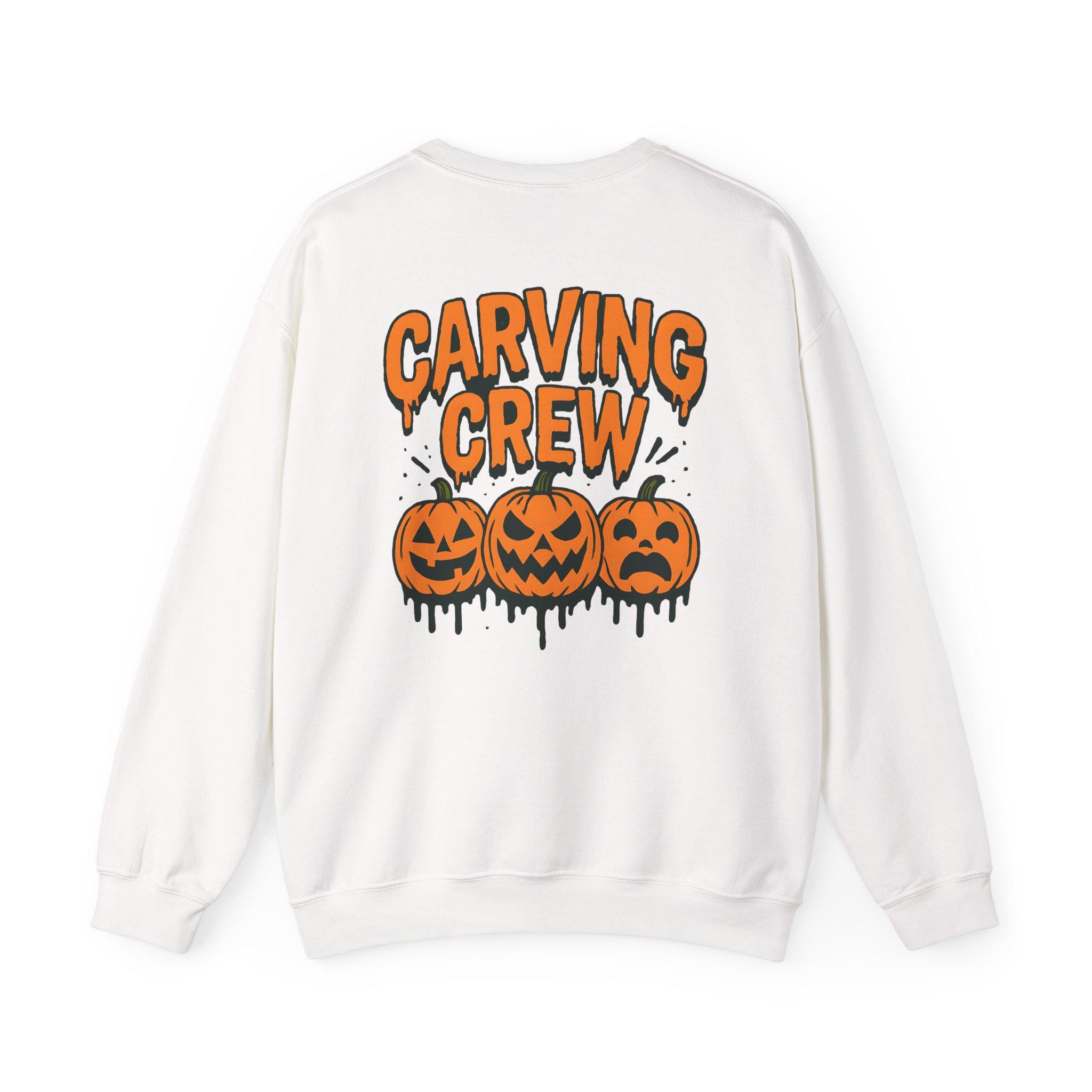 🎃 Join the Carving Crew in style! This cozy Gildan 18000 sweatshirt is perfect for pumpkin carving nights, Halloween parties, and all your spooky season traditions. With a bold jack-o’-lantern design printed on the back, this pullover makes the ultimate group or family Halloween shirt.