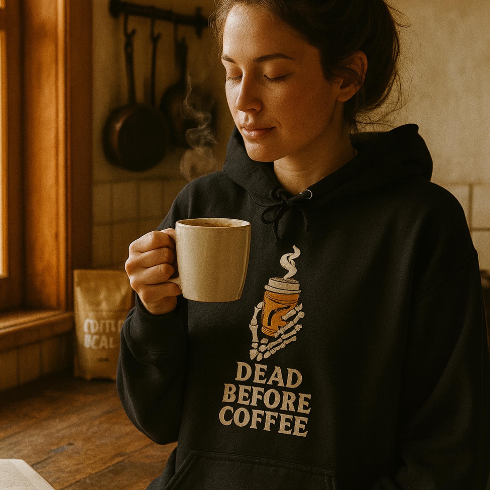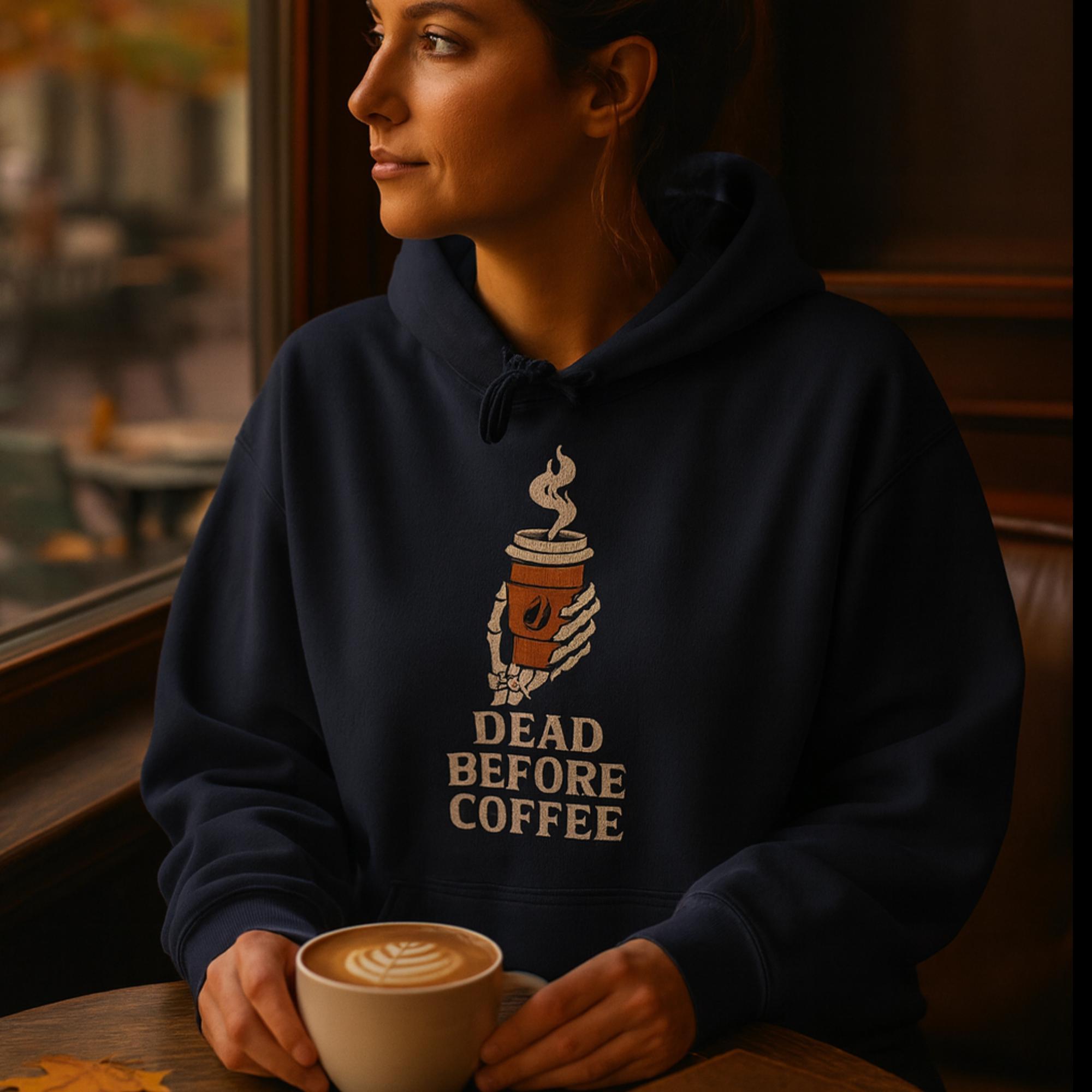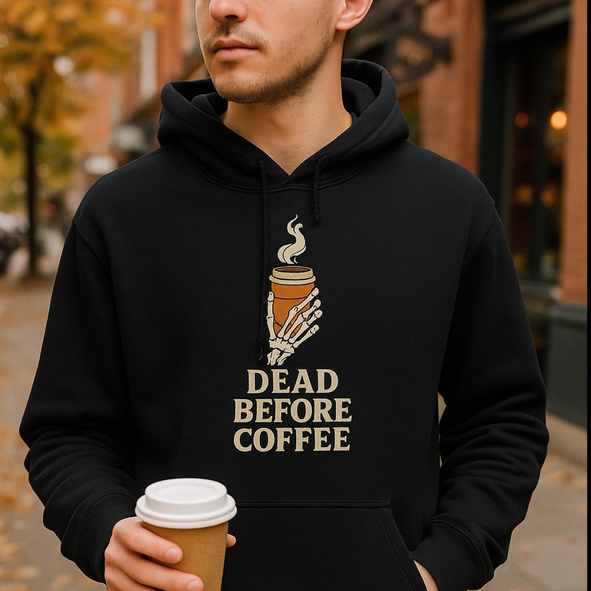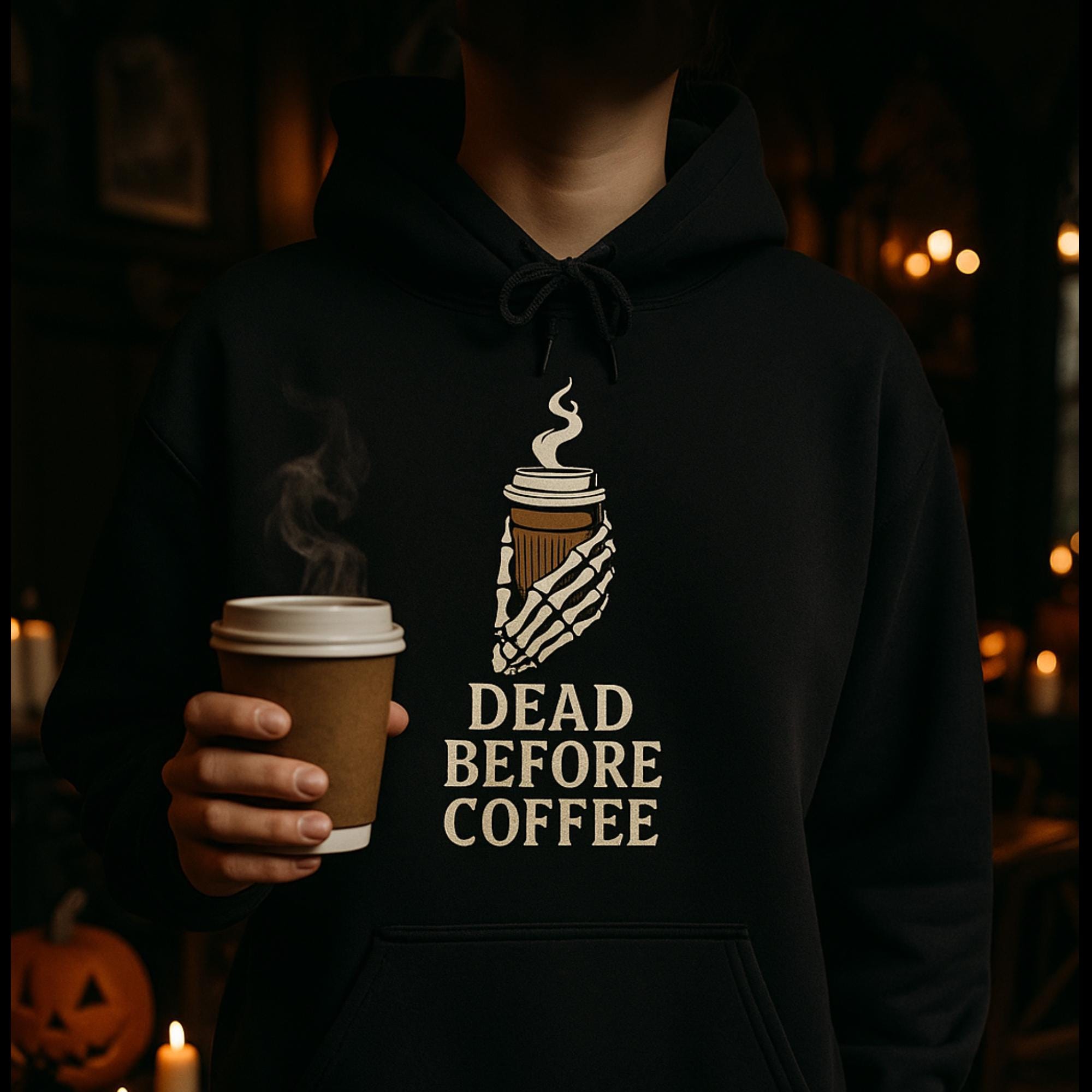 ☕💀 Start your day the only way that makes sense—with coffee and a comfortable hoodie. This Dead Before Coffee Hoodie is the perfect blend of spooky humor and cozy comfort. Featuring a skeleton hand clutching a steaming cup of joe, it’s made for coffee addicts, Halloween lovers, and anyone who can’t function until that first sip.