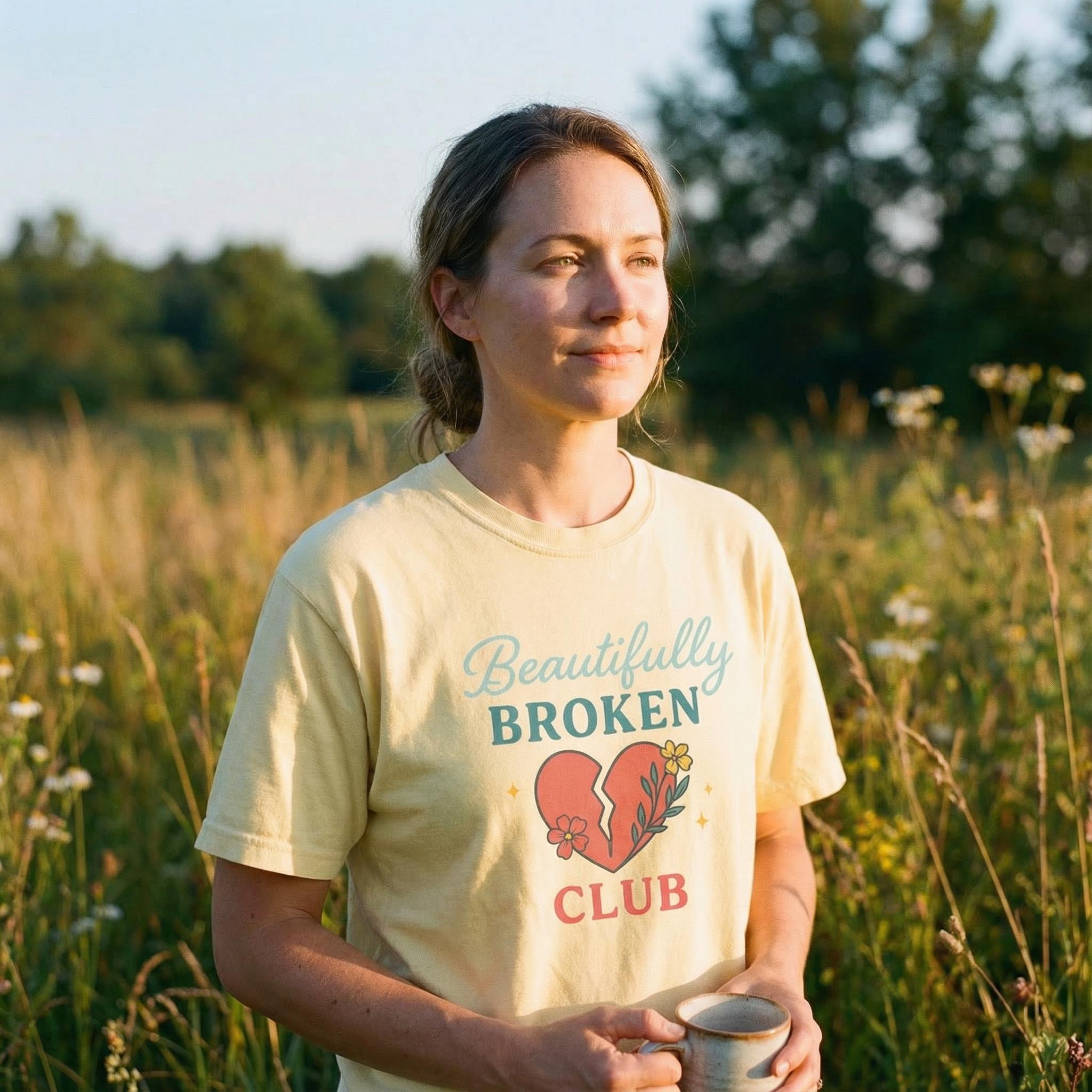 Beautifully Broken Club T-Shirt – Comfort Colors Tee for Women Healing Era Graphic Shirt Soft Vintage Mental Health Tee