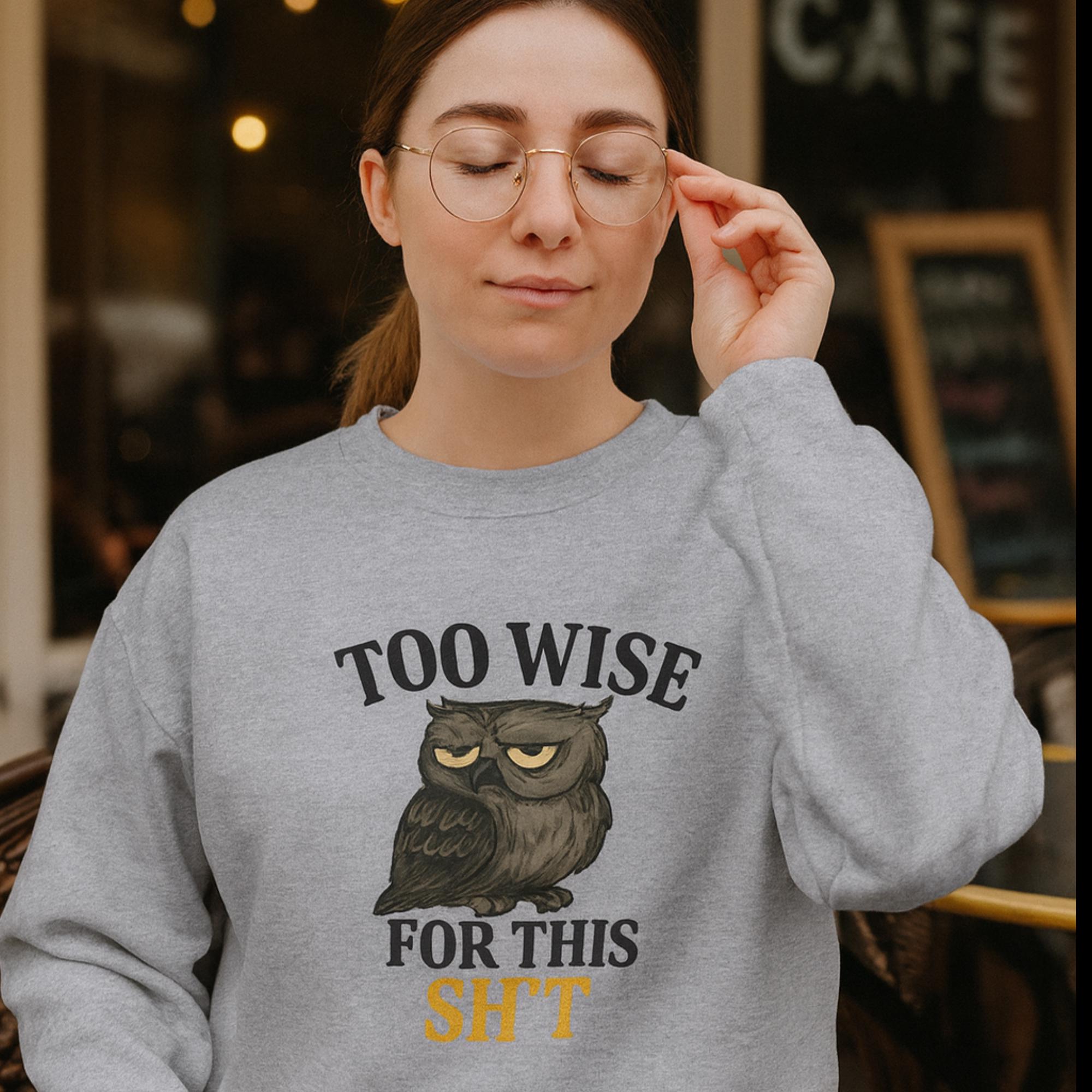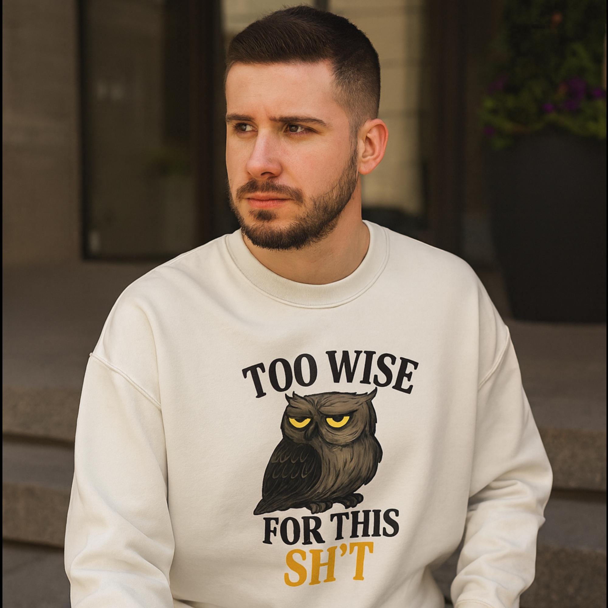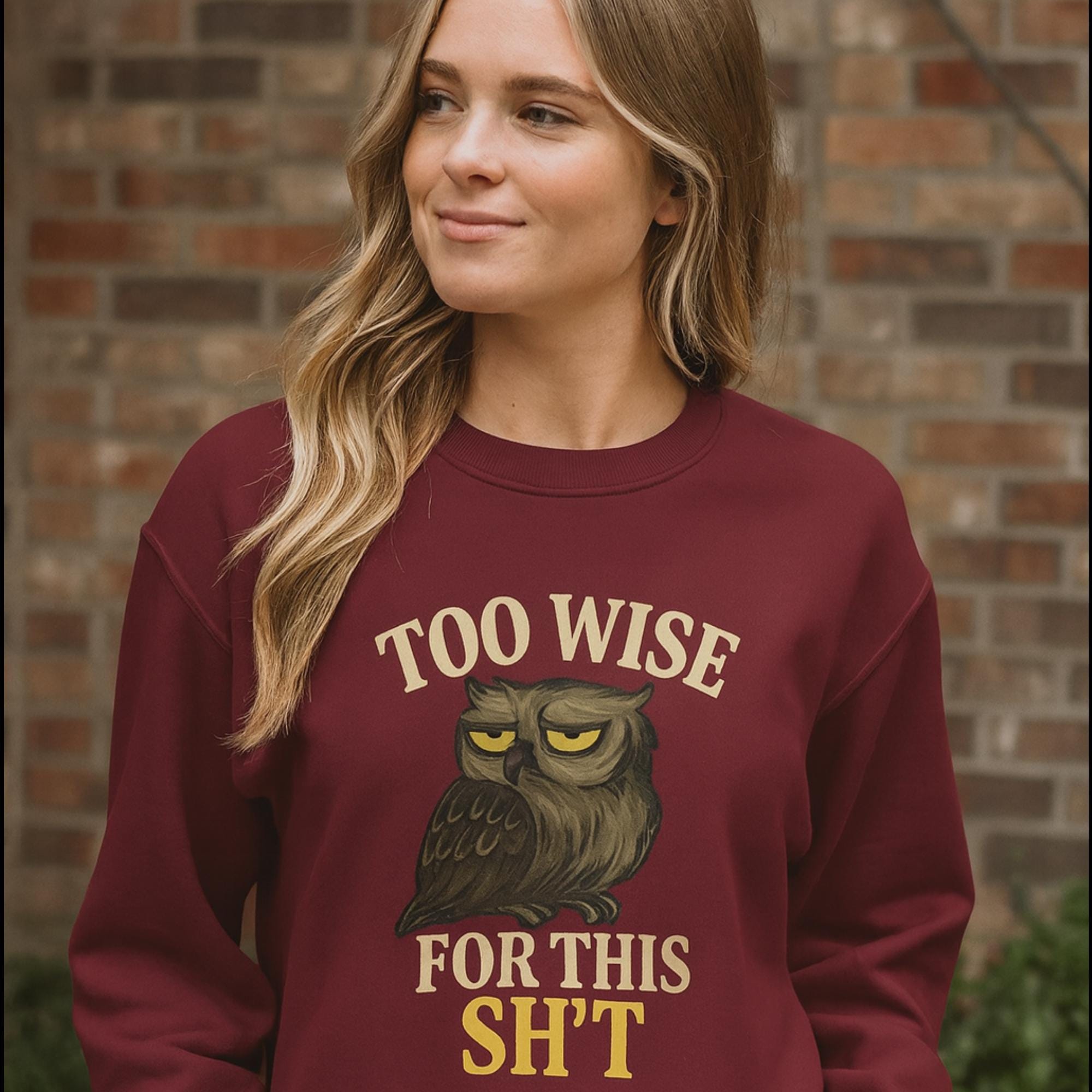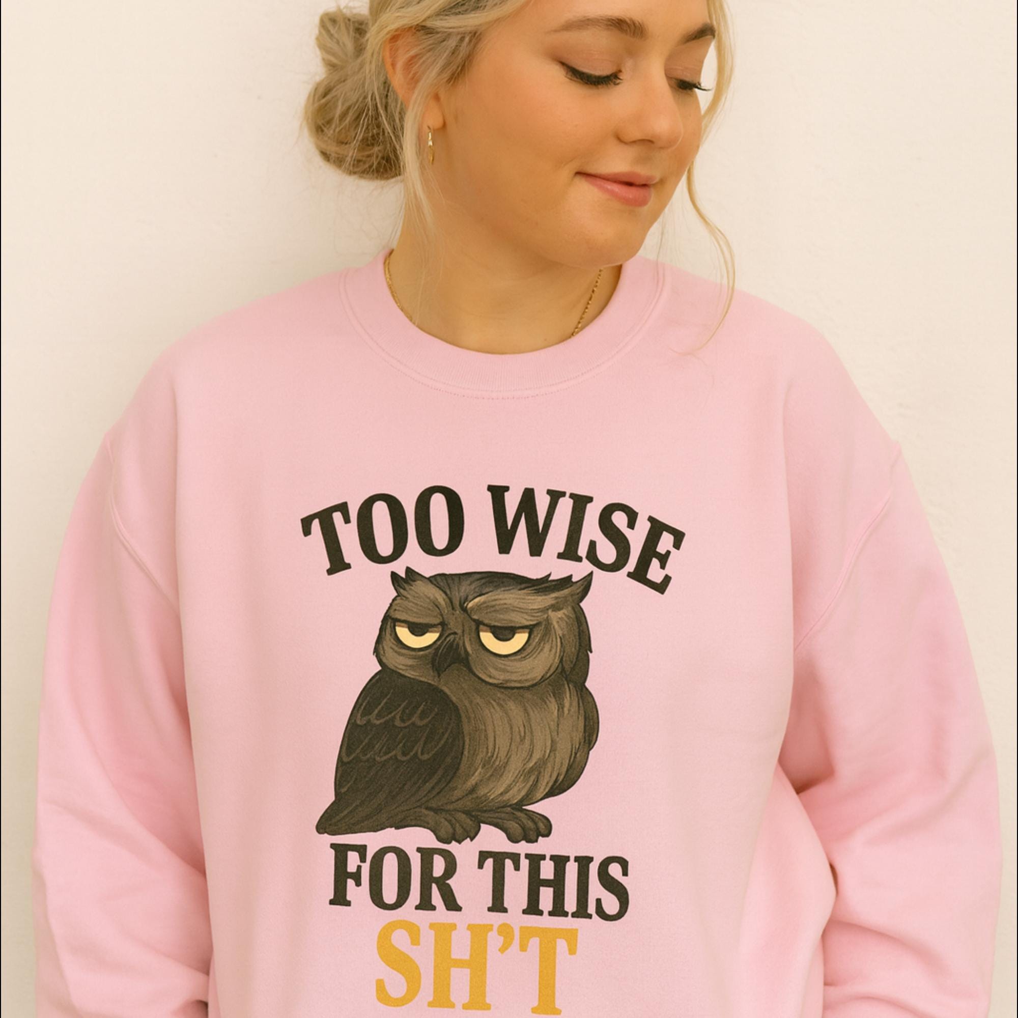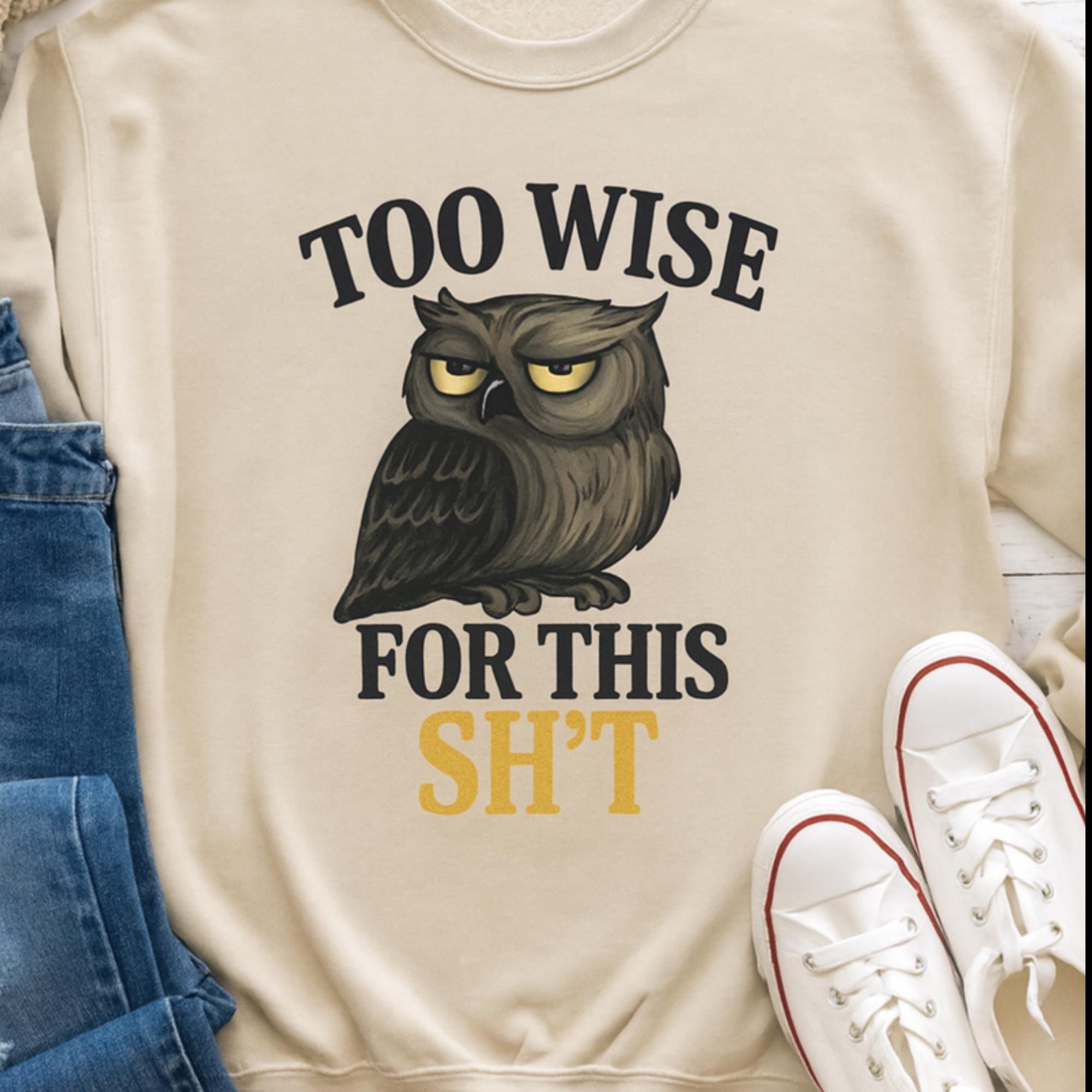 Stay cozy and make a statement with this Comfort Colors 6014 sweatshirt featuring a grumpy, wise owl and the bold phrase: “Too Wise For This Sht.”* Perfect for anyone who loves sarcasm, humor, and a comfy oversized fit.