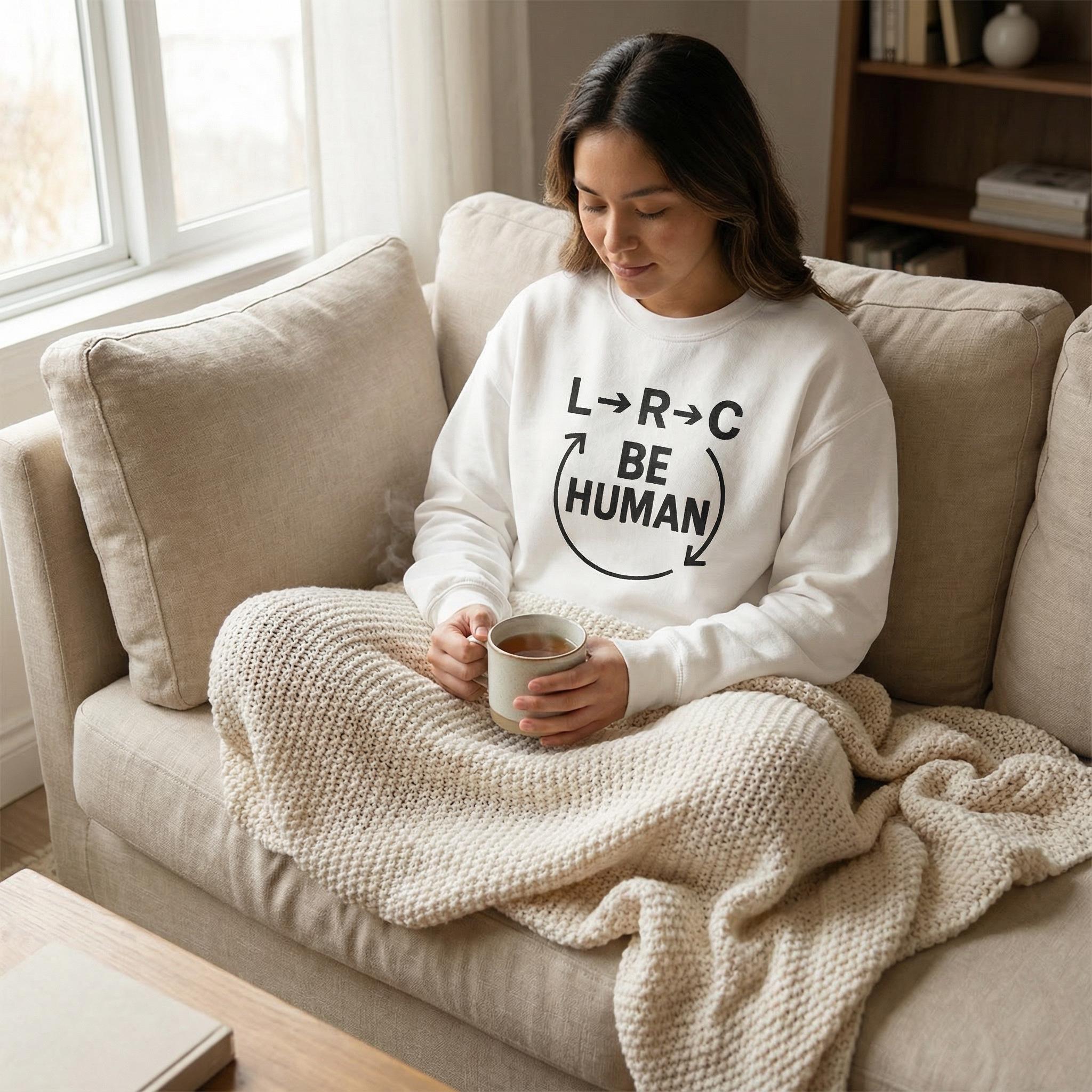 Make a statement and stay cozy with this Positive Vibes Be Human Sweatshirt unisex Gildan 18000 crewneck sweatshirt featuring the bold L→R→C BE HUMAN circle arrow design. This piece combines comfort with purpose—perfect for everyday wear, lounging, or showing off your values in style.