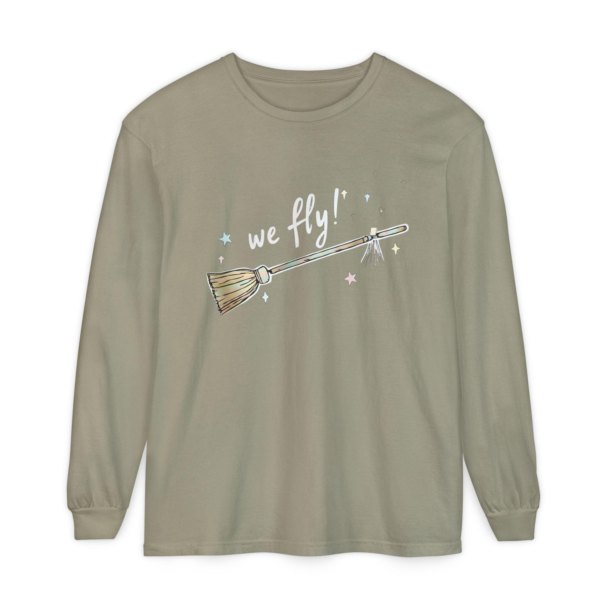 We Fly Tee: Comfort Colors Witchy Long Sleeve Halloween Shirt