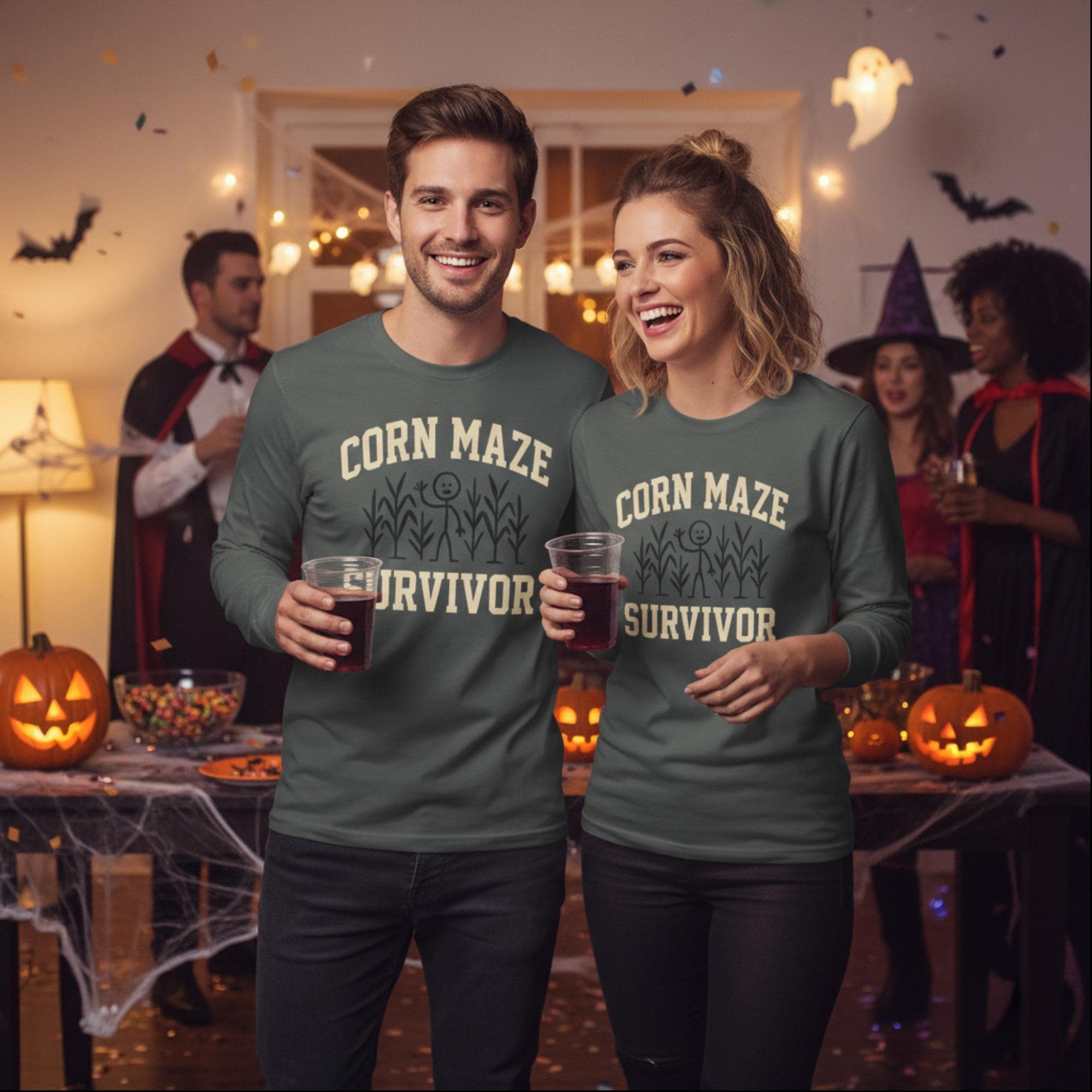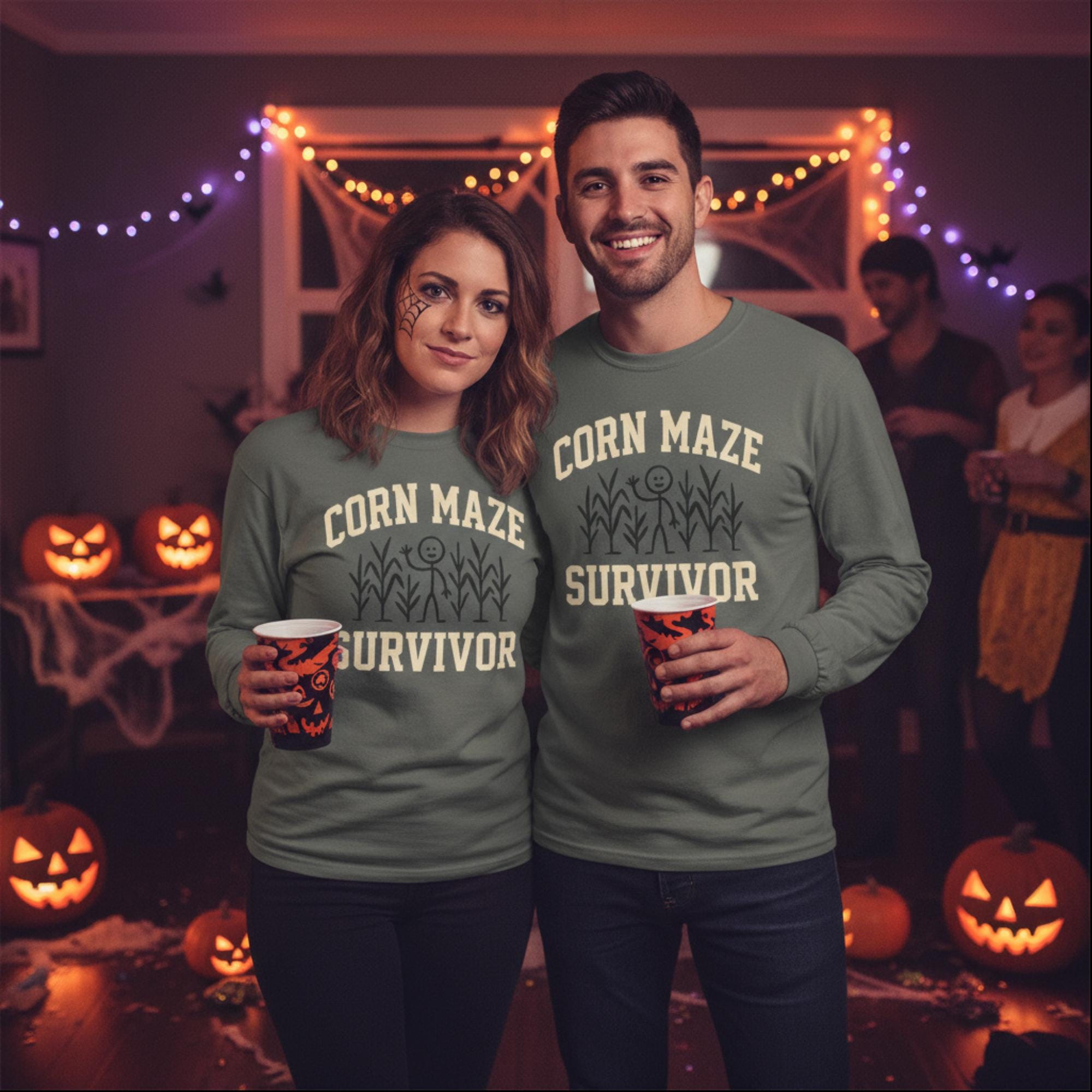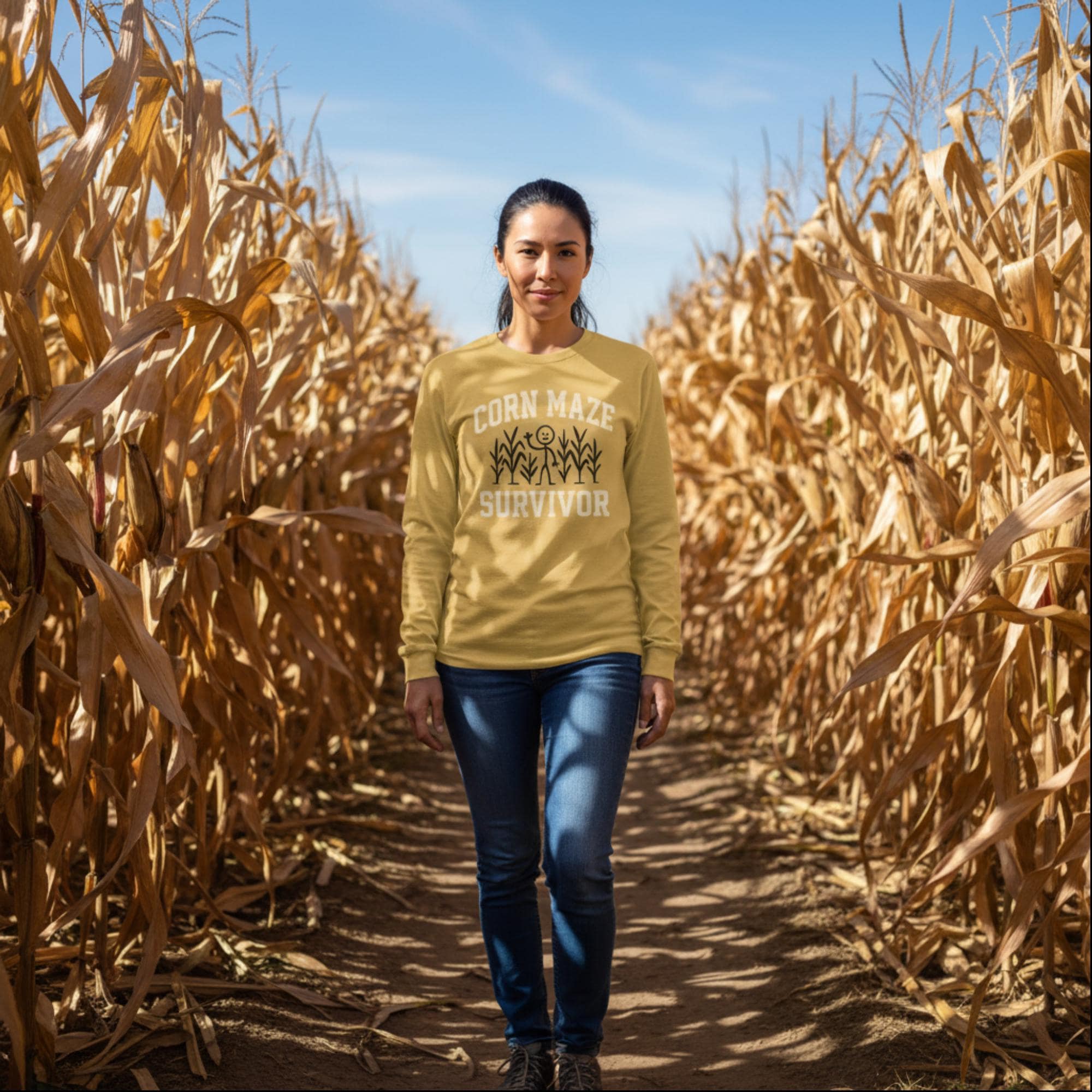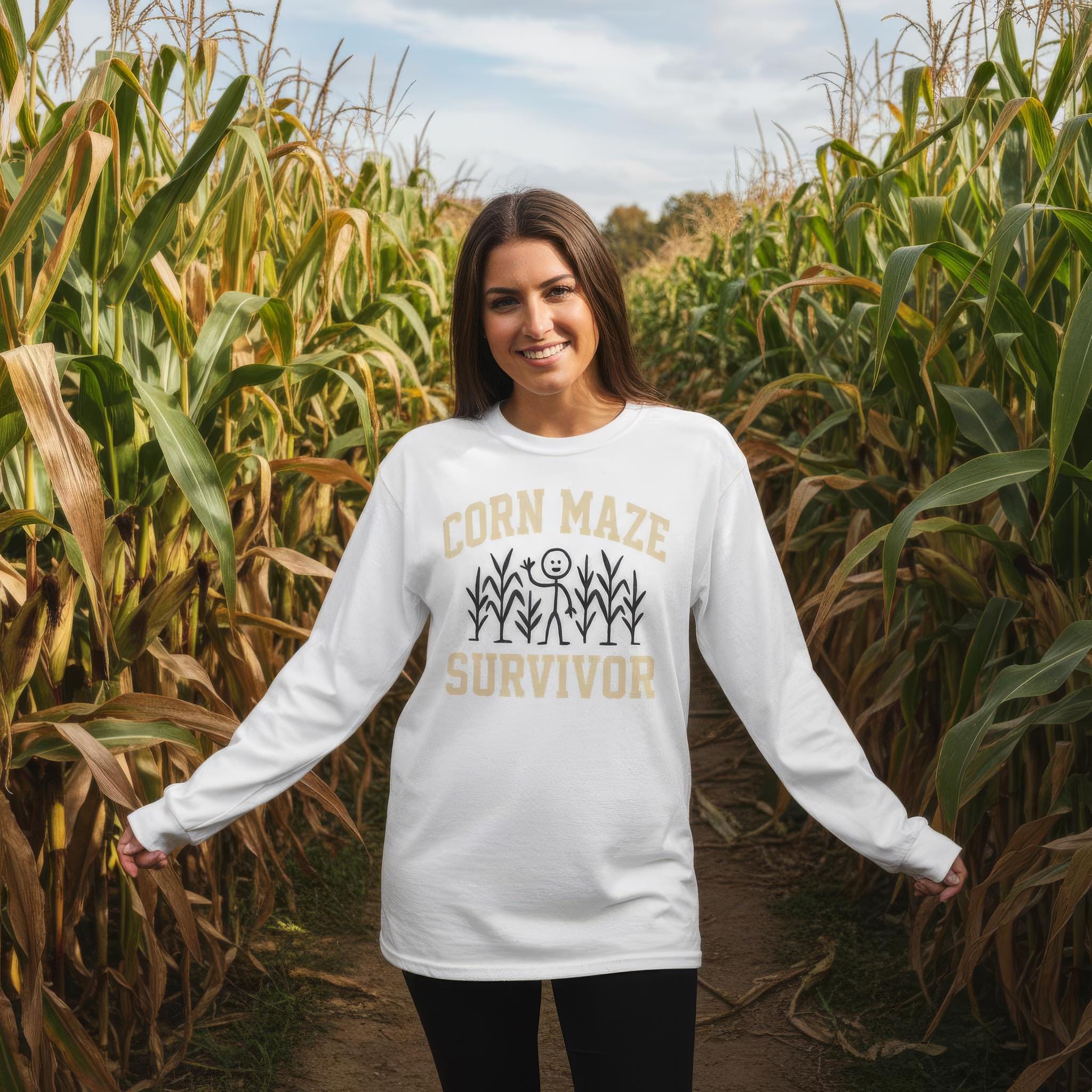 Corn Maze Survivor Long Sleeve Top Fall Festival Pumpkin Patch Tee Autumn Harvest Shirt