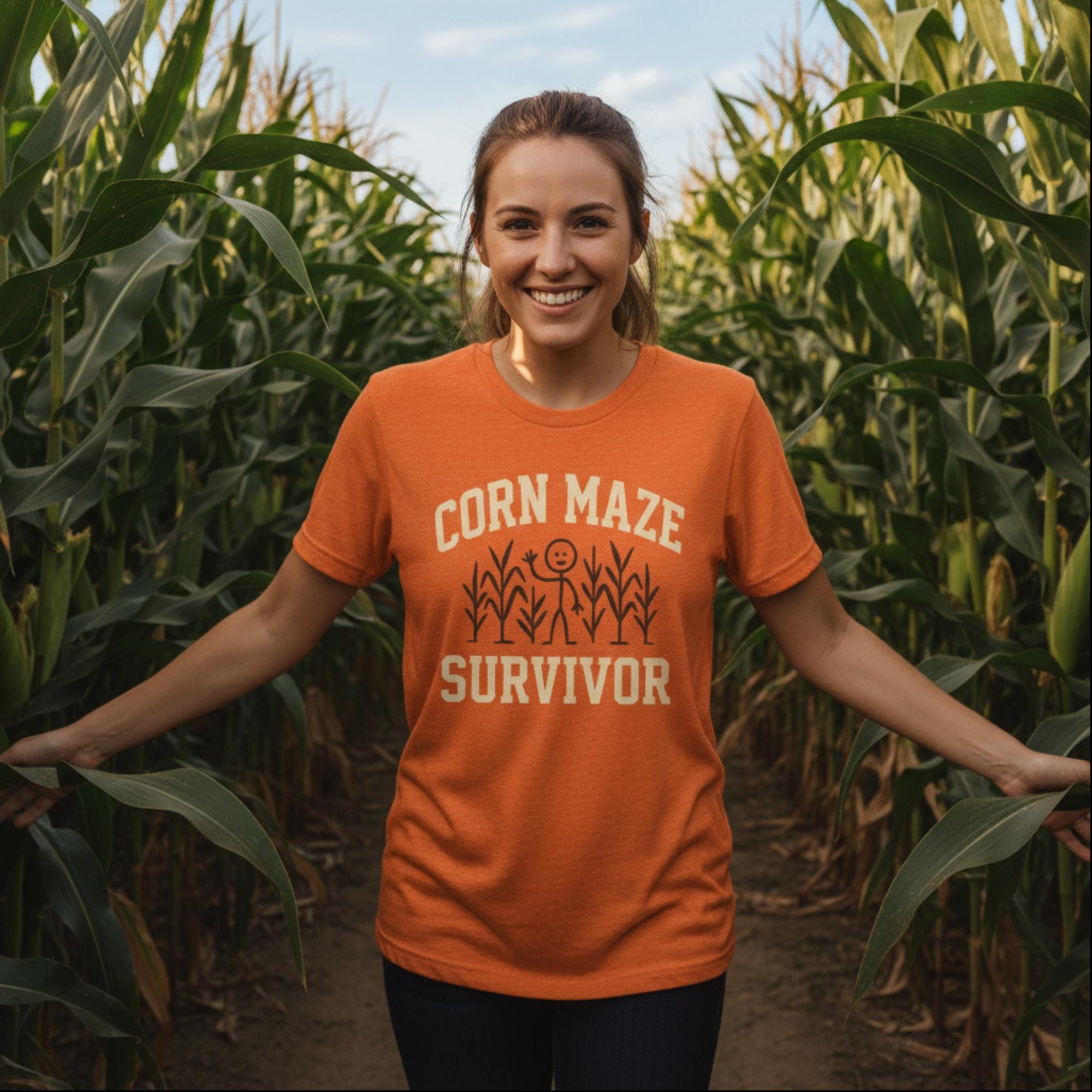 Celebrate your autumn adventures with the Corn Maze Survivor T-shirt!