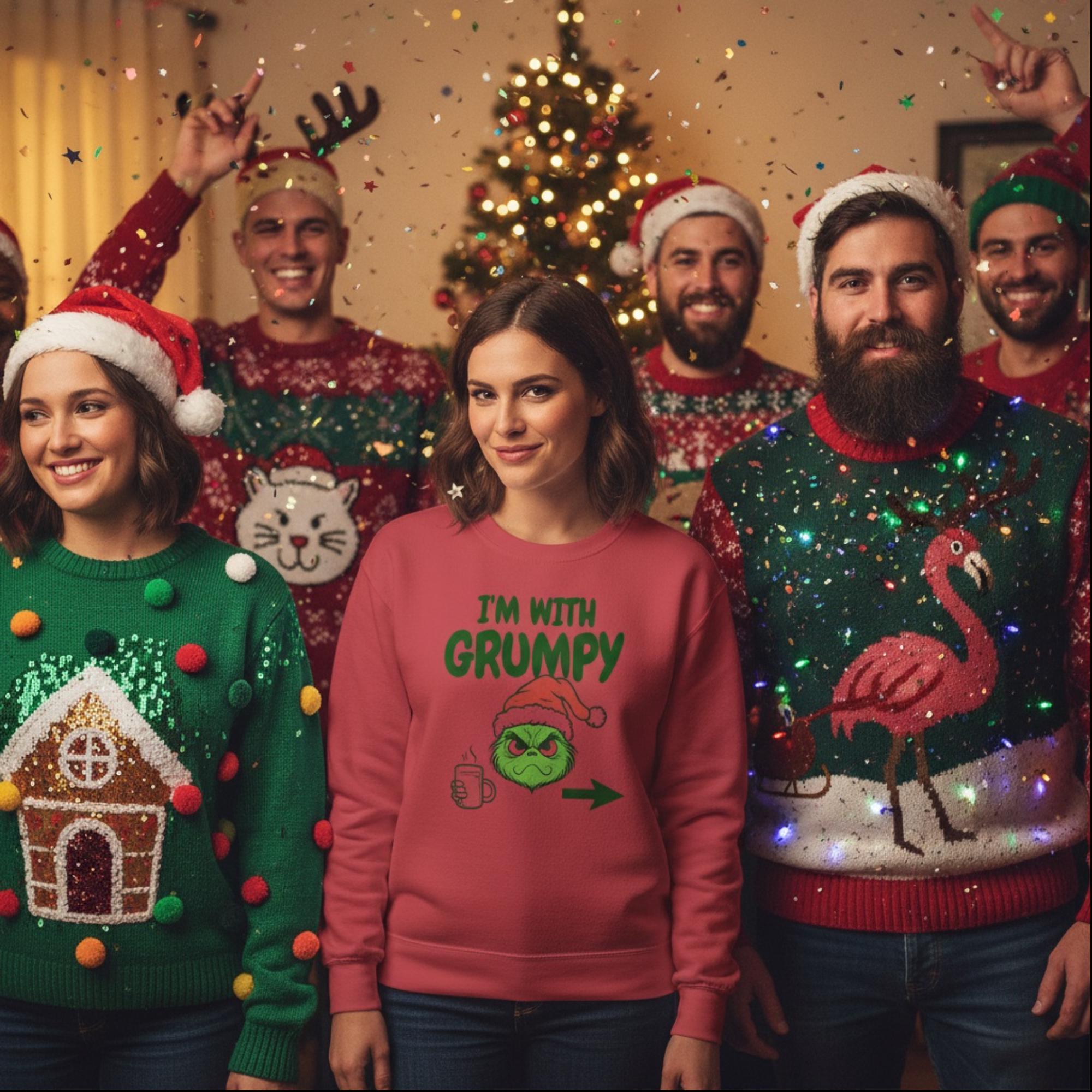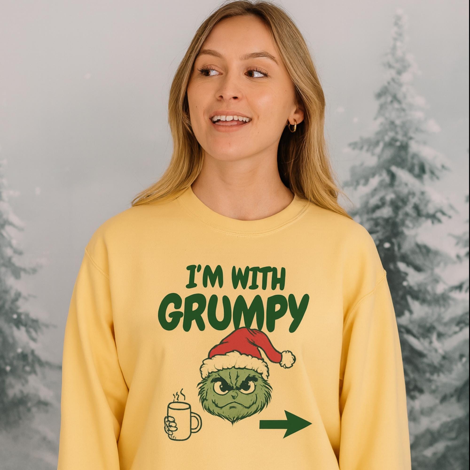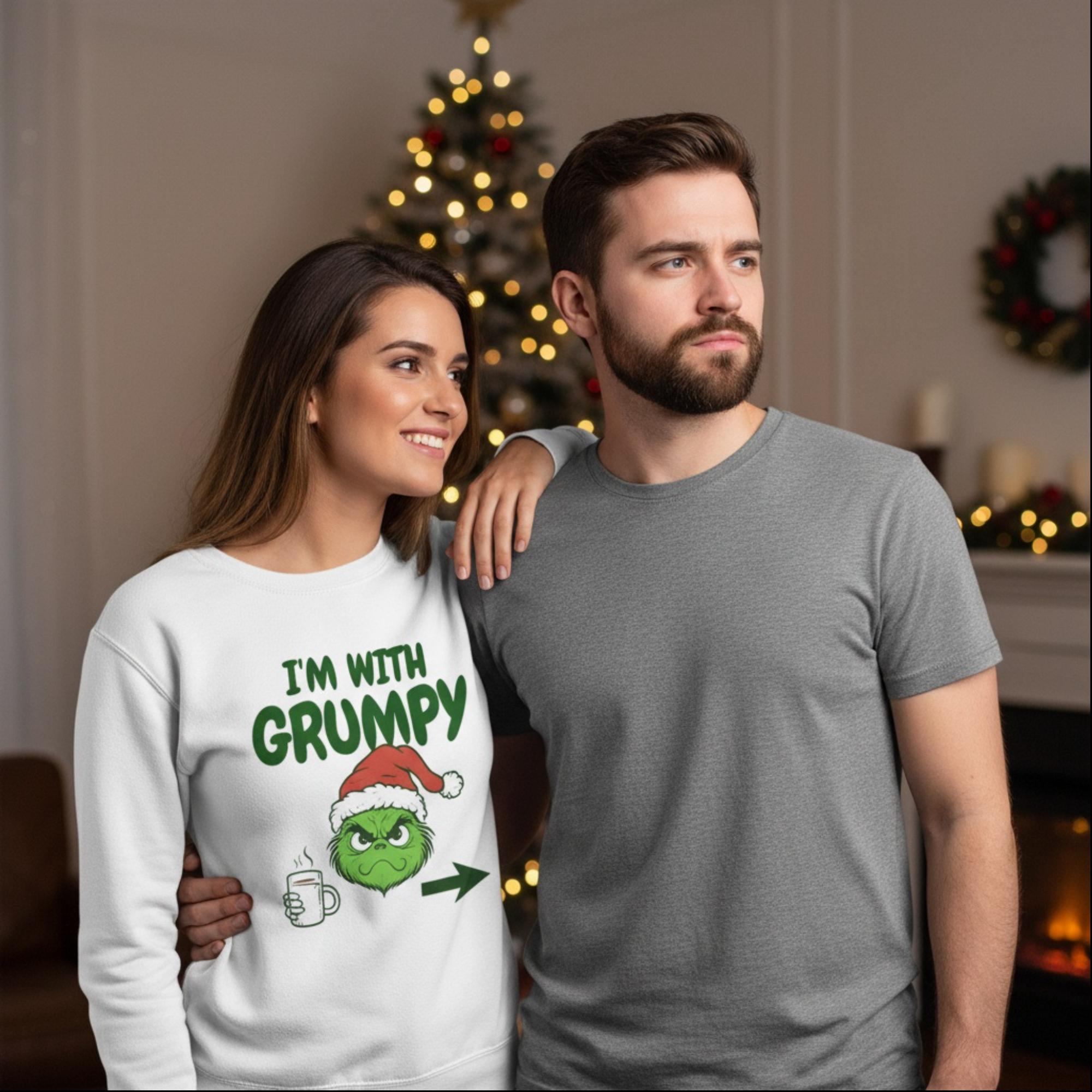 I’m With Grumpy Christmas Sweatshirt Funny Matching Holiday Shirt Comfort Colors 1566 Crewneck Grinch-Inspired Gift Unisex Xmas Top