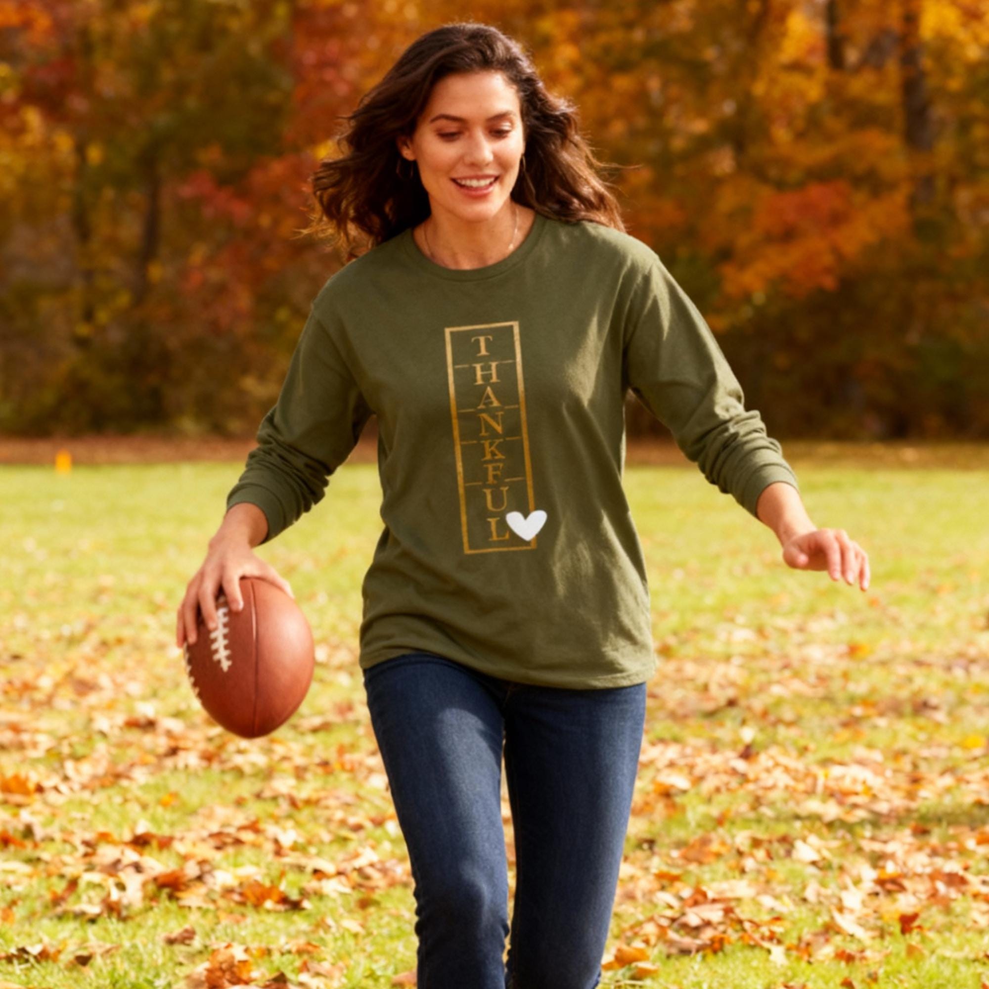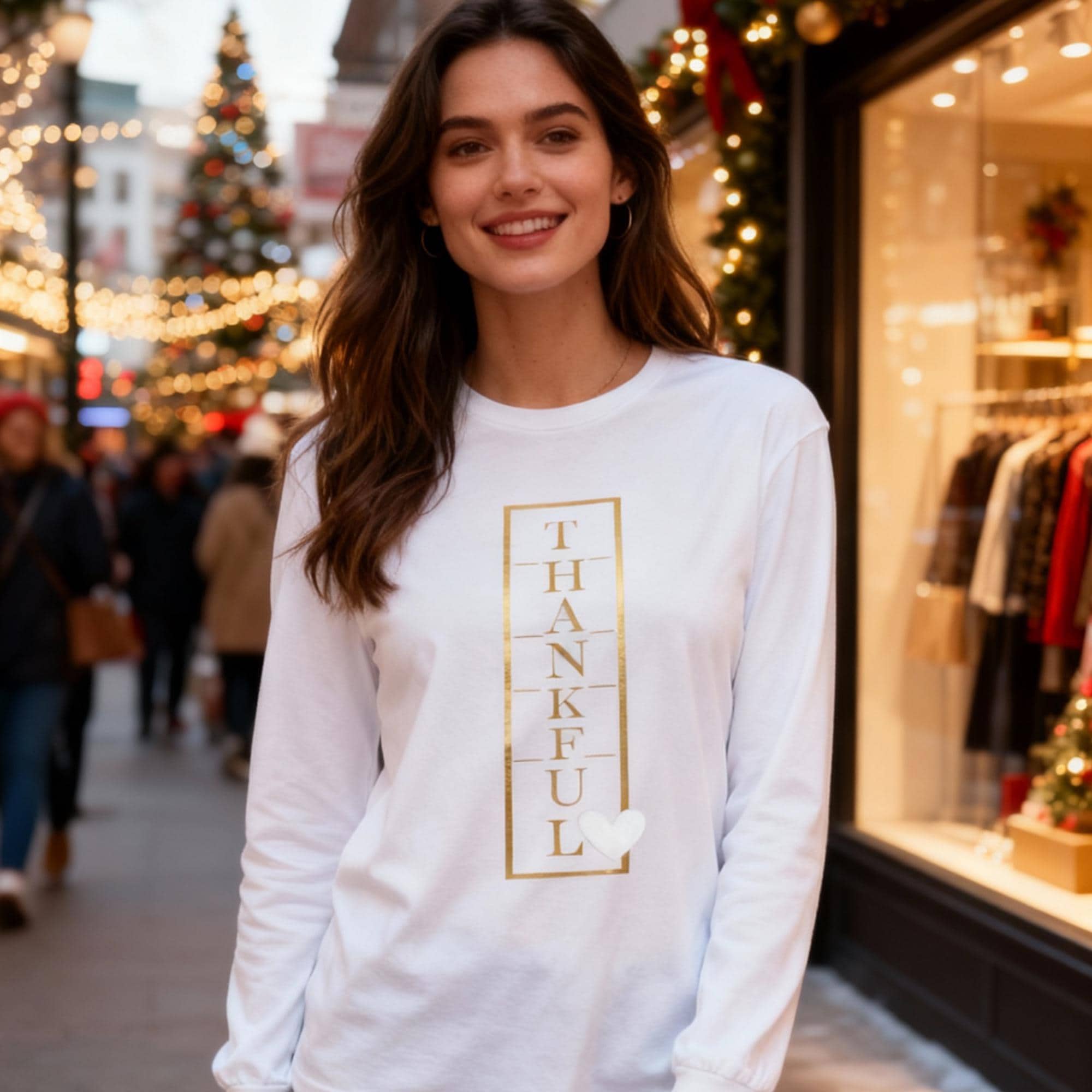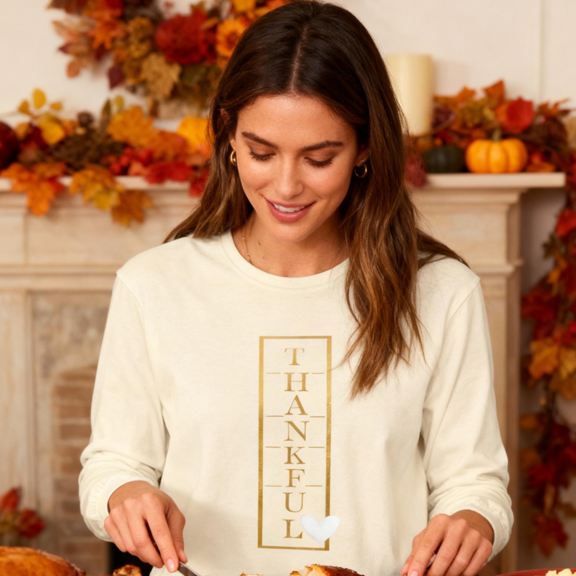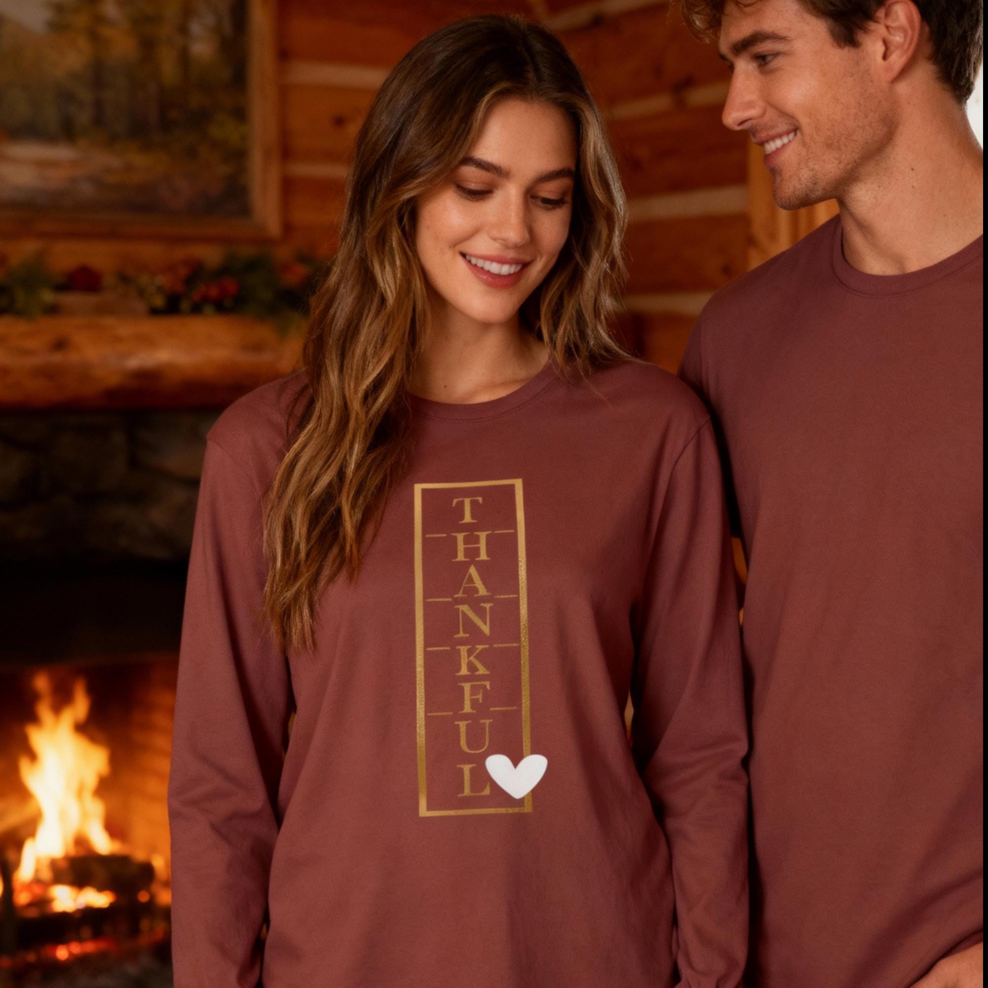 Wrap yourself in cozy comfort and a heart full of gratitude. This thankful long-sleeve tee blends soft, lived-in comfort with a minimalist, modern design — perfect for fall days, family gatherings, or as a daily reminder to stay grateful.