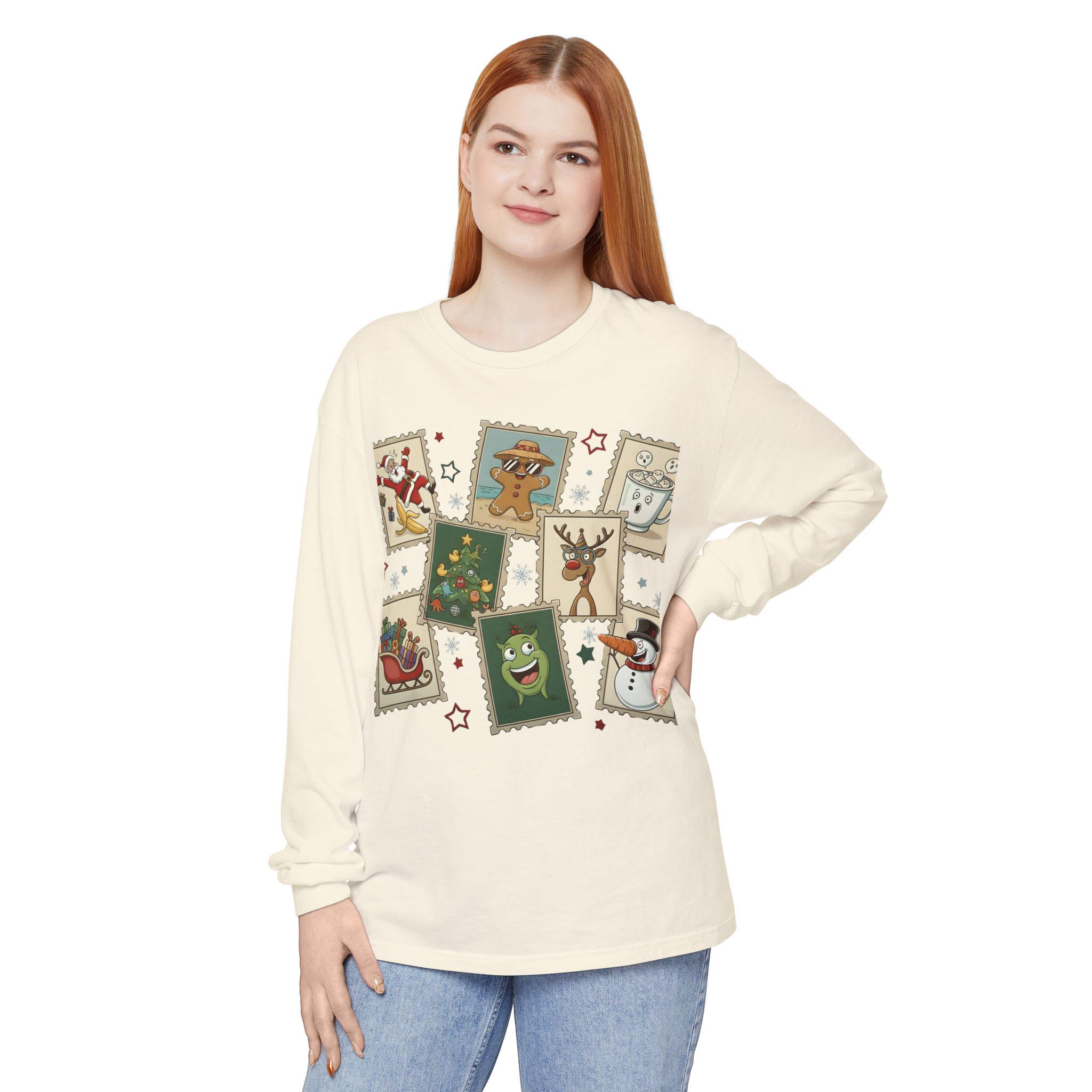 Funny Christmas Stamps Long Sleeve Tee - Comfort Colors 6014