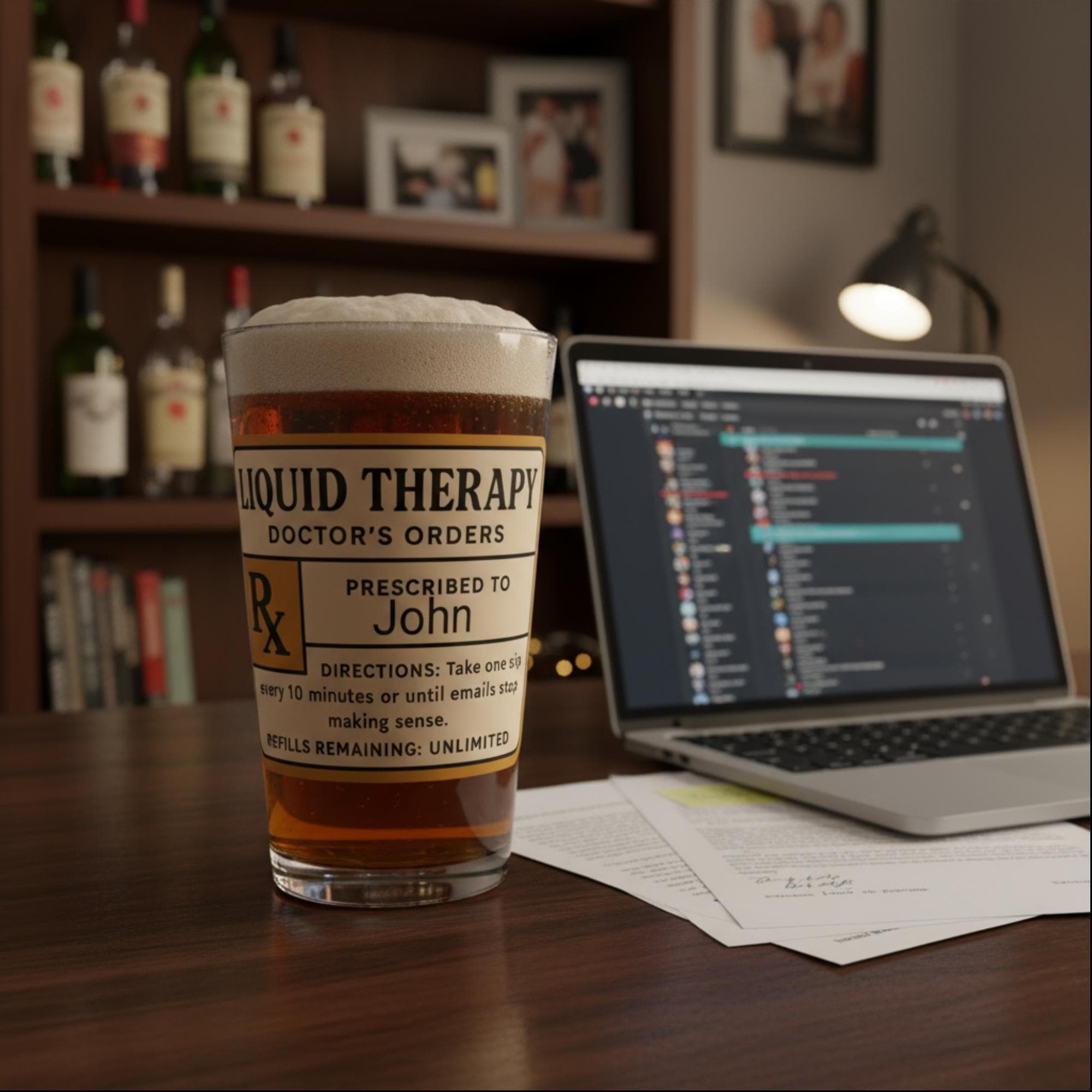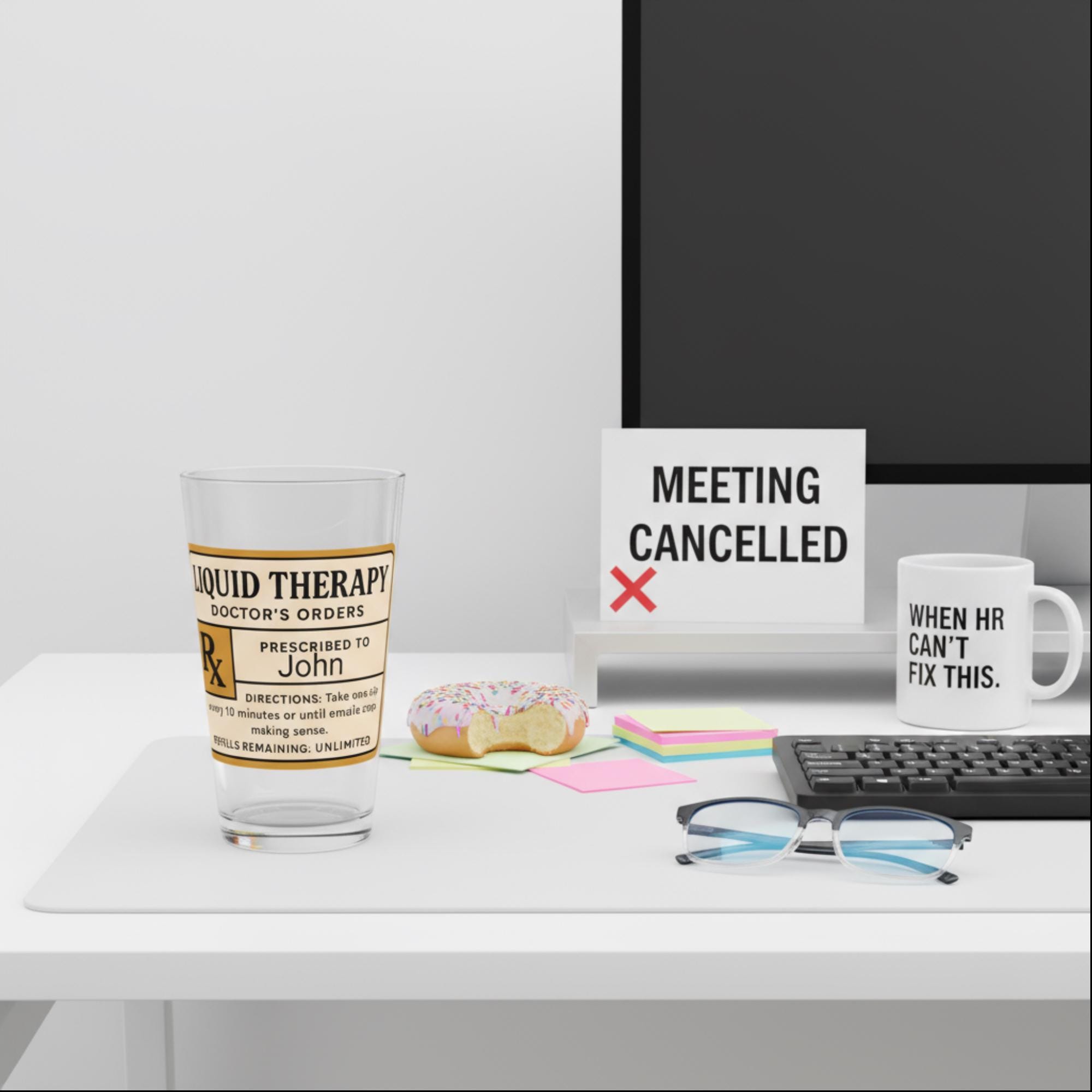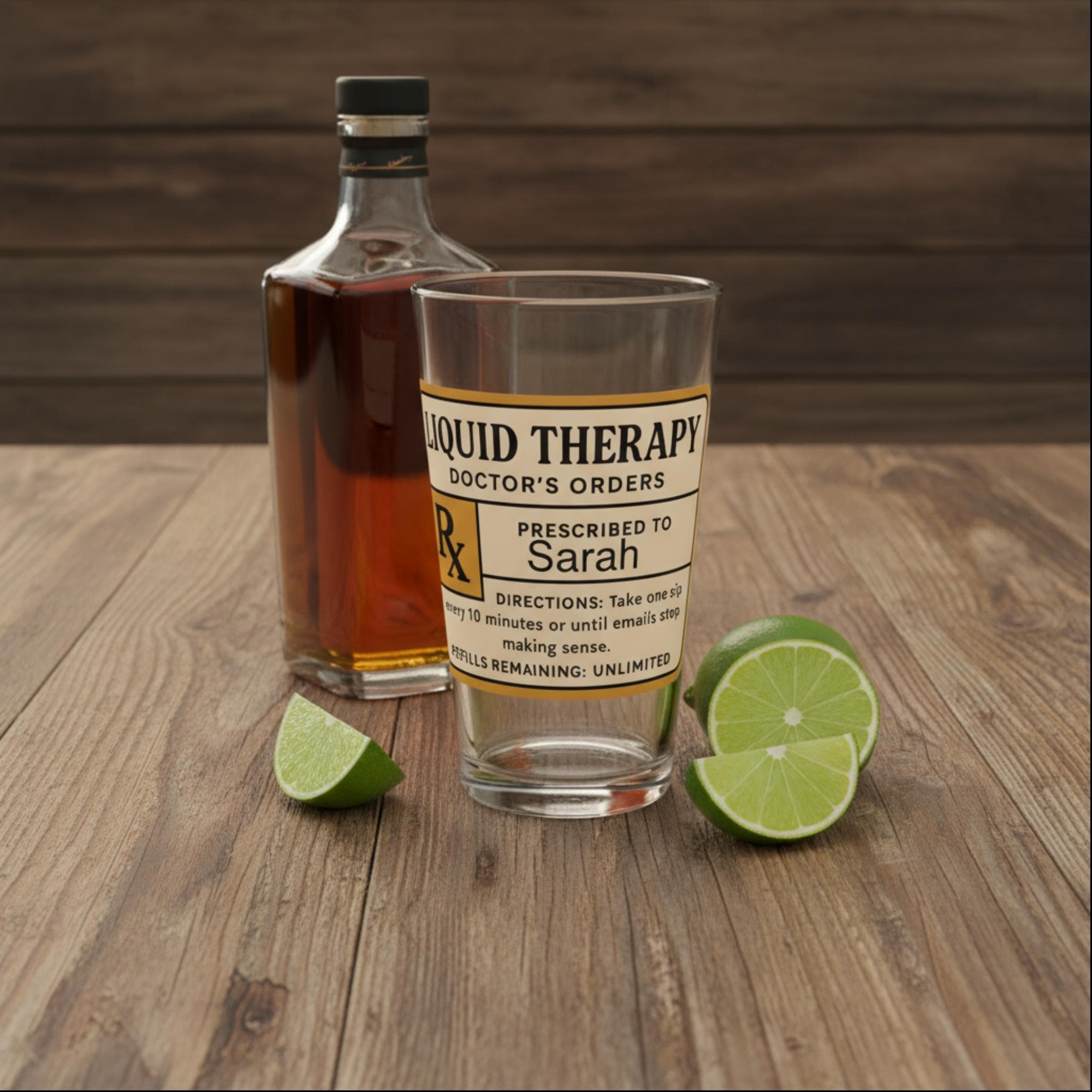 Personalized Liquid Therapy Pint Glass: Funny Prescription Beer Gift
