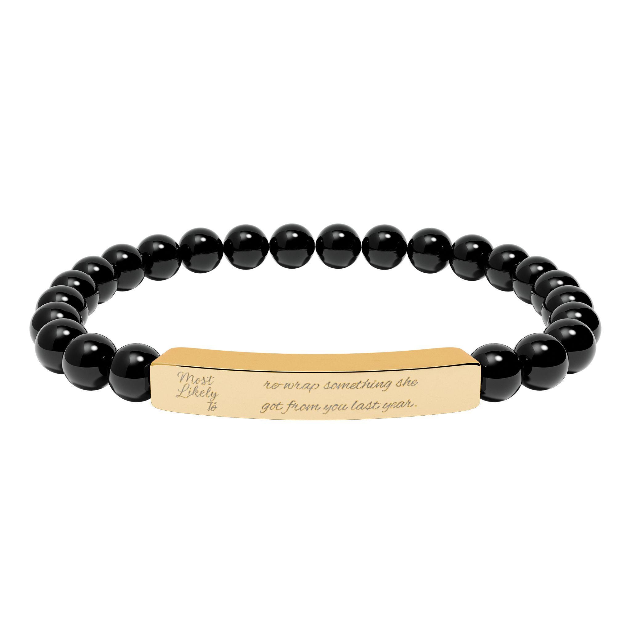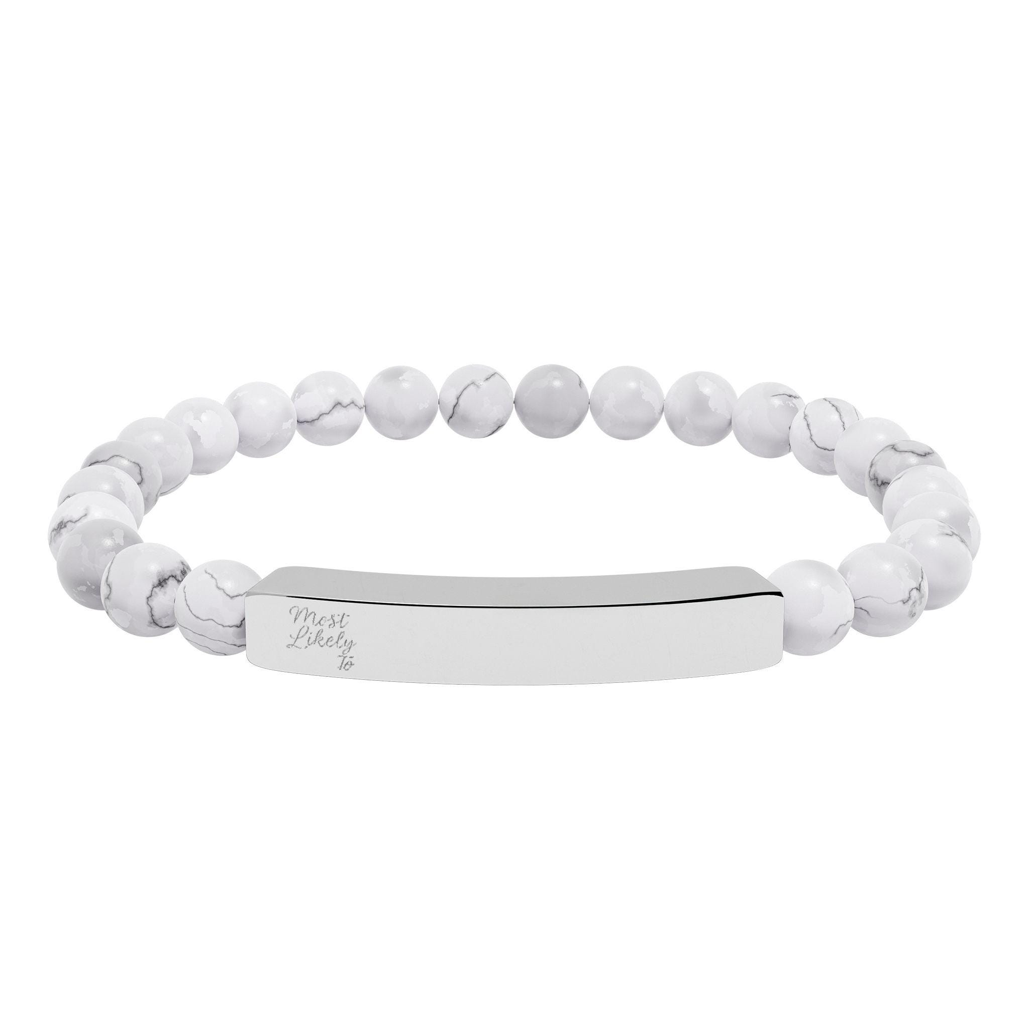 Custom Engraved Natural Stone Stretch Bar Bracelet, Boho Jewelry, Most Likely To Bracelet, Personalized bracelet, Family Christmas Jewelry