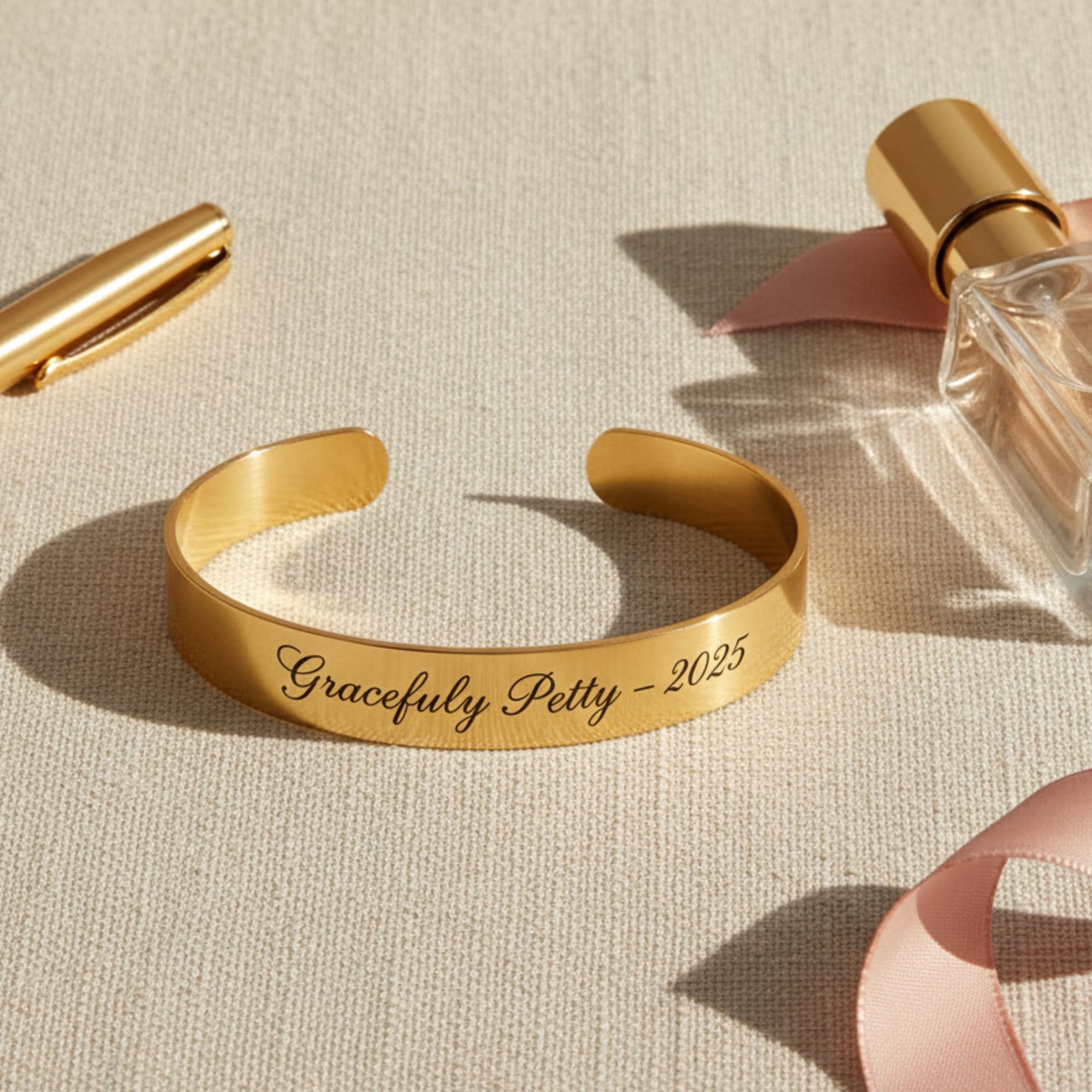 Personalized Gold Cuff Bracelet • Custom Engraved Bracelet •for Him/Her, Inspirational Quote Bracelet, Unique Keepsake