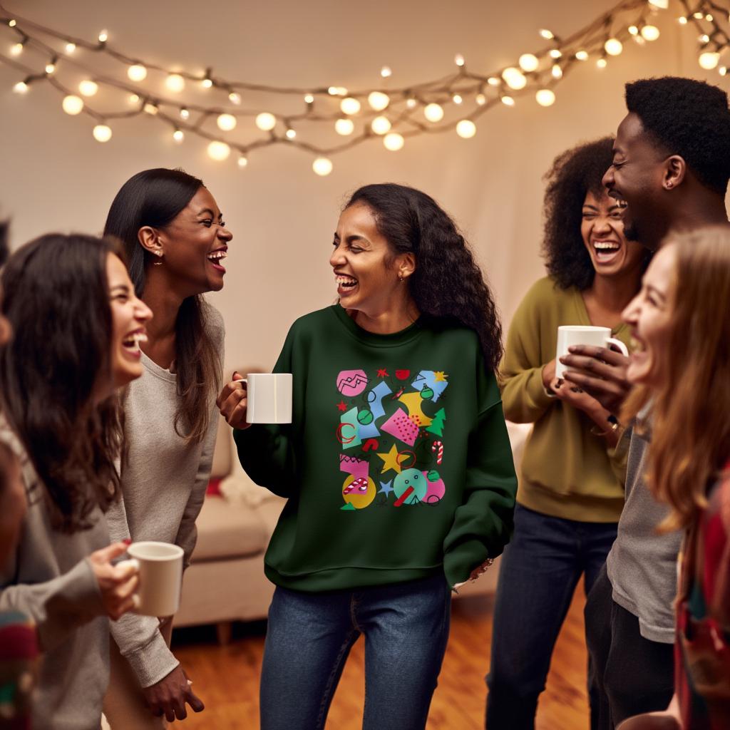 Printed on the Gildan 18000 Heavy Blend sweatshirt, loved for its soft feel, cozy interior, and relaxed fit — ideal for festive parties, cookie baking, or gifting.