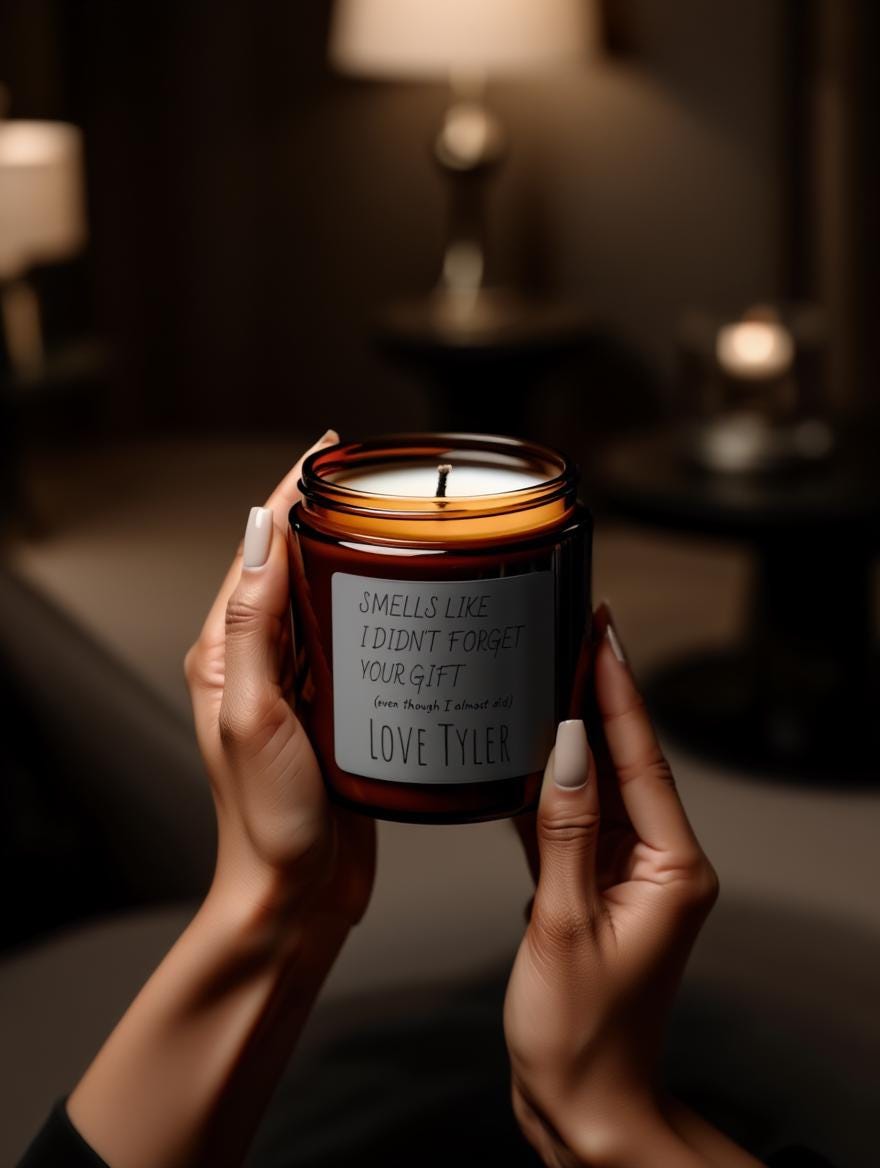 This candle = humor + aesthetics + personalization.