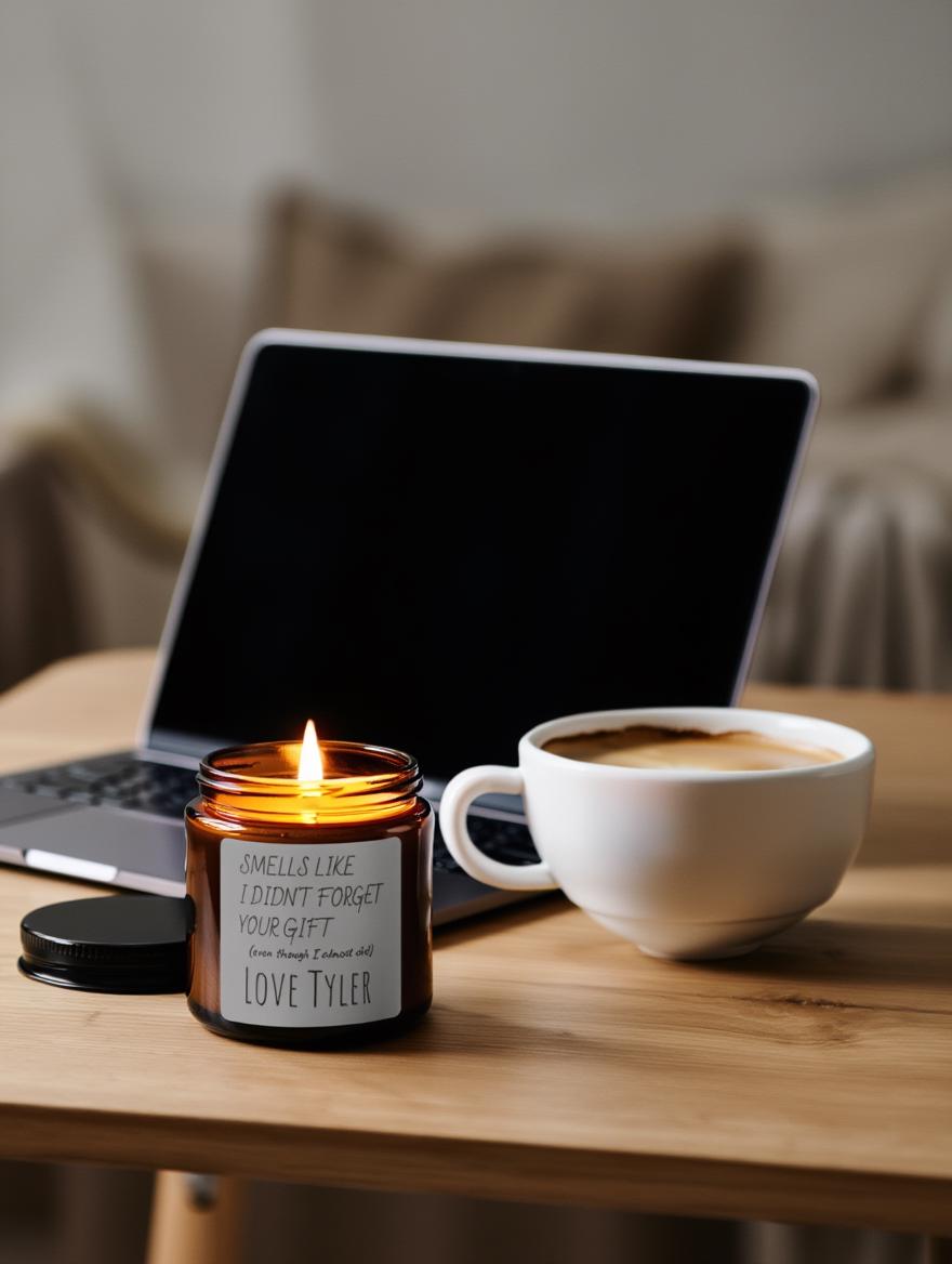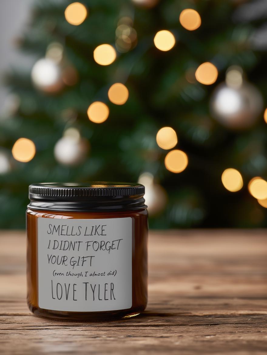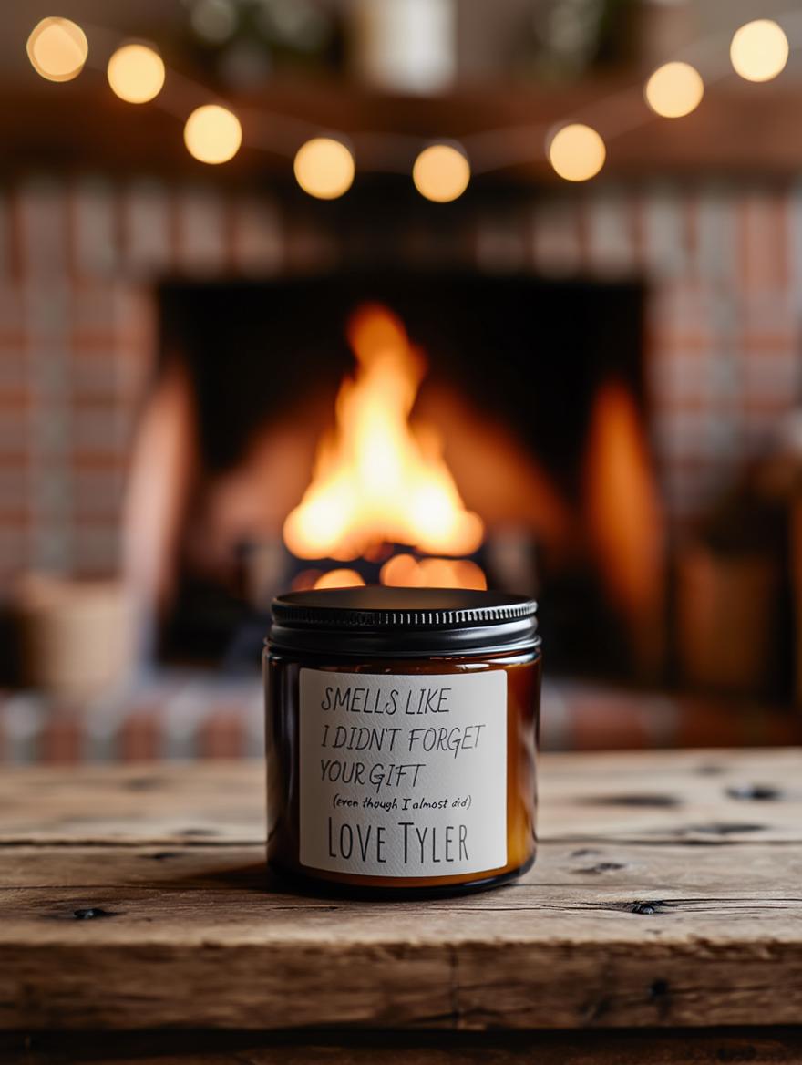 Soy Candle with Humorous Gift Message, Eco-Friendly Amber Jar, Festive Aromatherapy Candle for Housewarming and Holidays