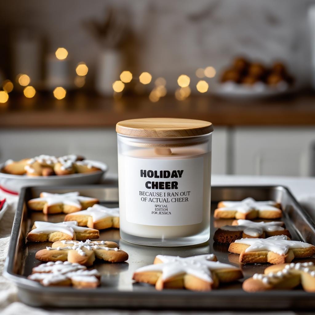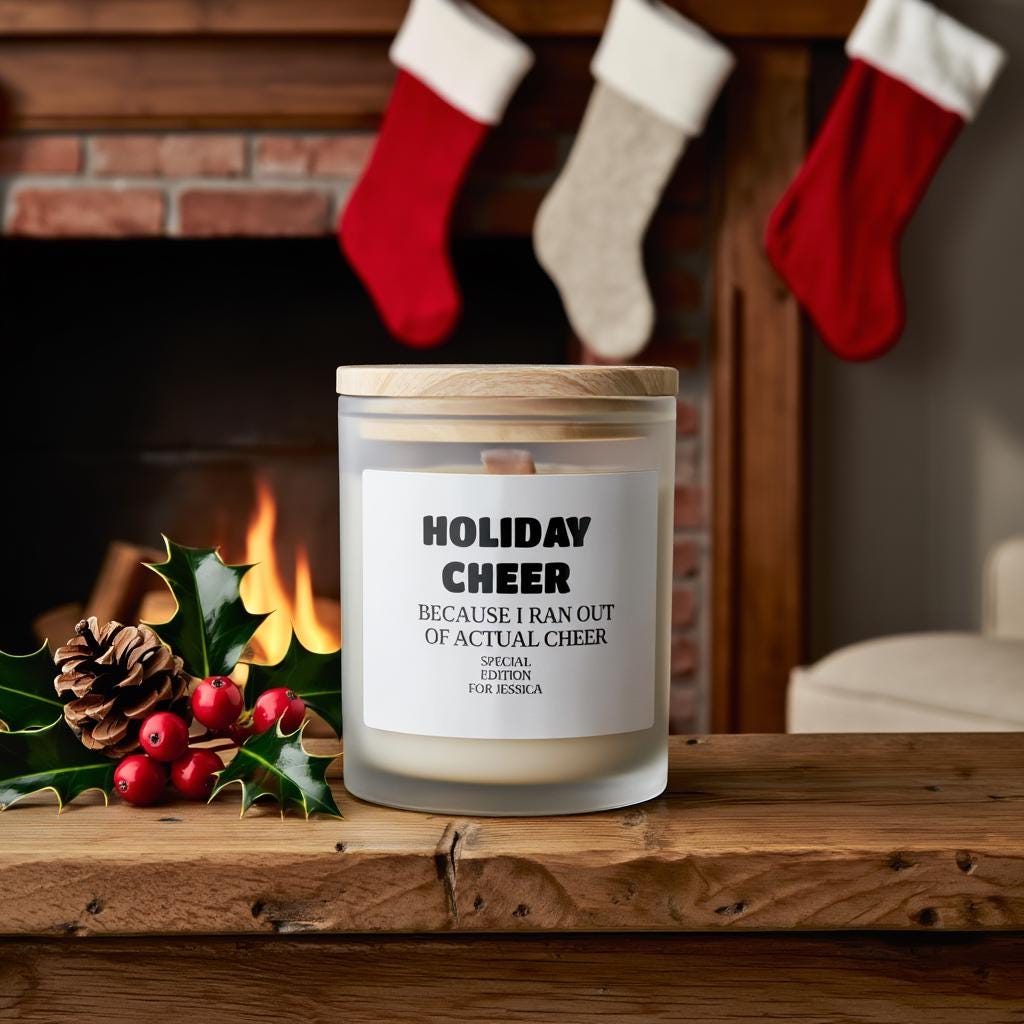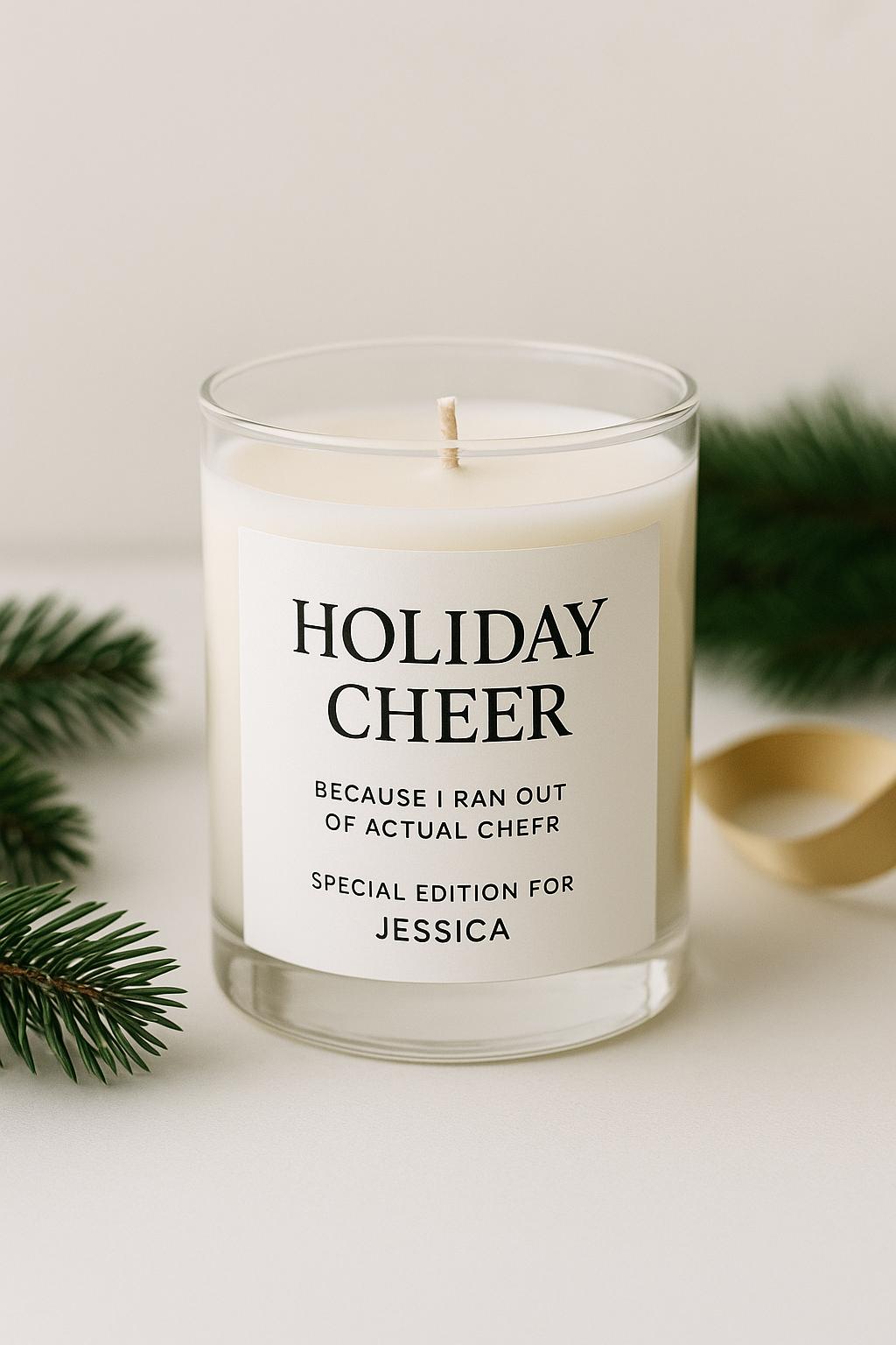 Holiday Cheer Candle • Funny Christmas Candle • Personalized Gift • Sarcastic Holiday Humor • Custom Name Label