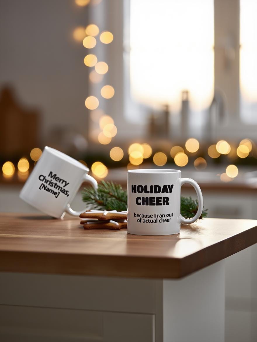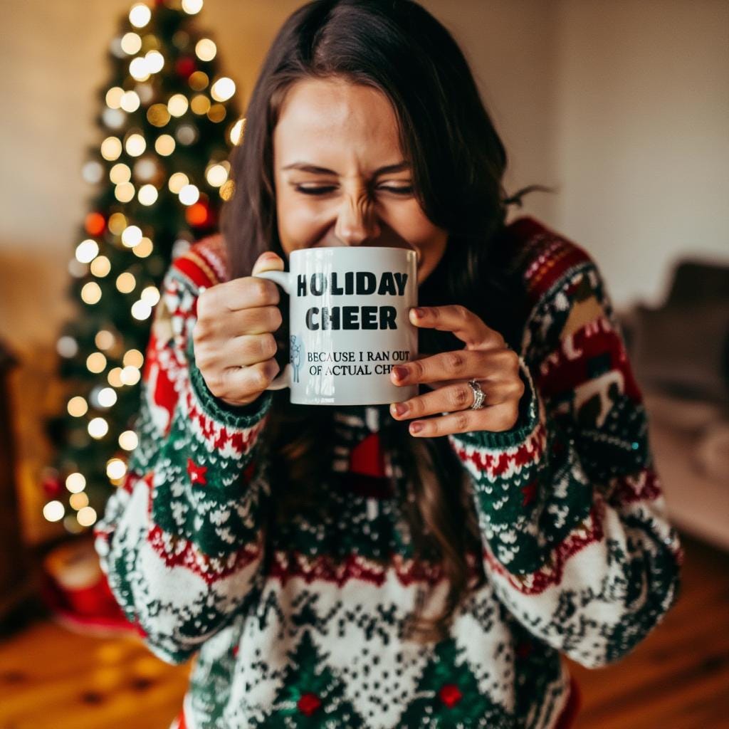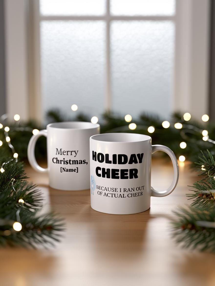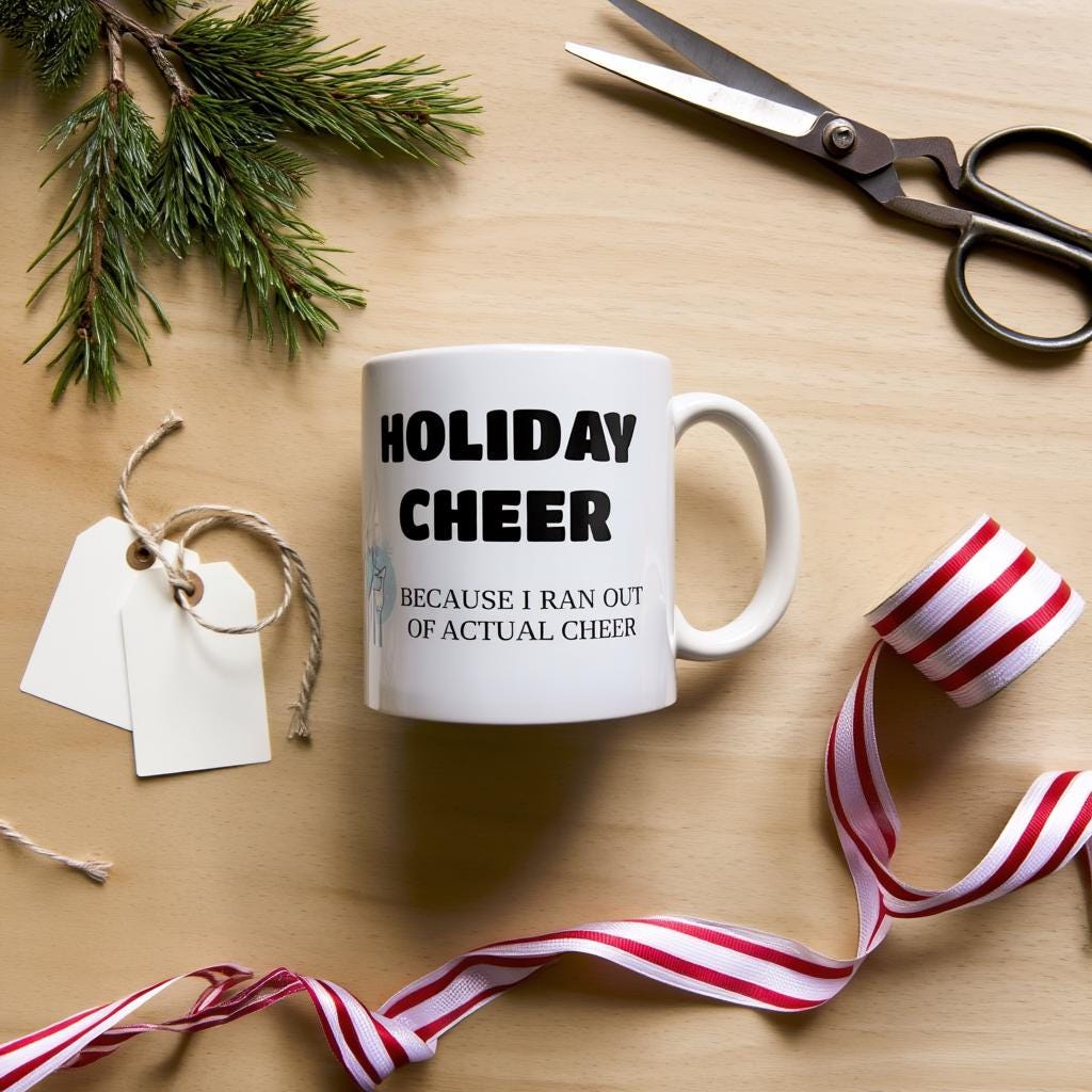 Holiday Cheer Funny Christmas Mug Sarcastic Holiday Coffee Cup • Custom Name