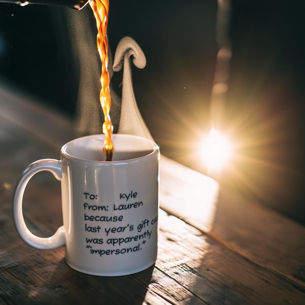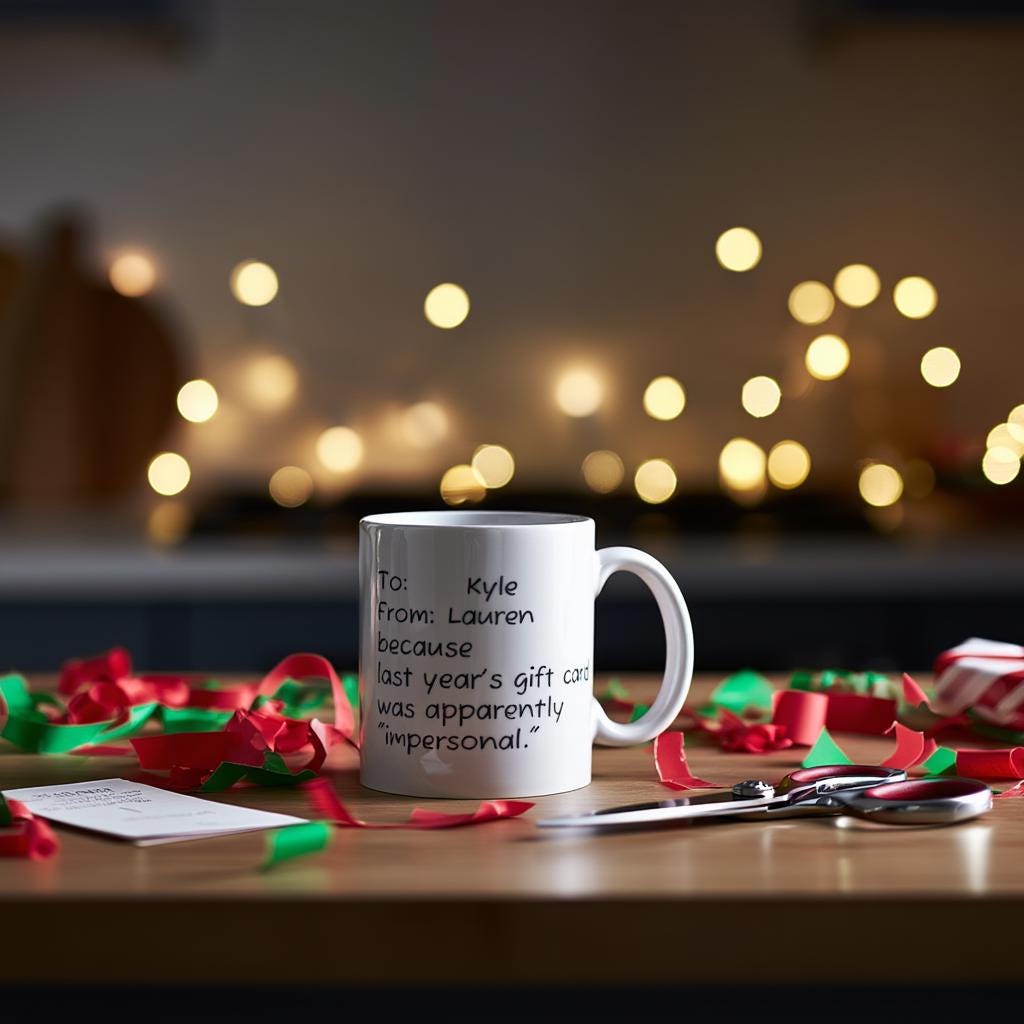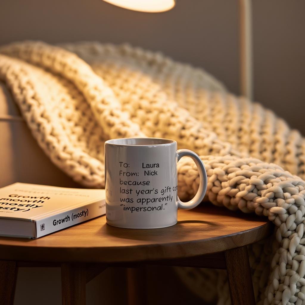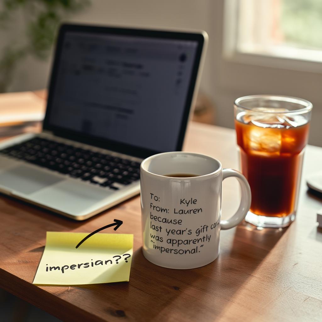 To: {Name} “From: {Name} — because last year’s gift card was apparently ‘impersonal.’”