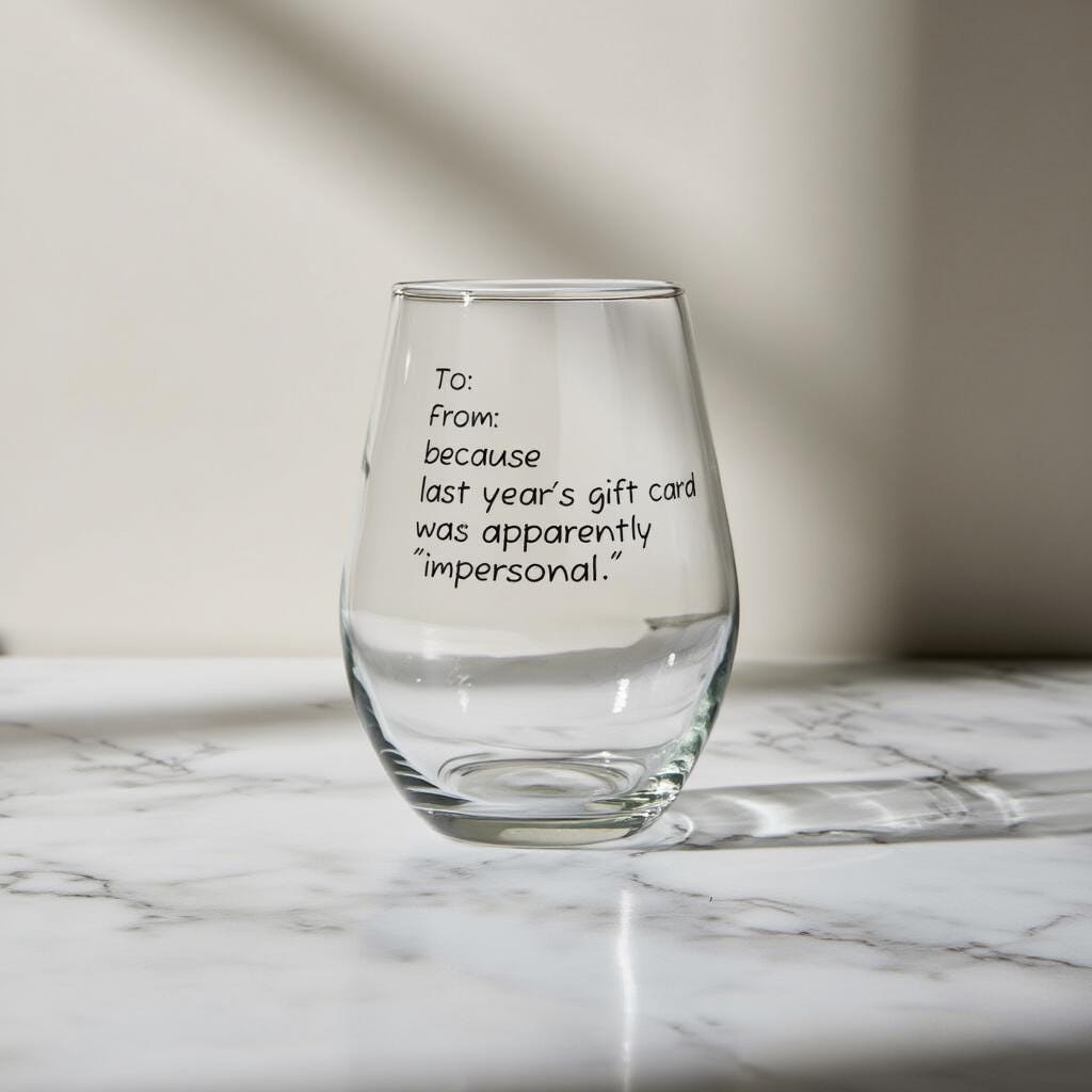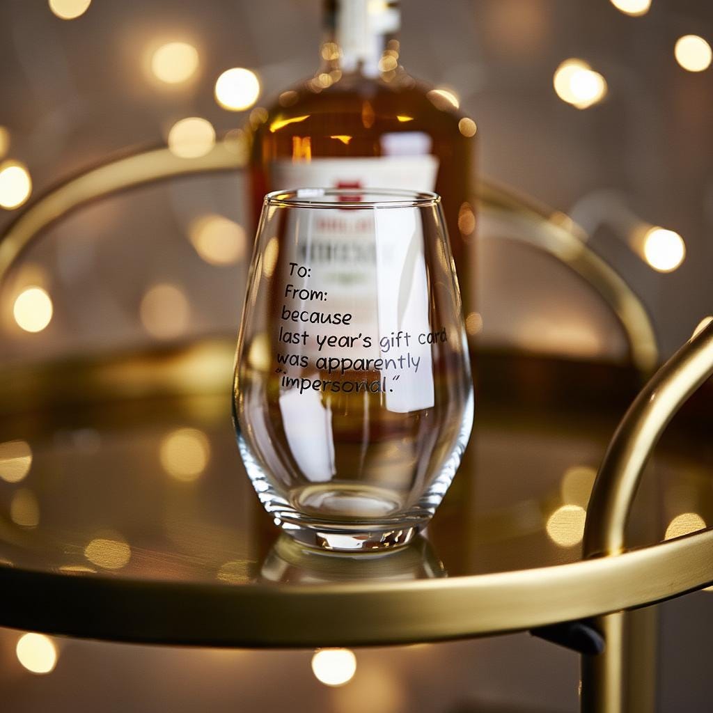 To: {Name} “From: {Name} — because last year’s gift card was apparently ‘impersonal.’”