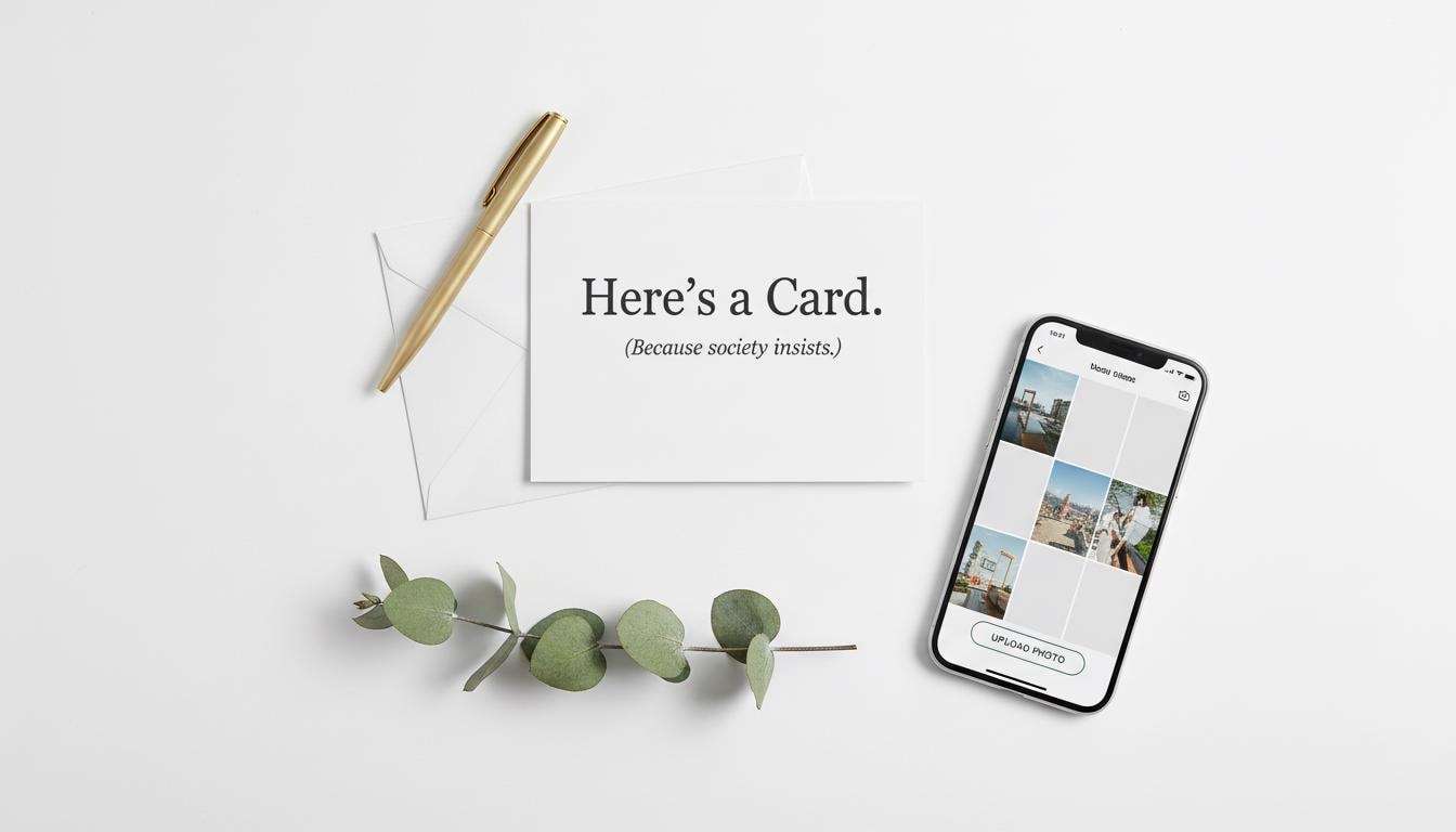 Snarky Greeting Card • “Here’s a Card” Funny Minimalist Card • Personalized Photo or Text Inside • Unfiltered Confidence Humor Card