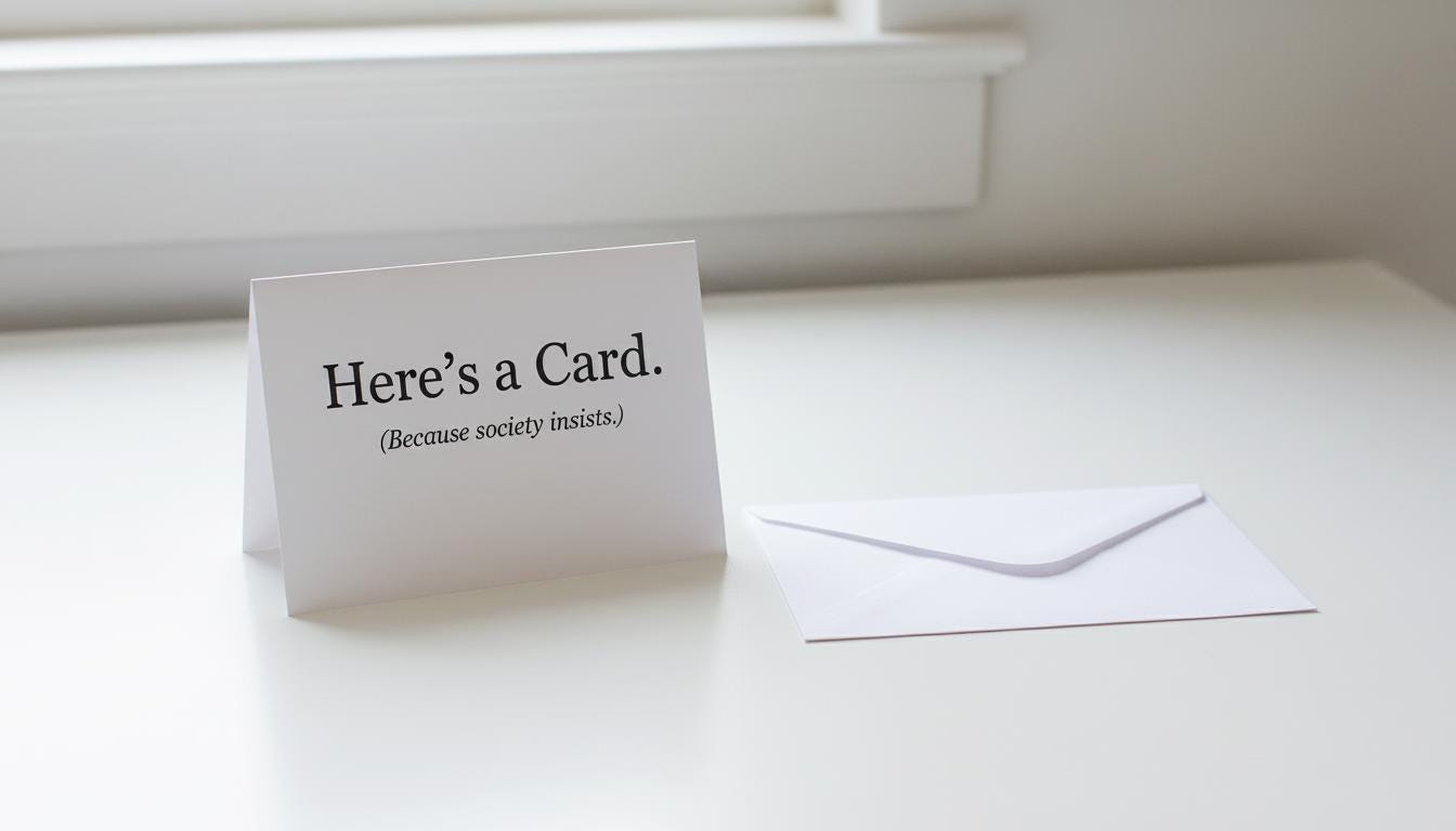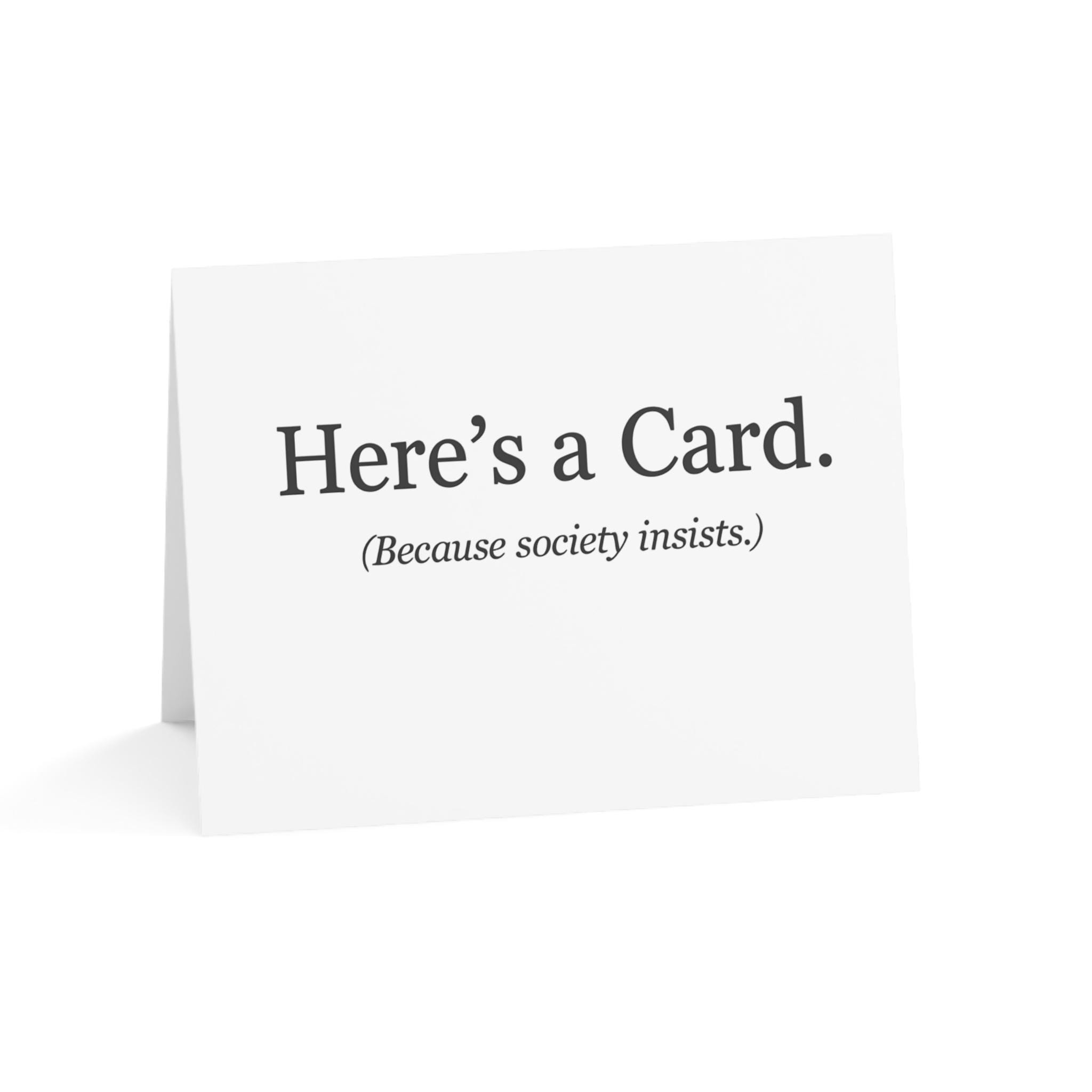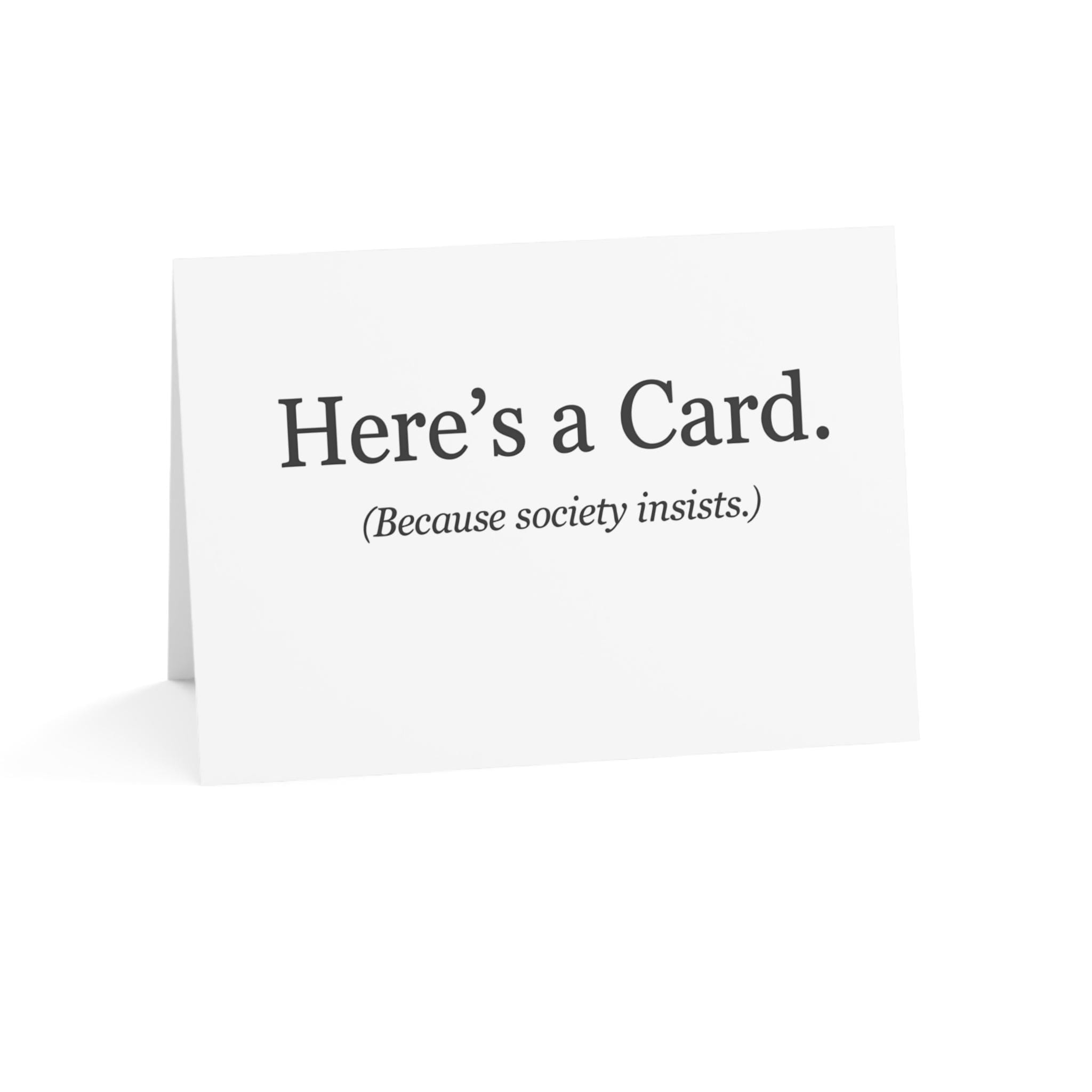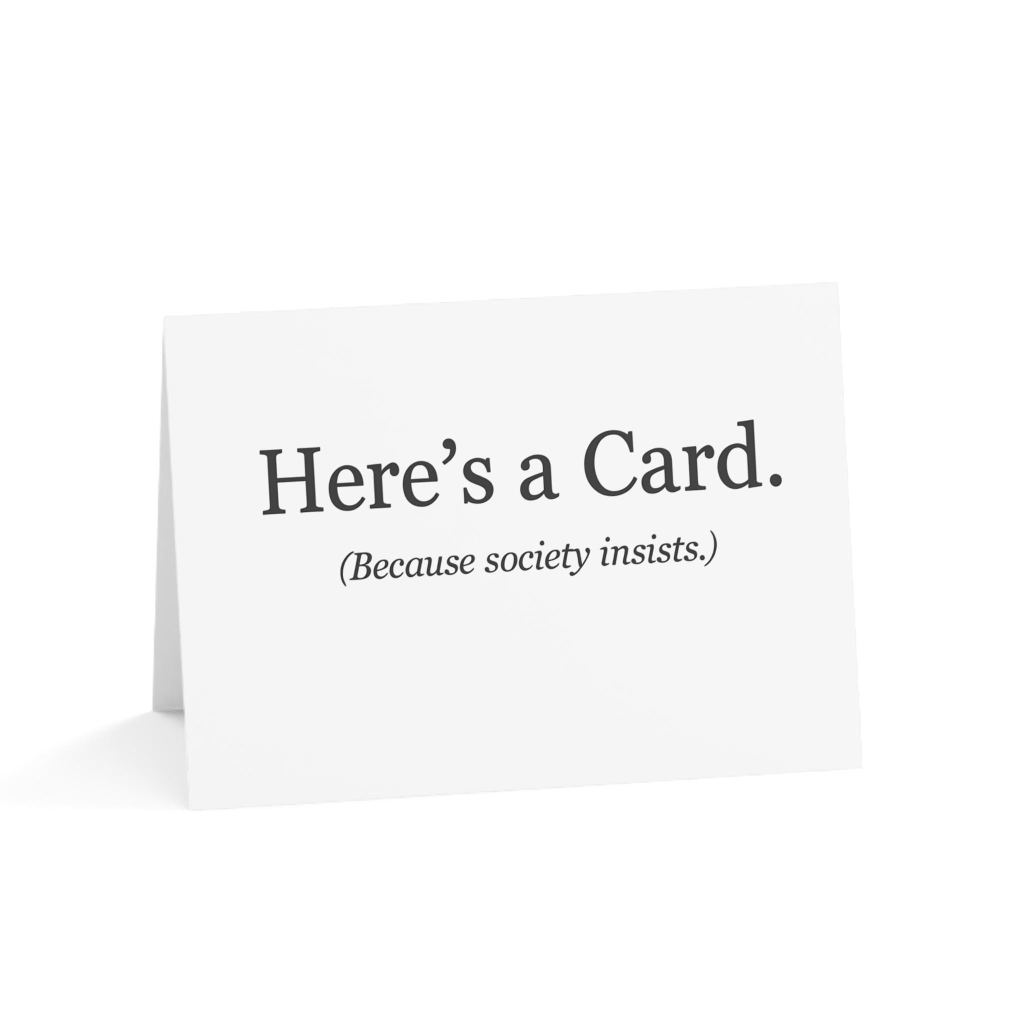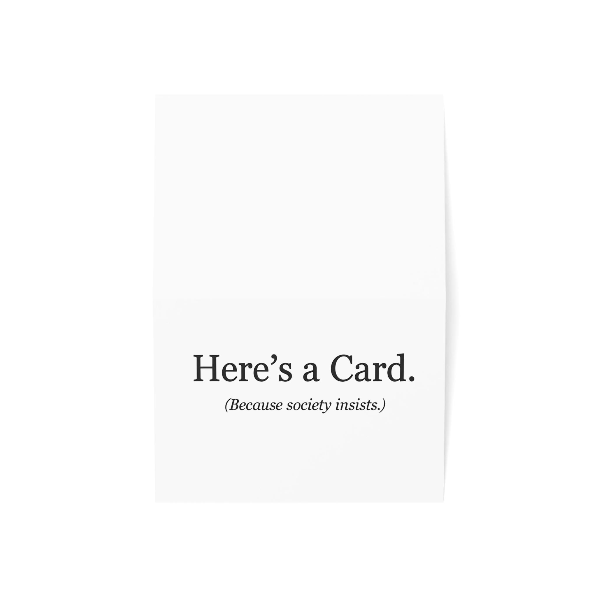 Personalize inside of card. Heres a Card Because society insists. Greeting Card | Funny Minimalist Note Card