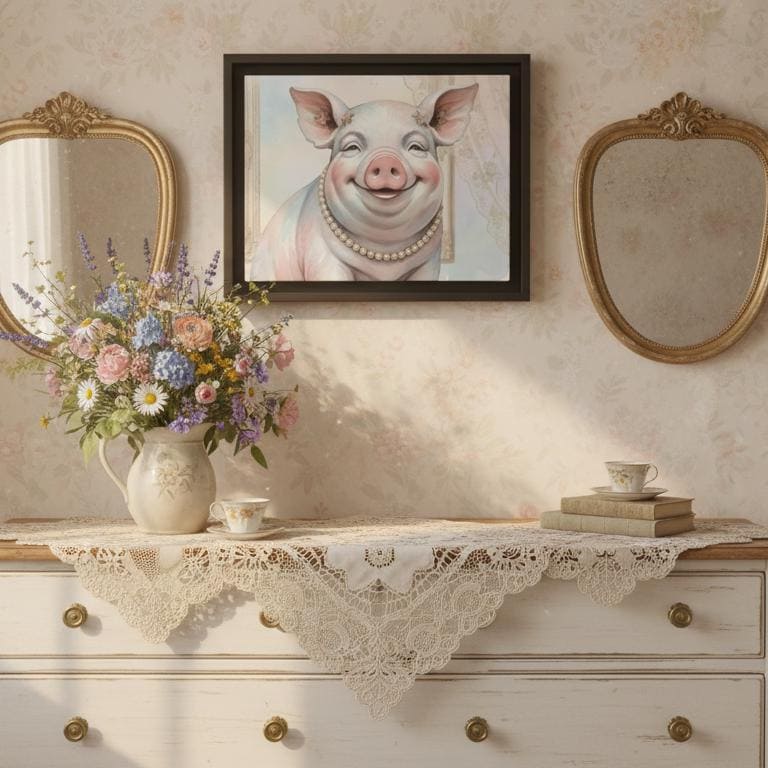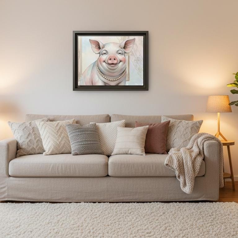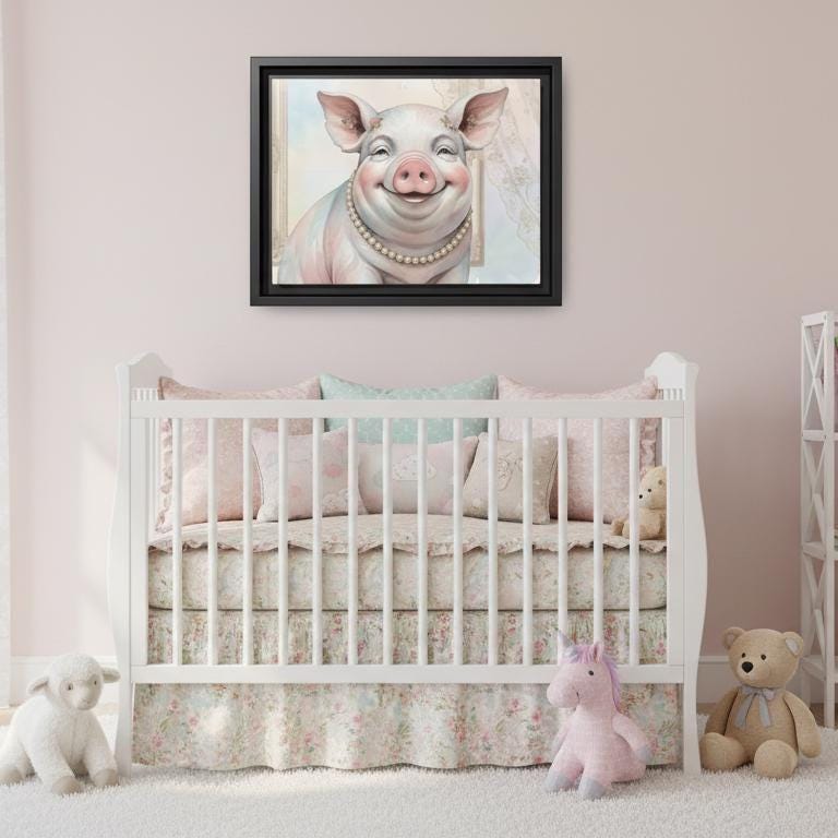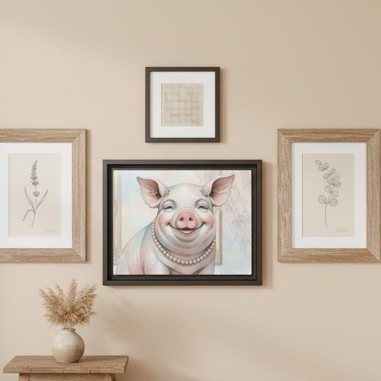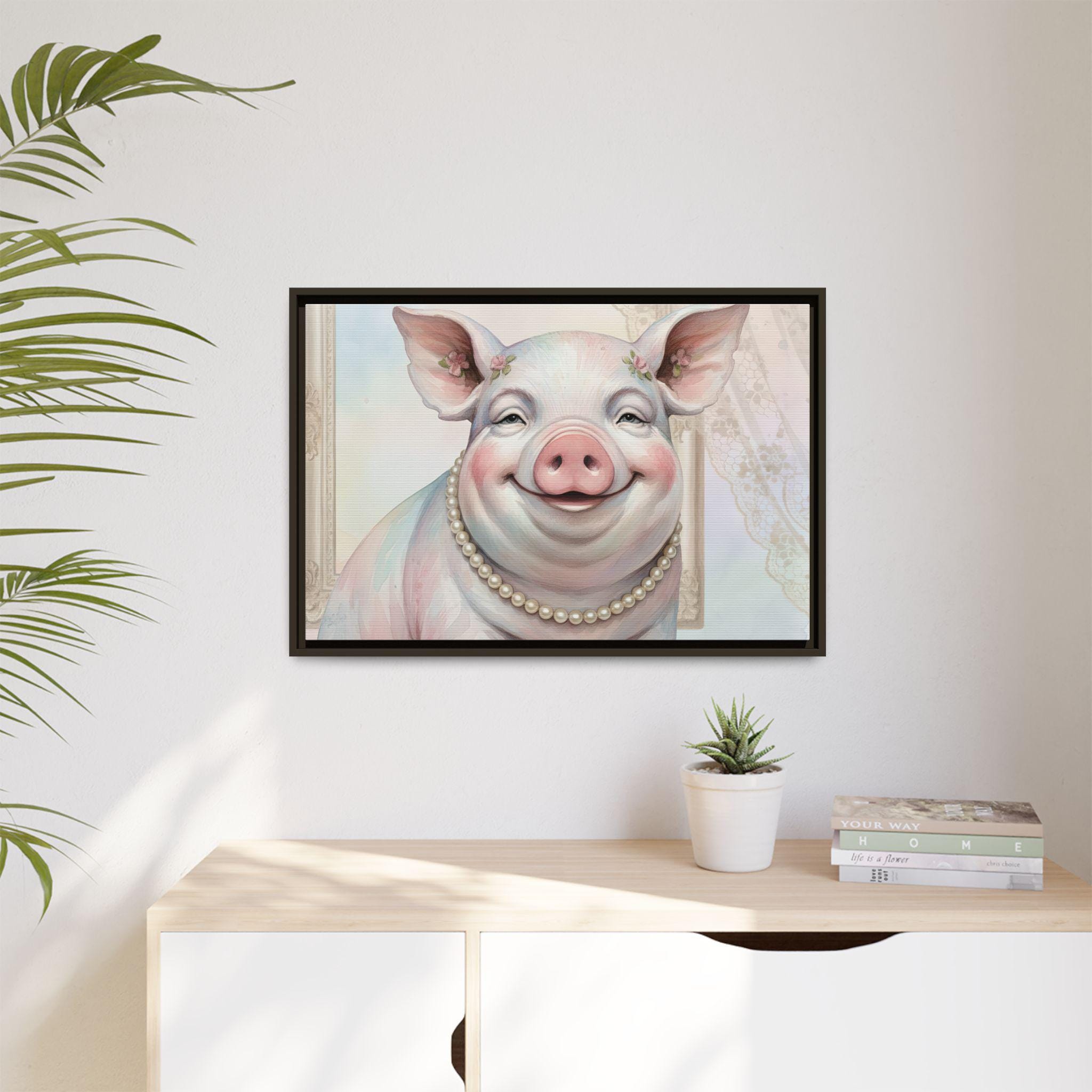 Bougie Pearl Pig Canvas Wall Art • Whimsical Farmhouse Decor •Cottagecore Animal Art