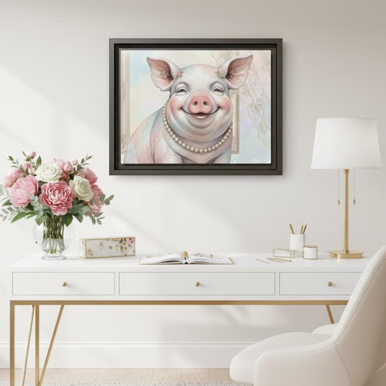 This Bougie Pearl Pig matte canvas blends farmhouse charm with cottagecore whimsy — the perfect mix of cute, classy, and a little bit fabulous.