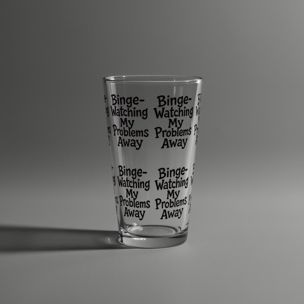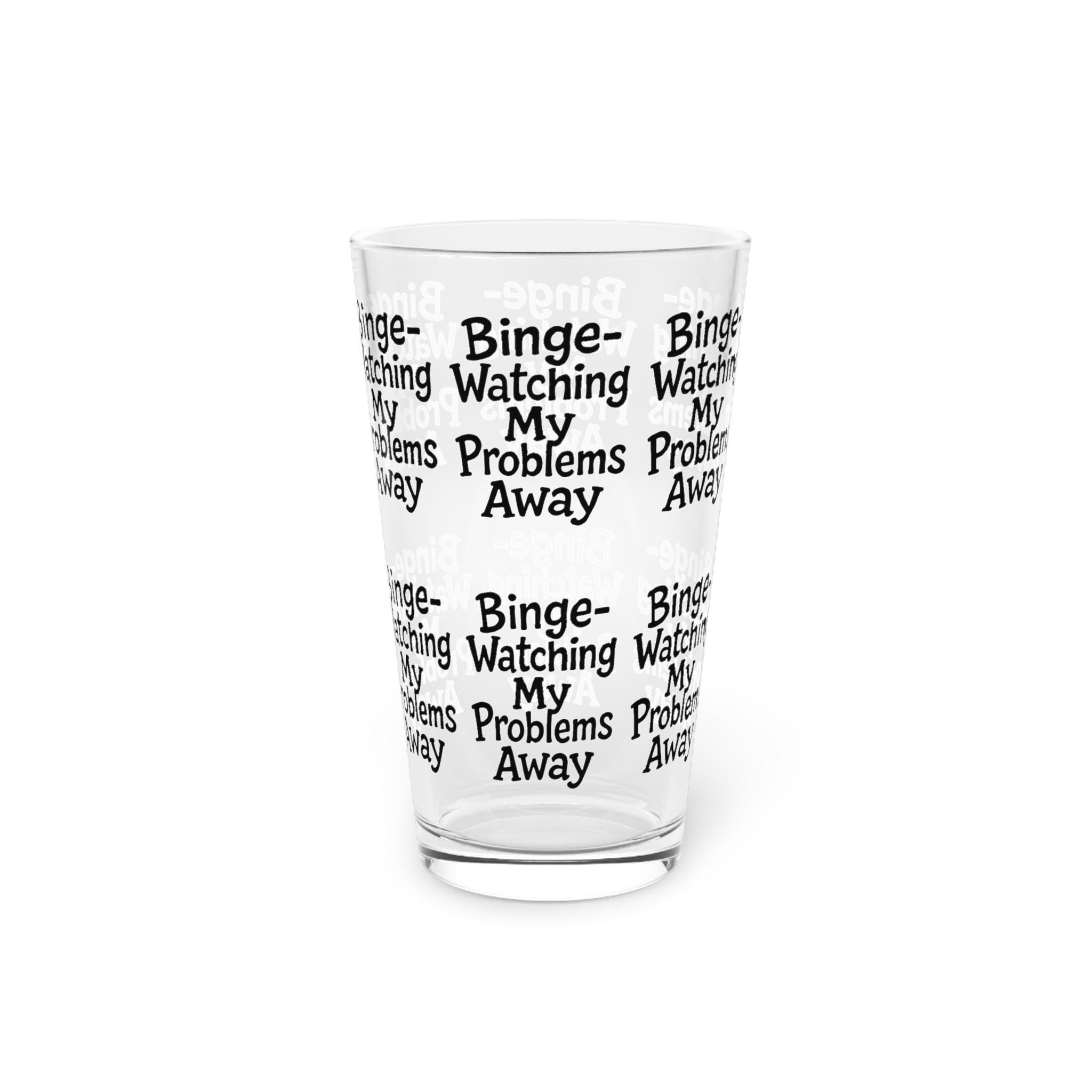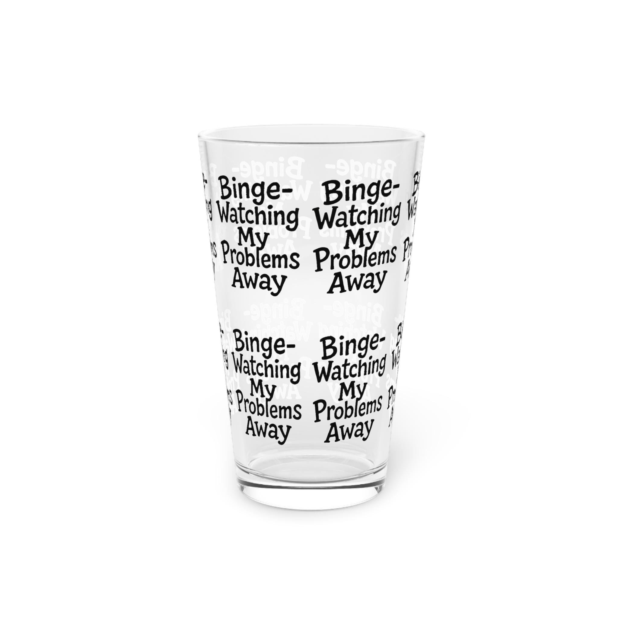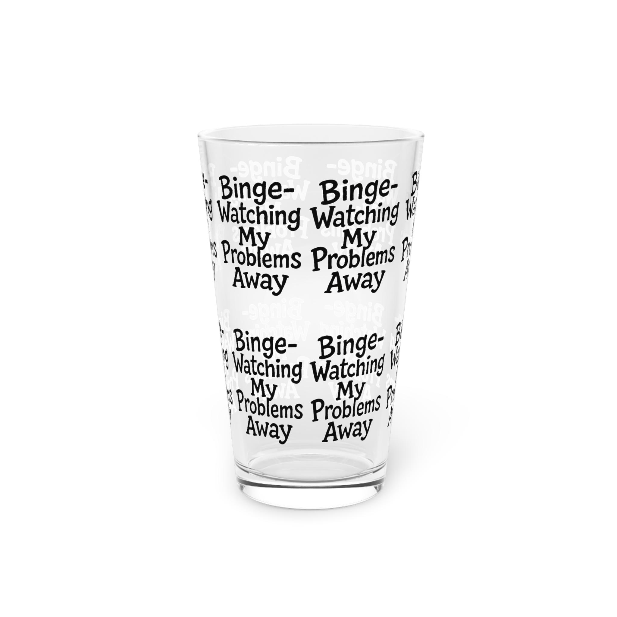 Funny Pint Glass 16oz | Binge Watching My Problems Away TV Show Lover Gift