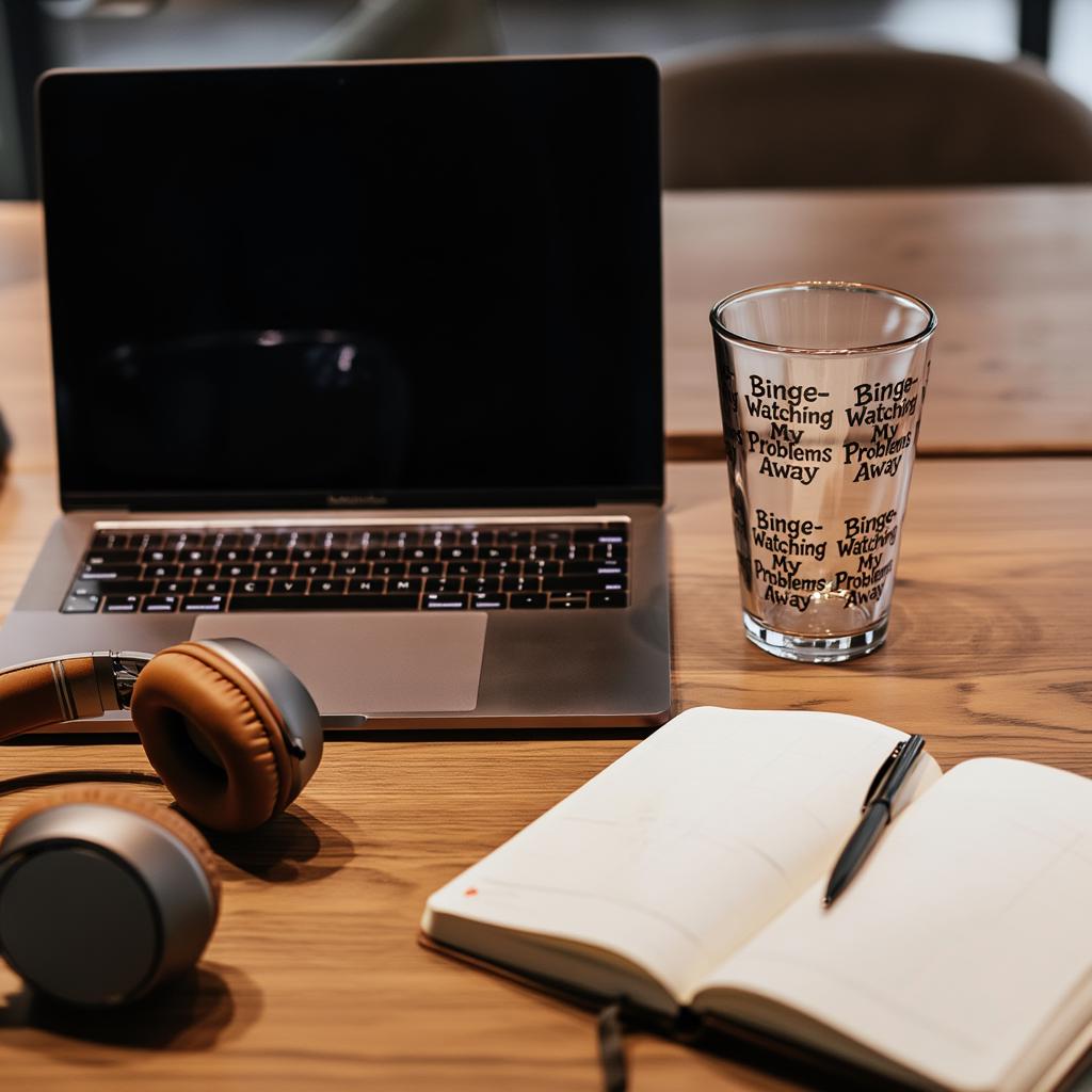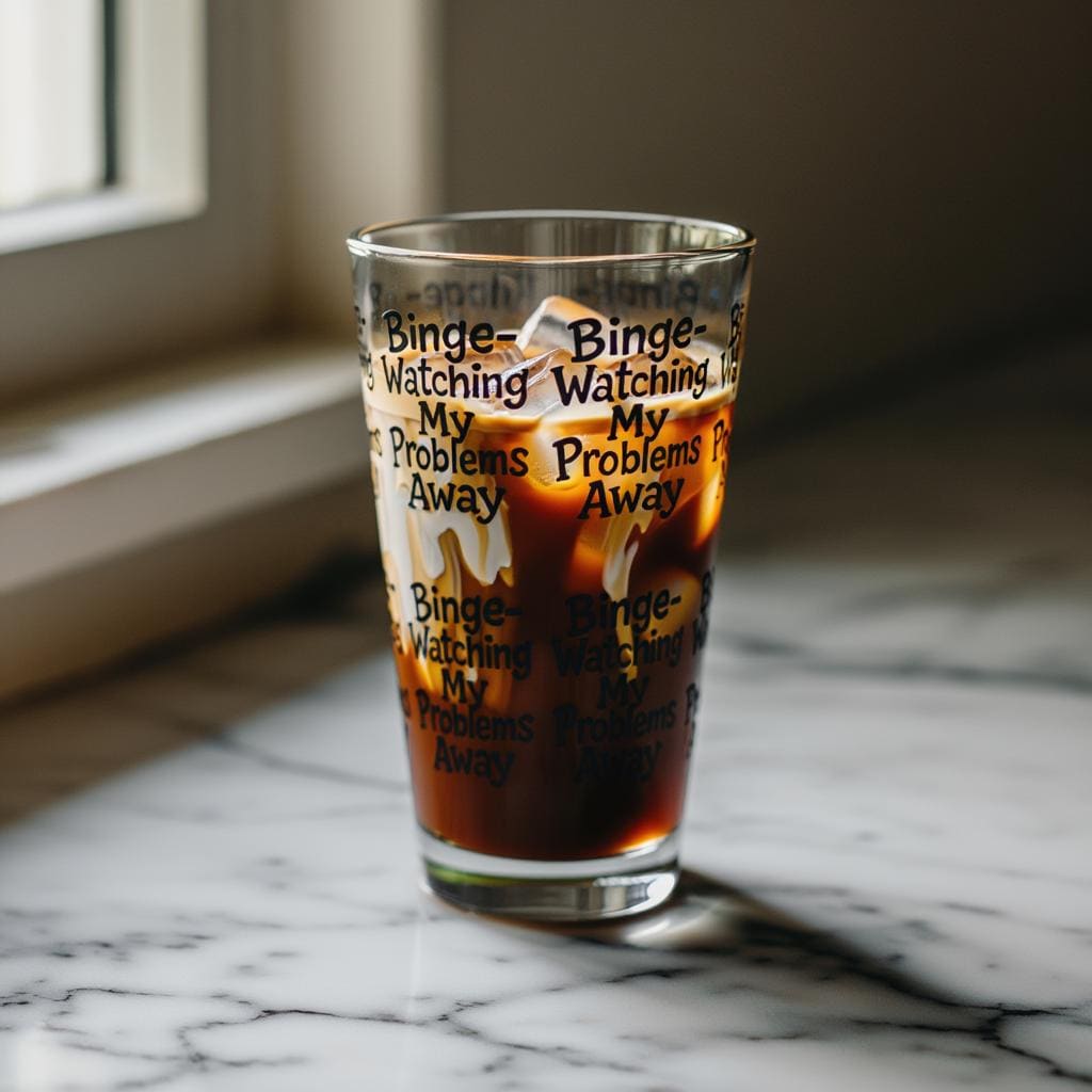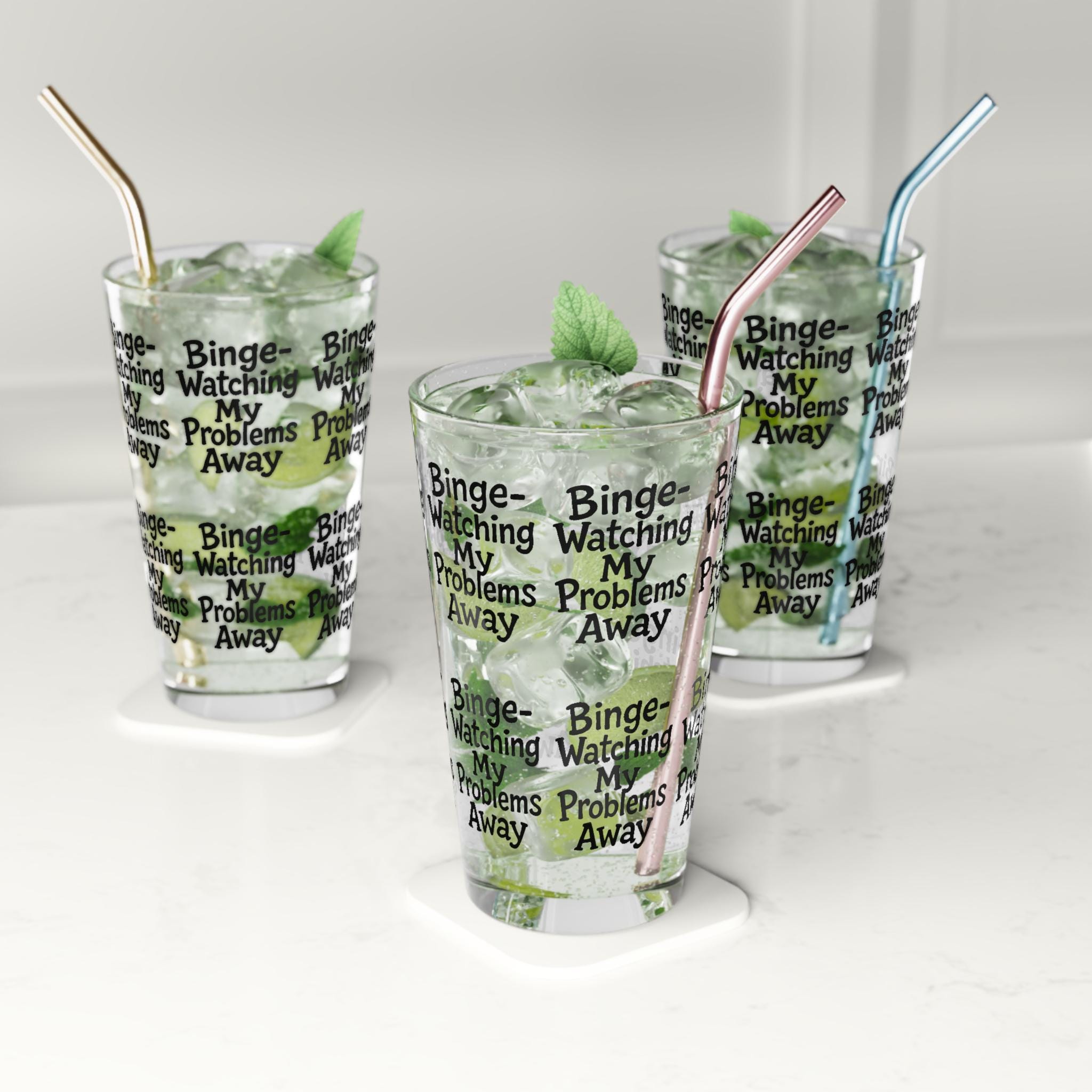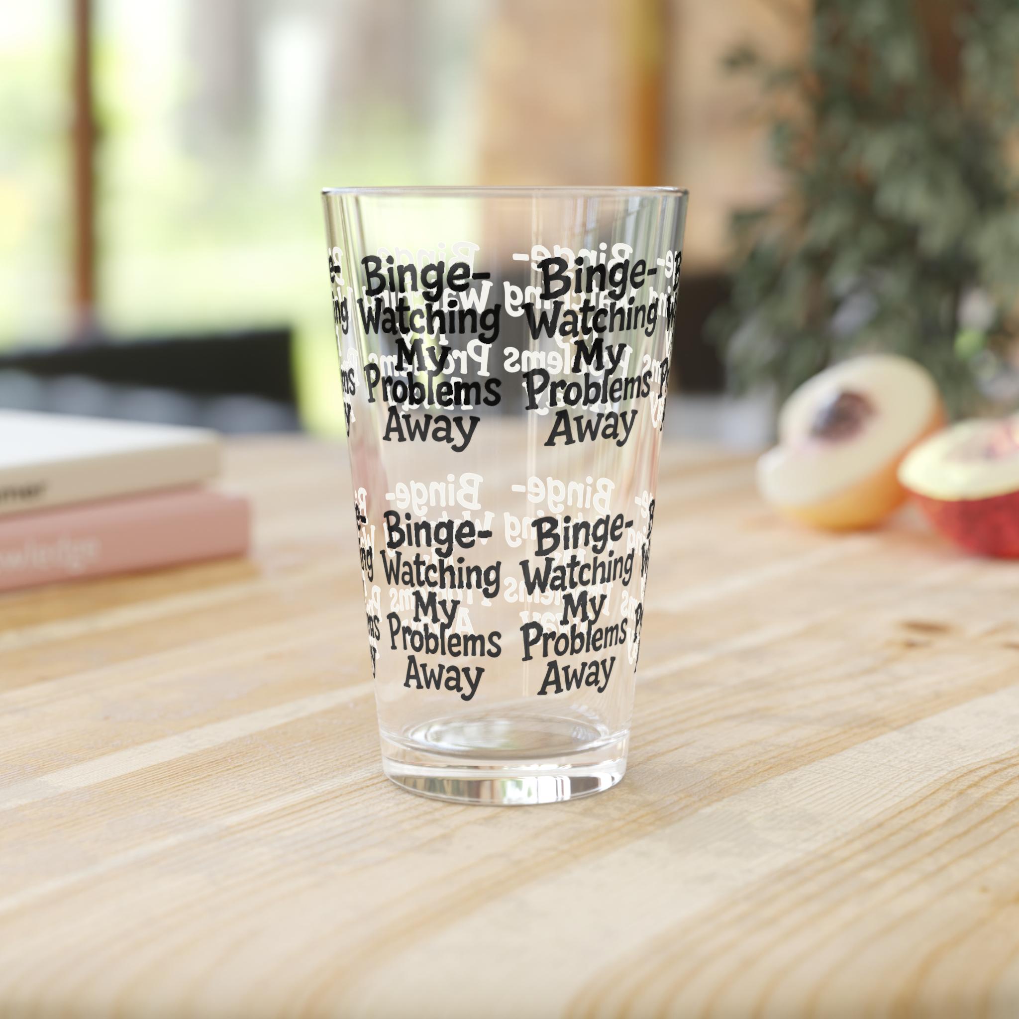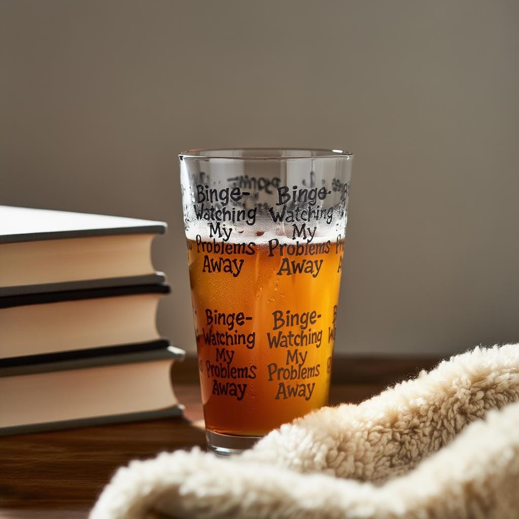 Funny Pint Glass 16oz | Binge Watching My Problems Away TV Show Lover Gift