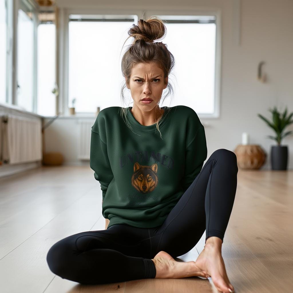 This UNTAMED Wolf Sweatshirt brings bold energy with a vintage-style wolf illustration and the perfectly defiant tagline: