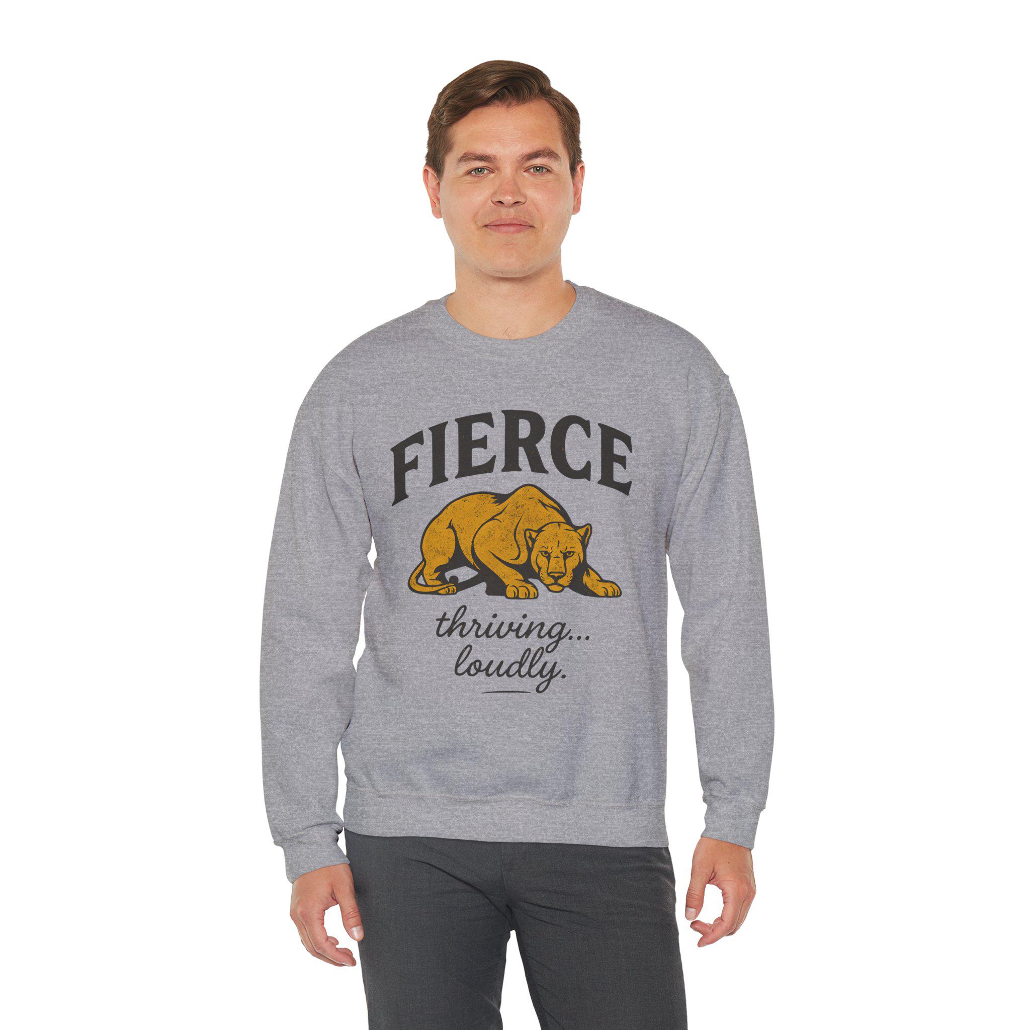 FIERCE Cougar Sweatshirt Thriving Loudly Sweater Bold Animal Graphic Crewneck