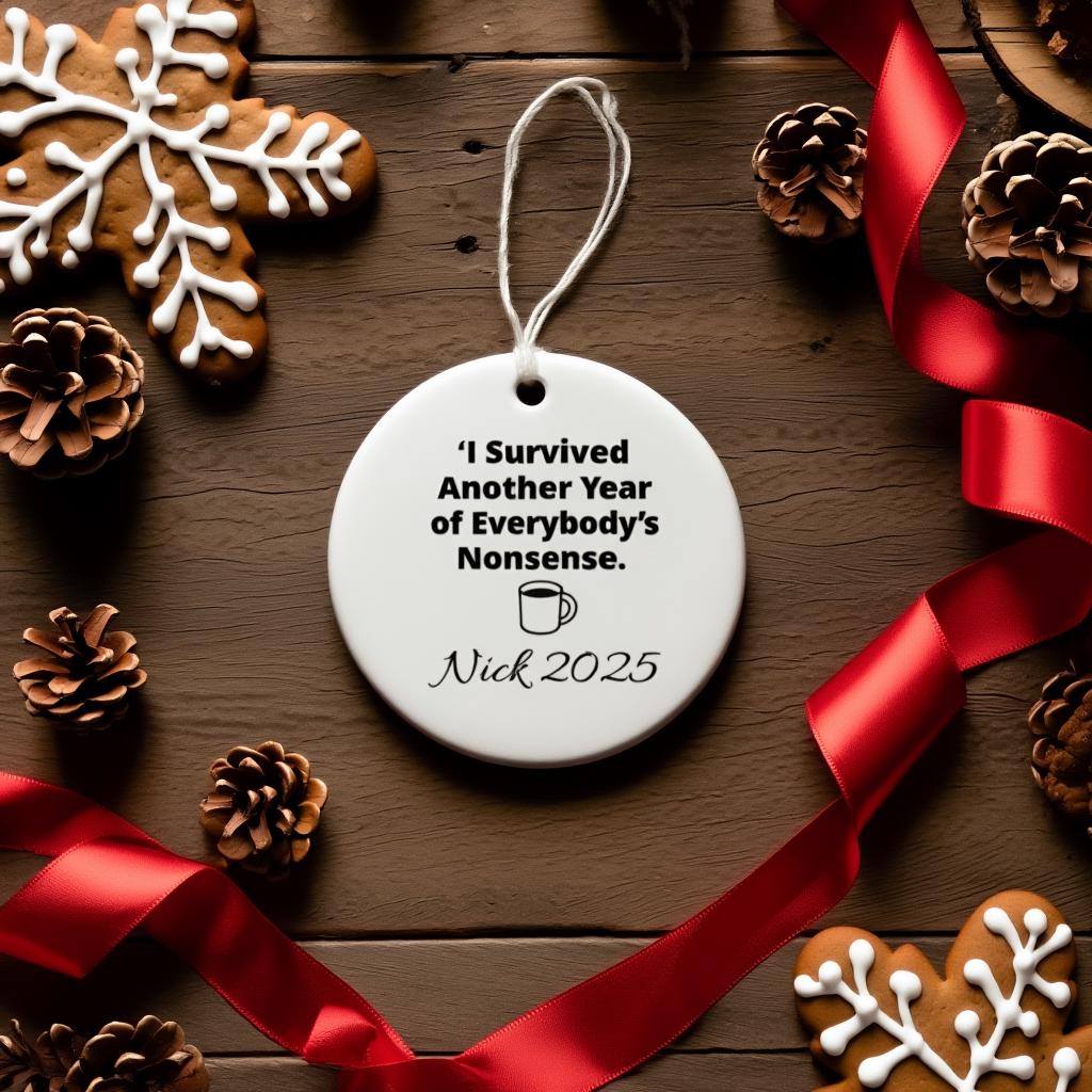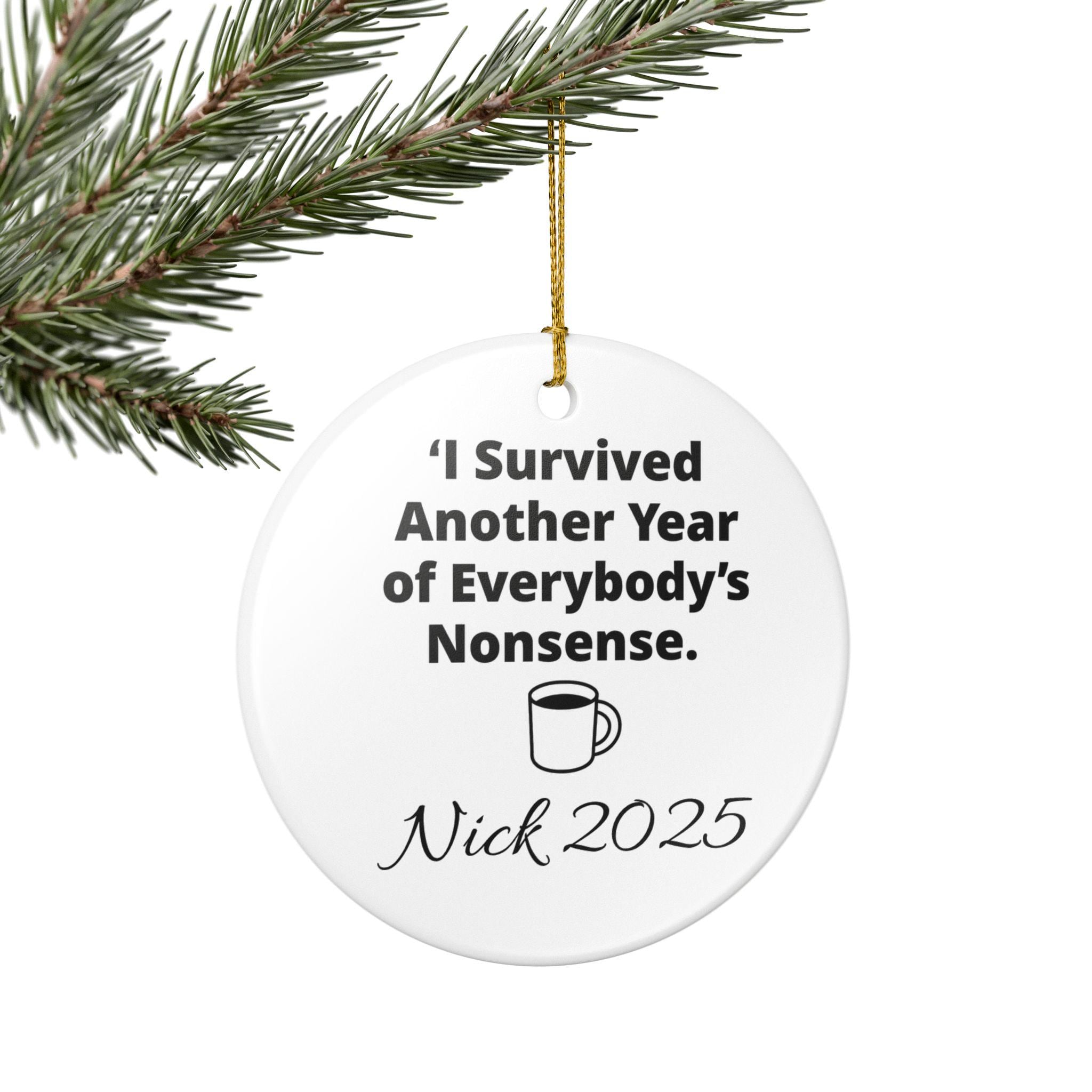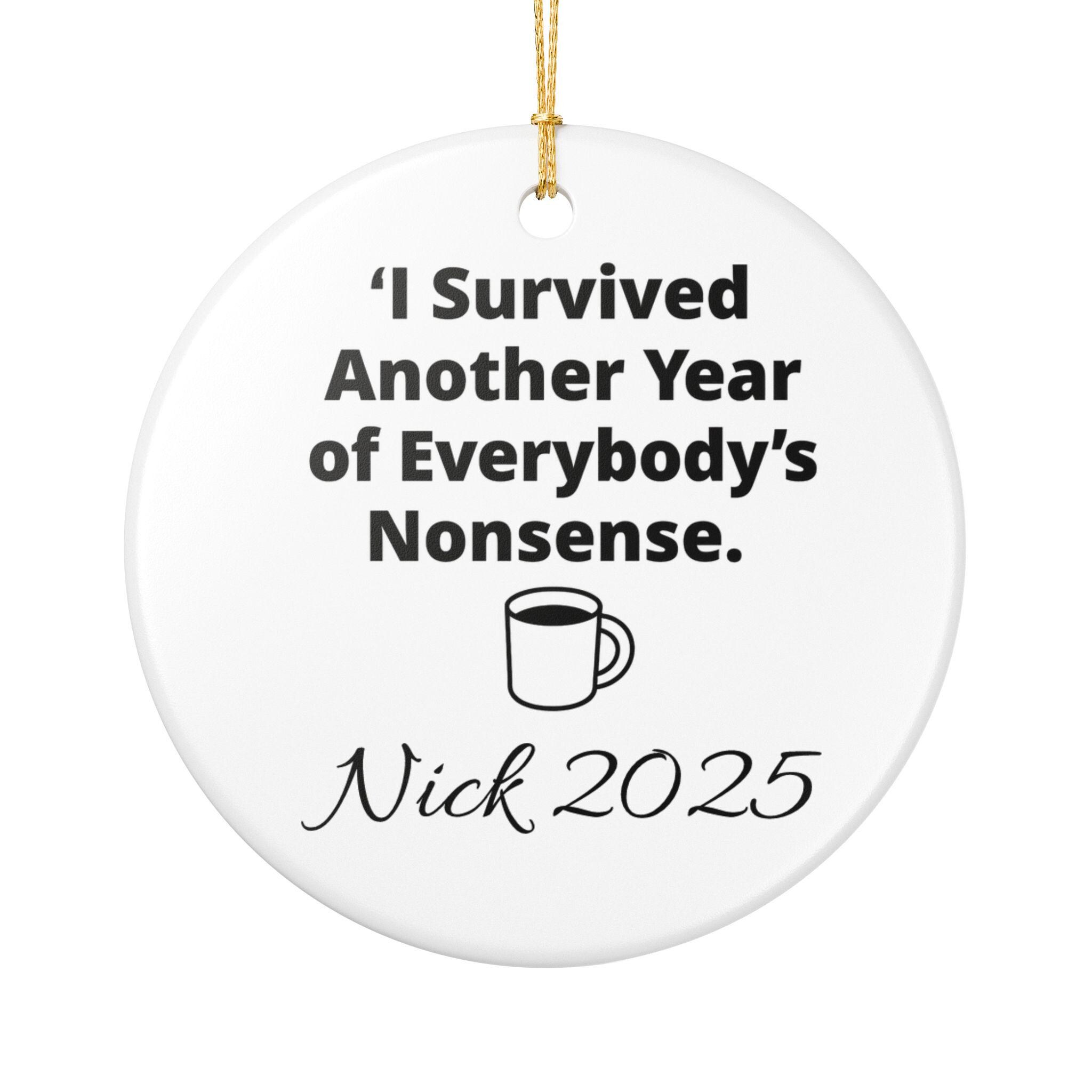 I Survived Another Year of Everybody's Nonsense Ornament | Ceramic Round Holiday Decoration